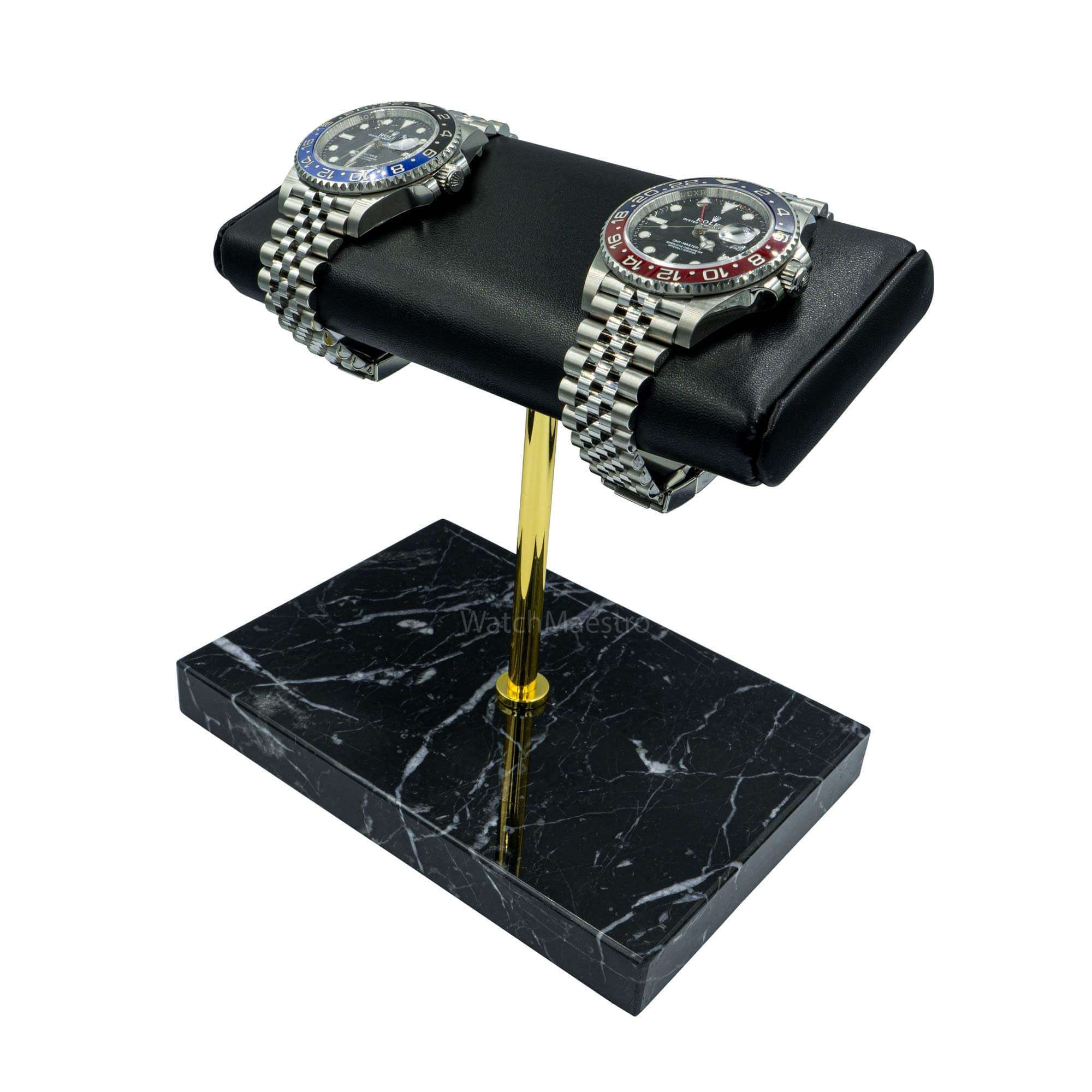 Available in a variety of colorways, these watch stands offer a safe and elegant place to keep your watch when not wearing. This model in particular can hold up to two watches on its premium leather cushion. The stainless steel rod sits on polished marble which further elevates the appeal of the stand. No matter which color combination you pick, it will definitely give a rich look to your work desk or suit well at a table in your home.