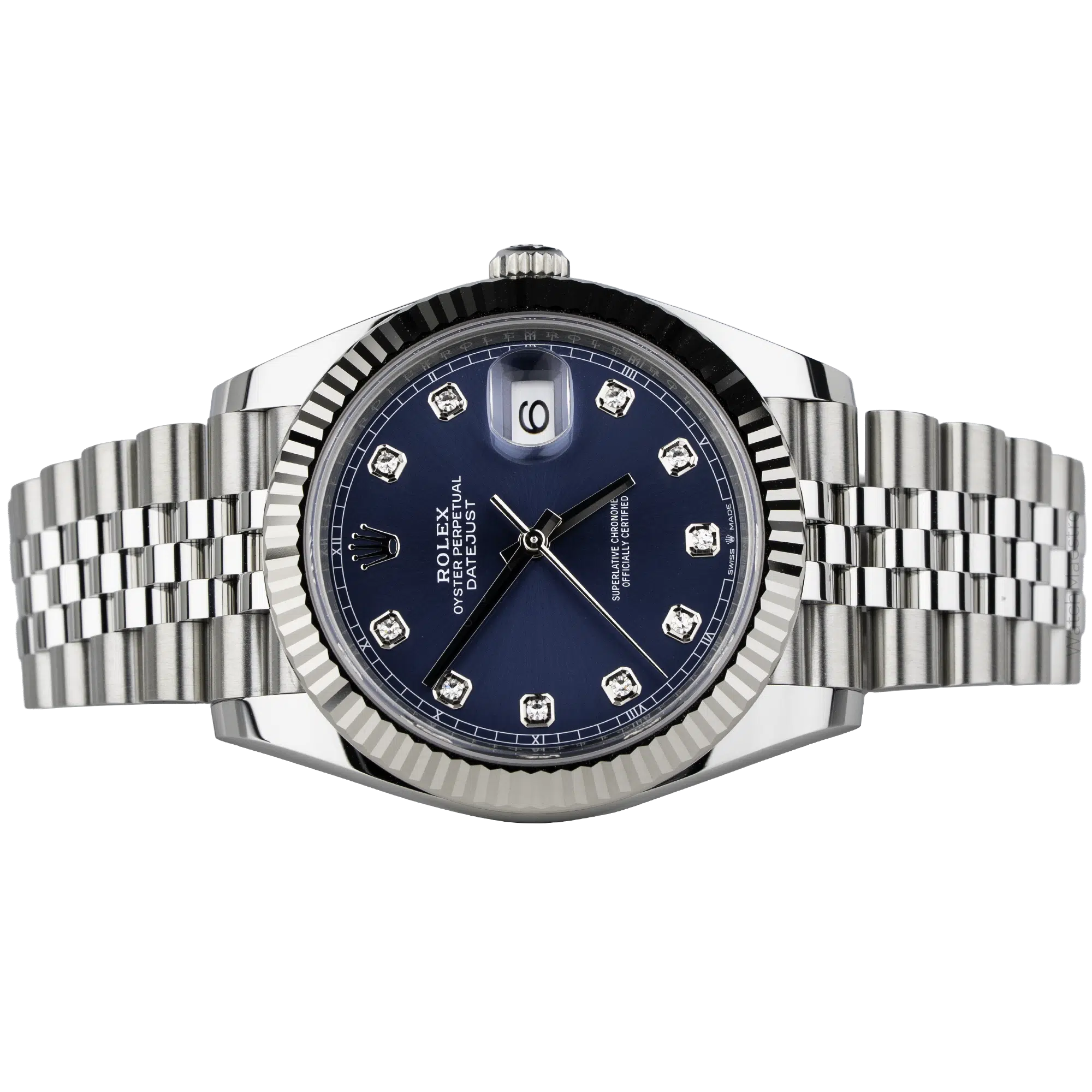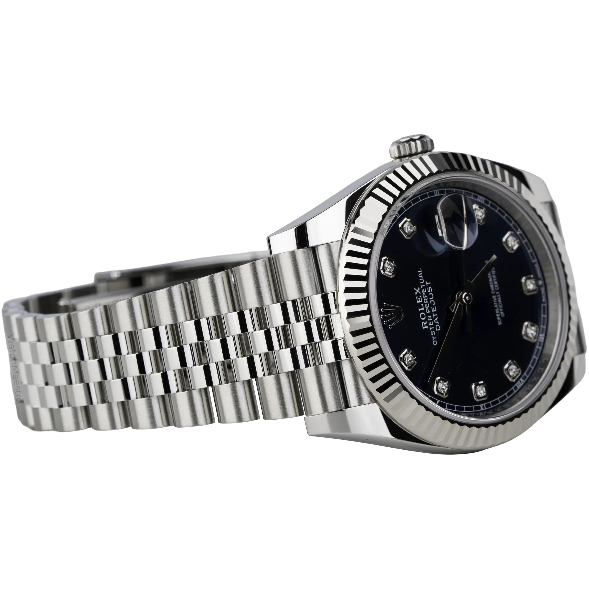 ساعة رولكس ديت جست 41، رقمها المرجعي 126334، تُجسّد تصميمًا خالدًا وحرفيةً لا تشوبها شائبة. لكل من يبحث عن إضافة ساعة كلاسيكية وأنيقة إلى مجموعته، تُعدّ مجموعة ديت جست خياره الأمثل.