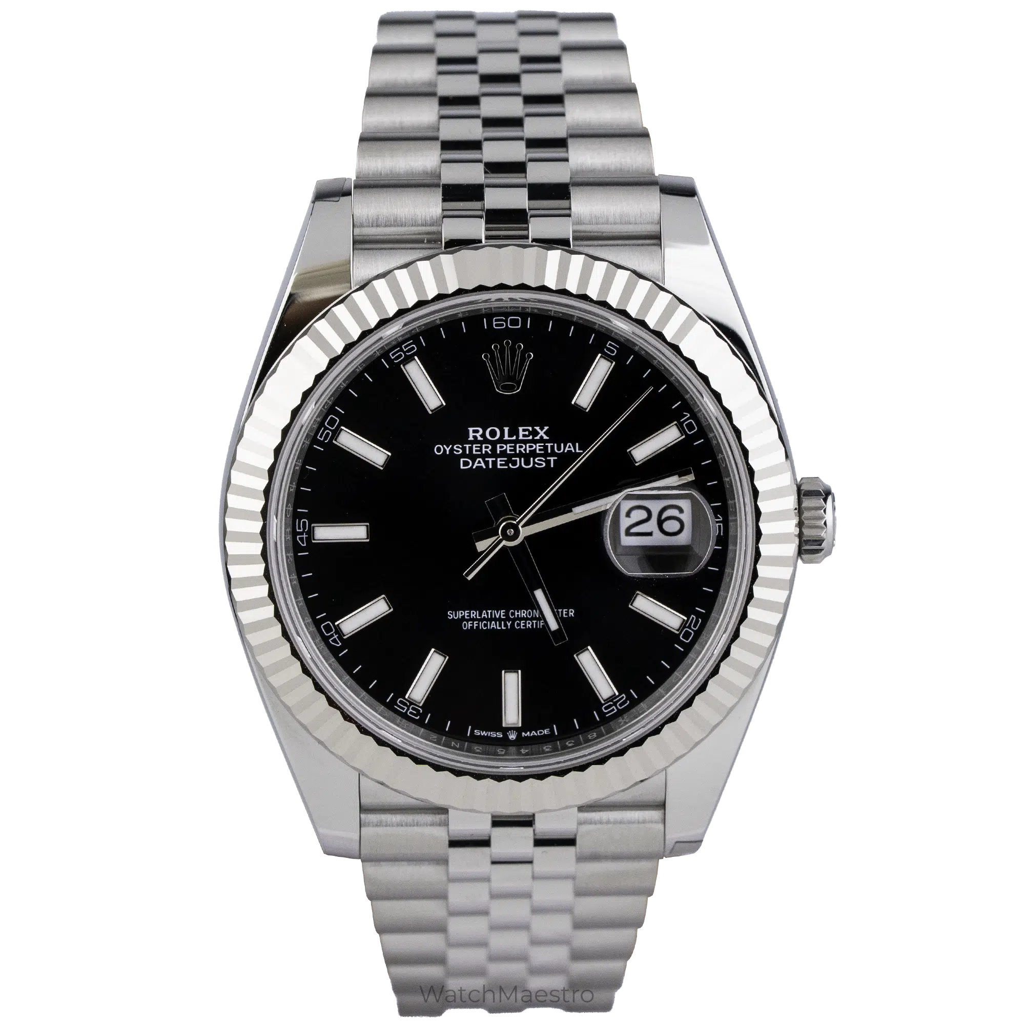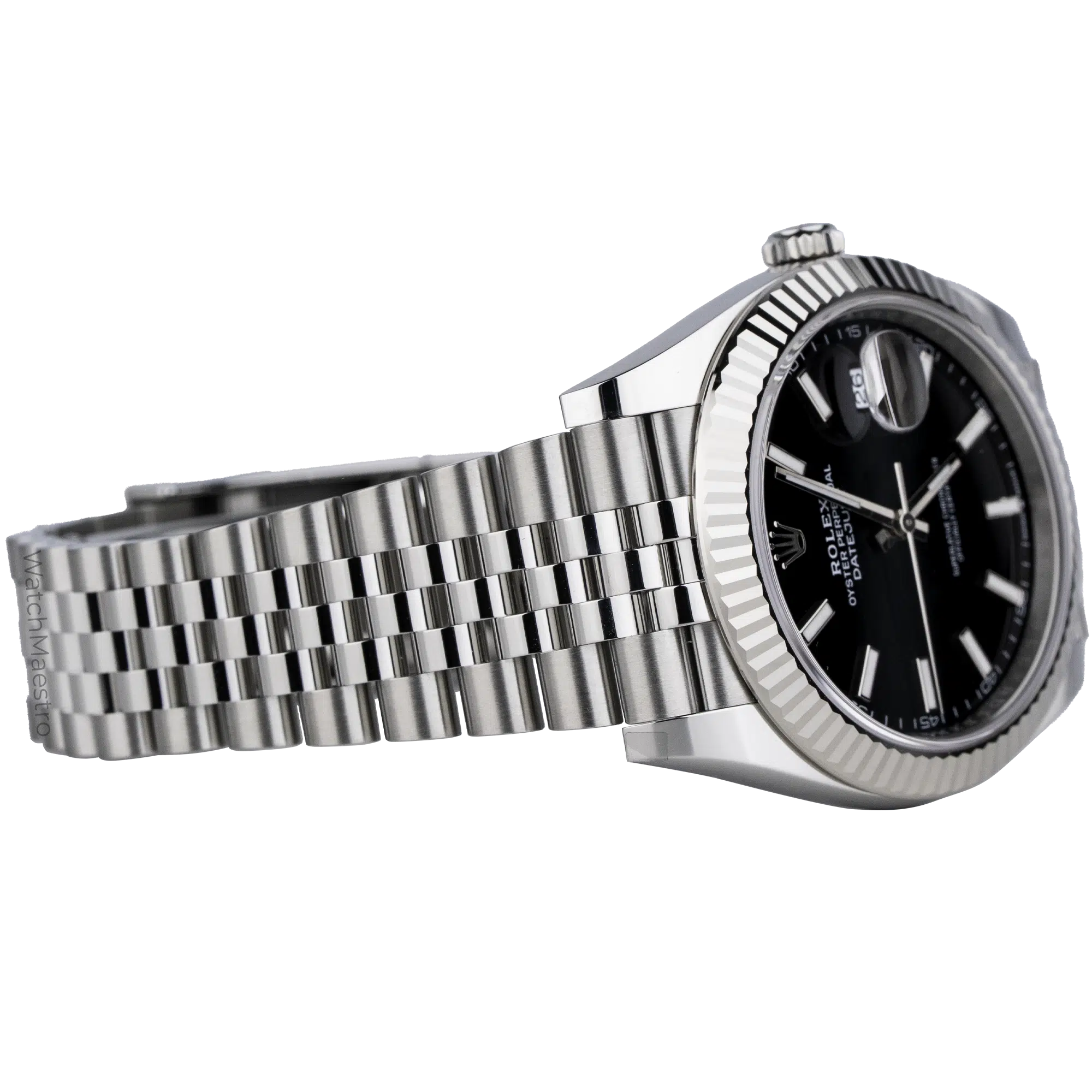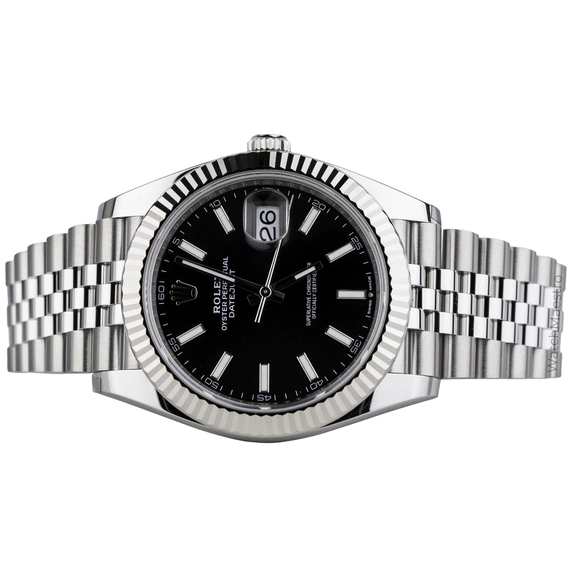 ساعة رولكس ديت جست 41 بمينا أسود وإطار مزخرف وسوار جوبيلي