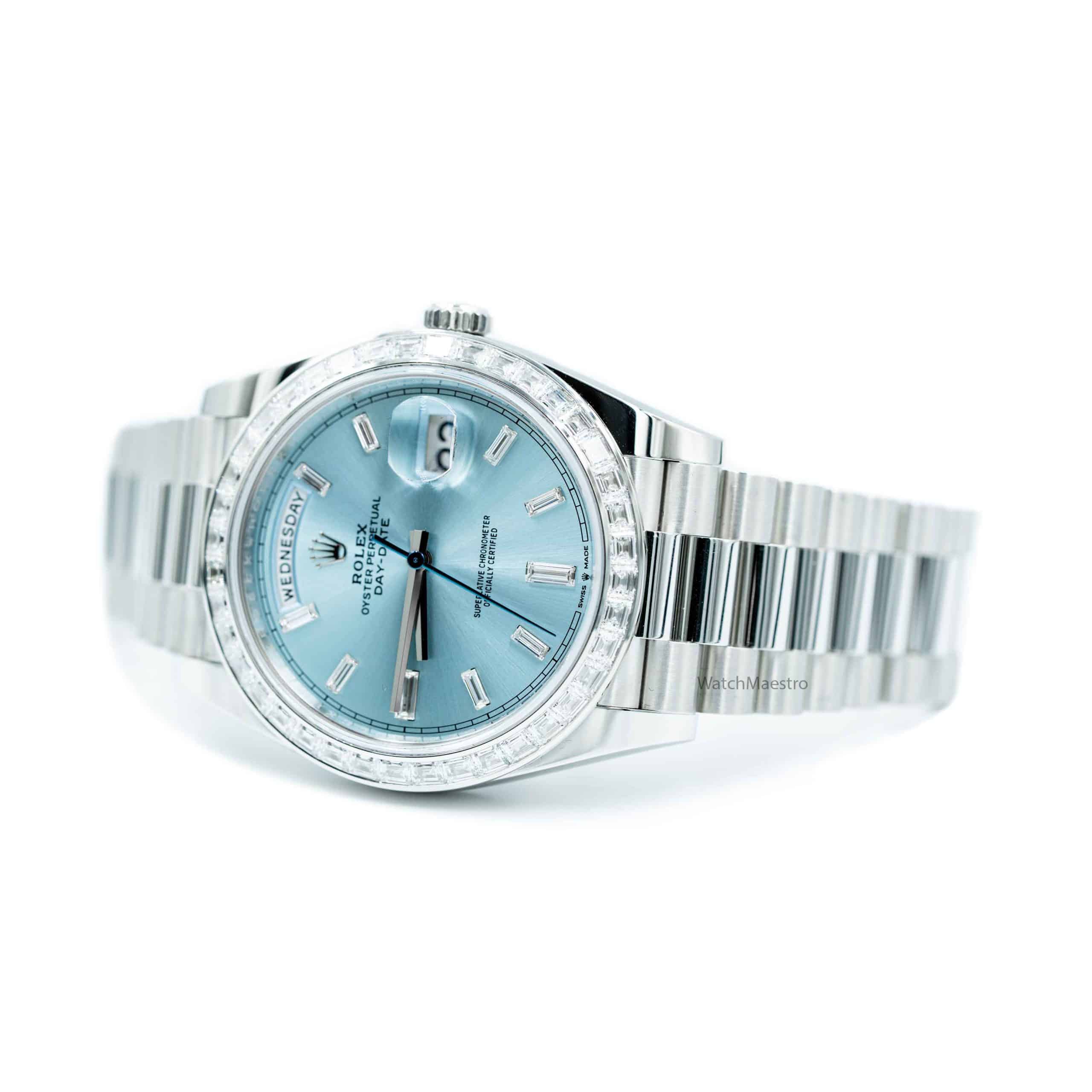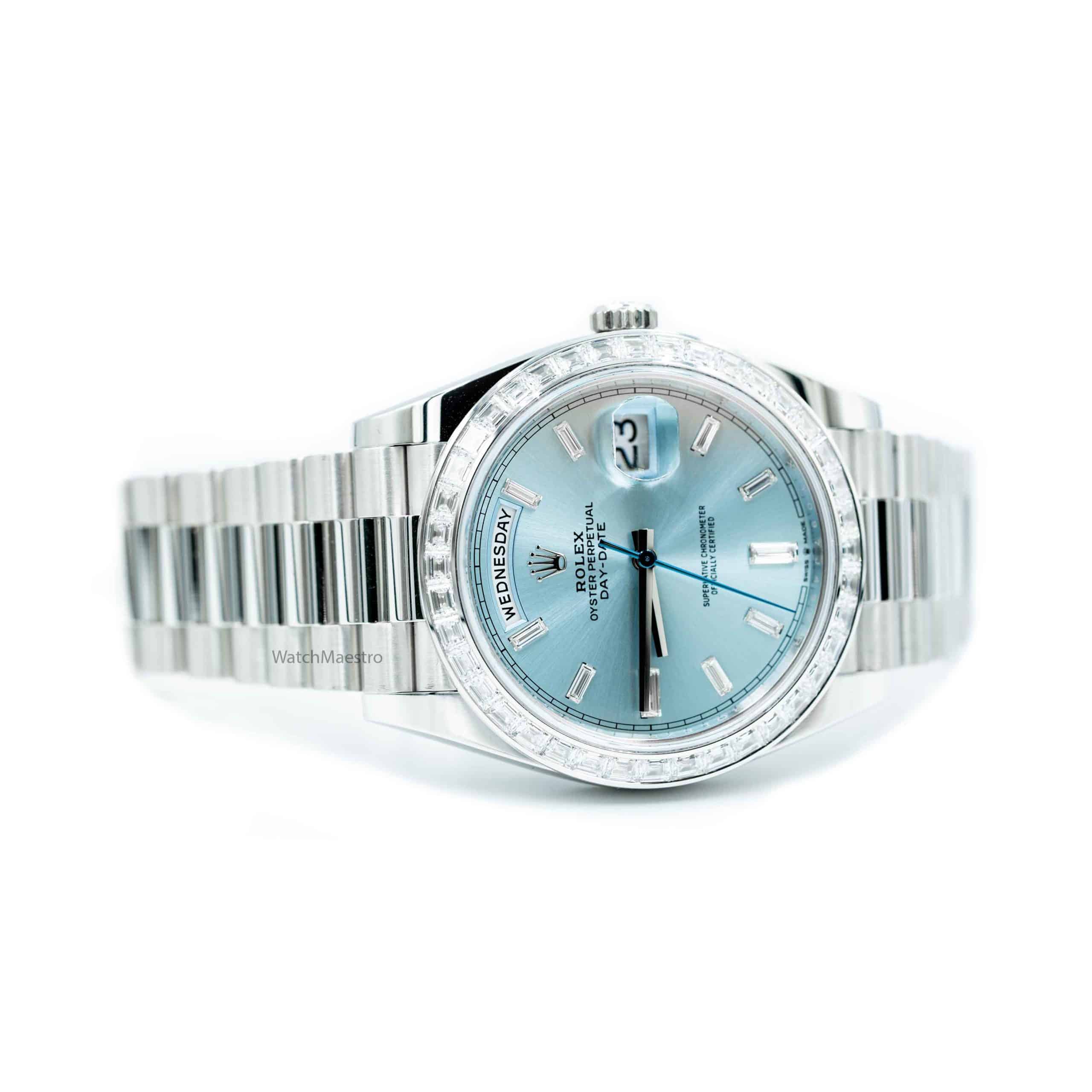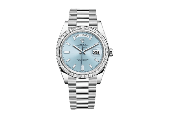 ساعة رولكس داي ديت 40 بمينا أزرق ثلجي مرصعة بالألماس 228396TBR
