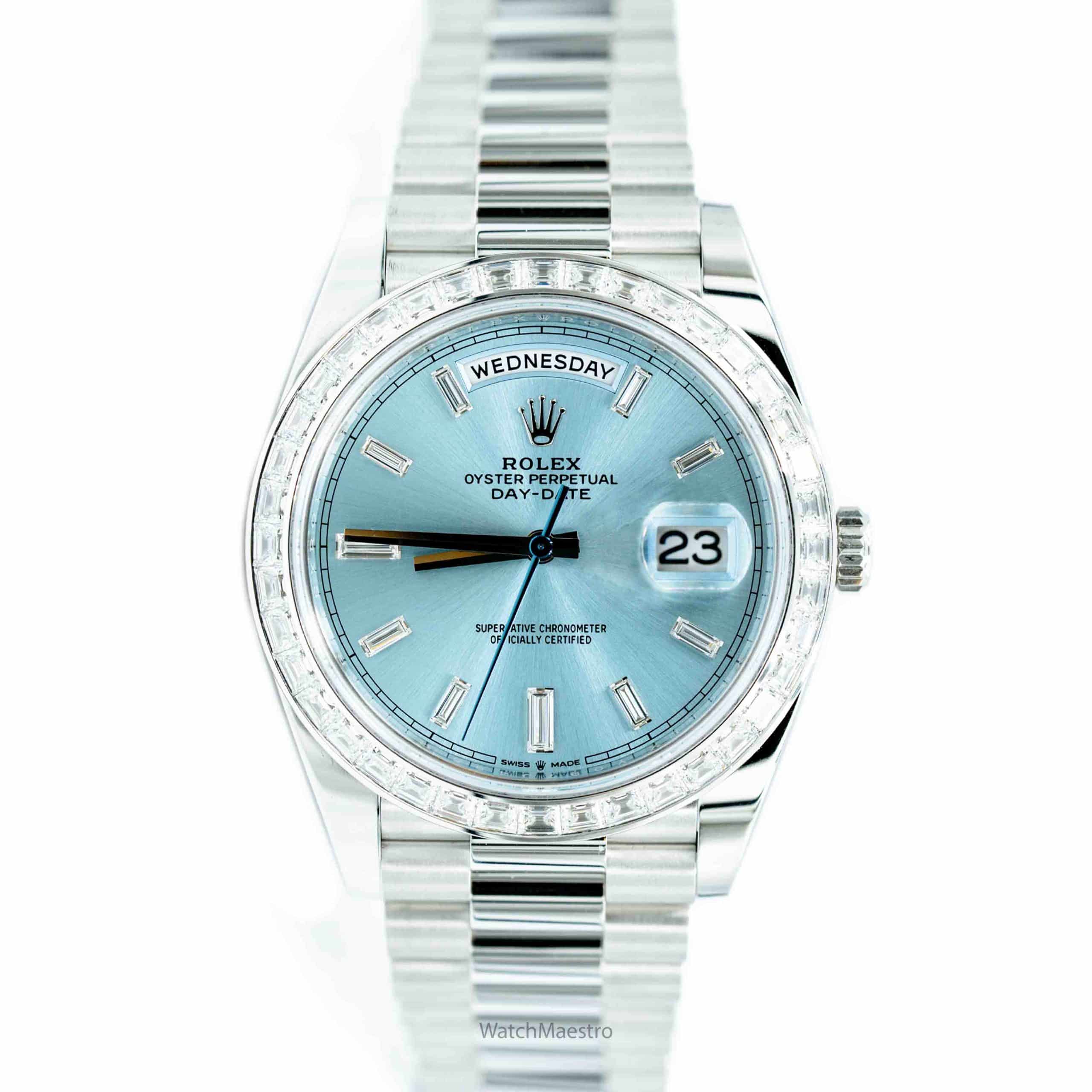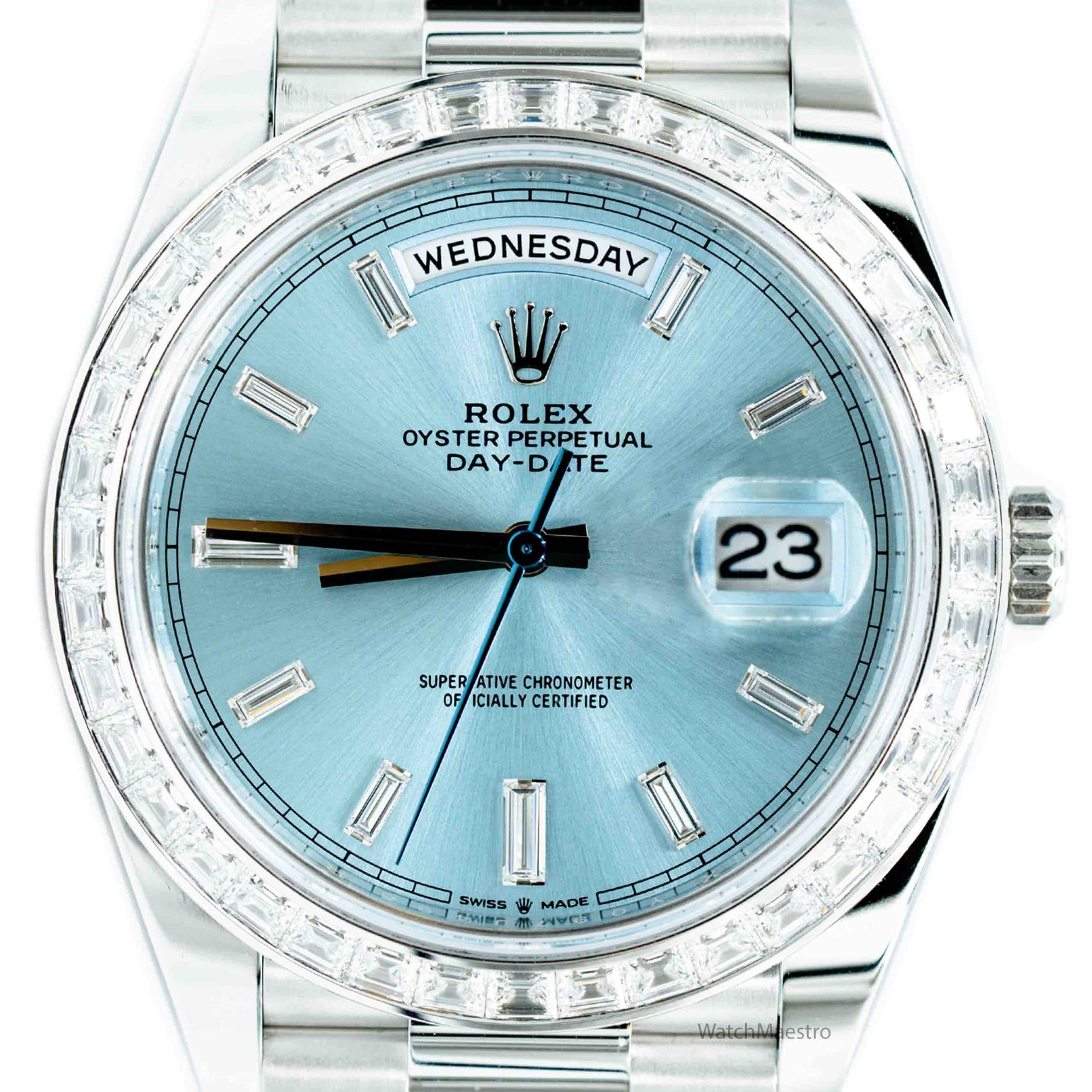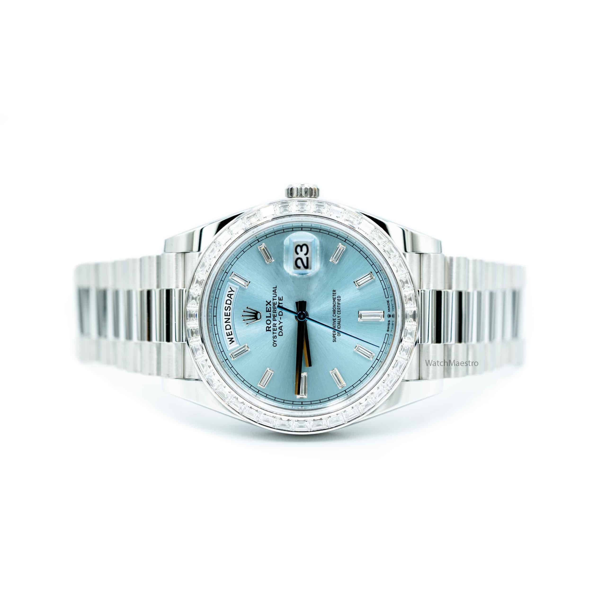 ساعة رولكس داي ديت 40 بمينا أزرق ثلجي مرصعة بالألماس 228396TBR