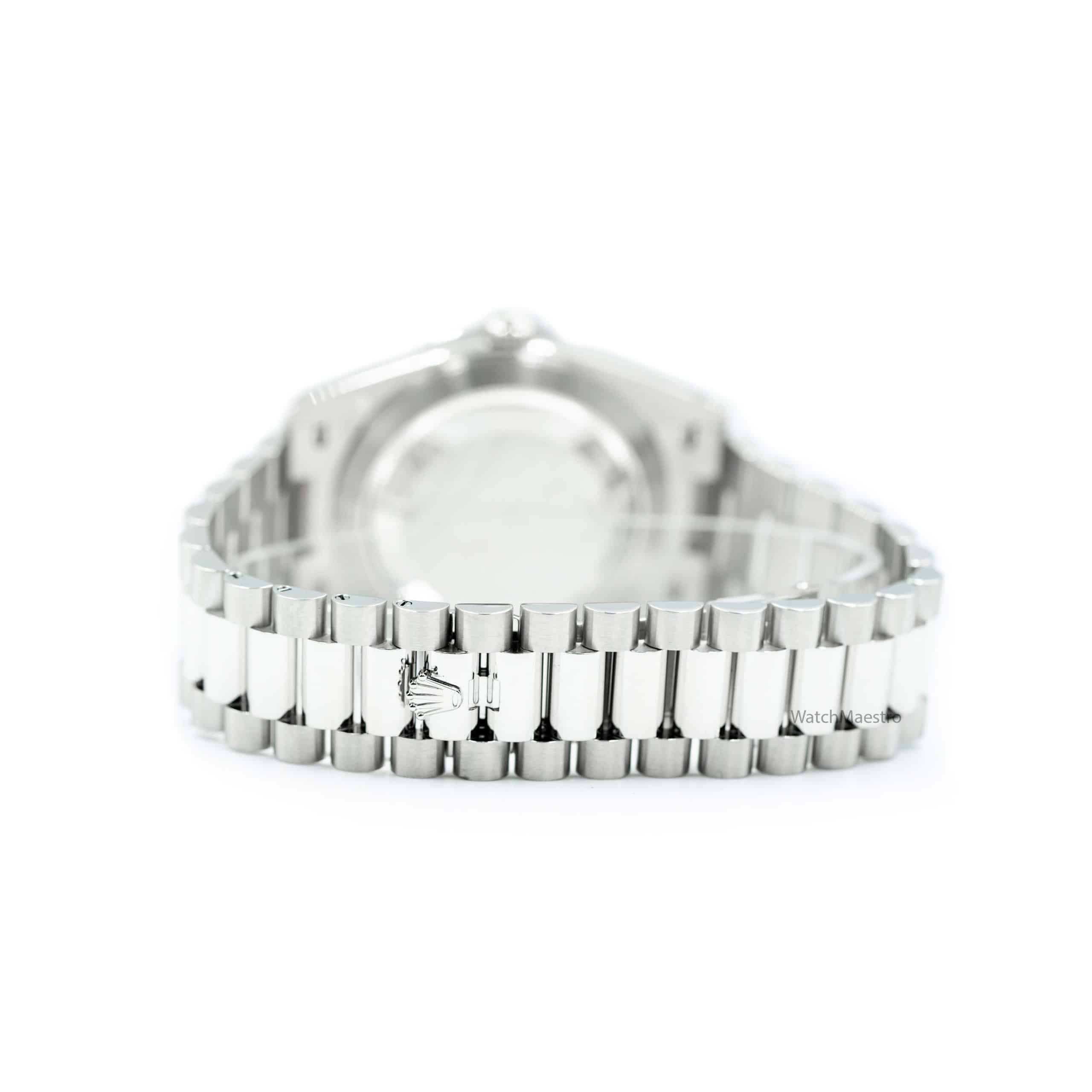 هذه ساعة رولكس داي-ديت جديدة كليًا، رقم المرجع 228396TBR، تتميز بميناء أزرق ثلجي بقطر 40 مم مرصع بالألماس. علبتها مصنوعة من البلاتين، وإطارها مرصع بالألماس. اشتريتها في مارس 2022، وهي نادرة حاليًا.