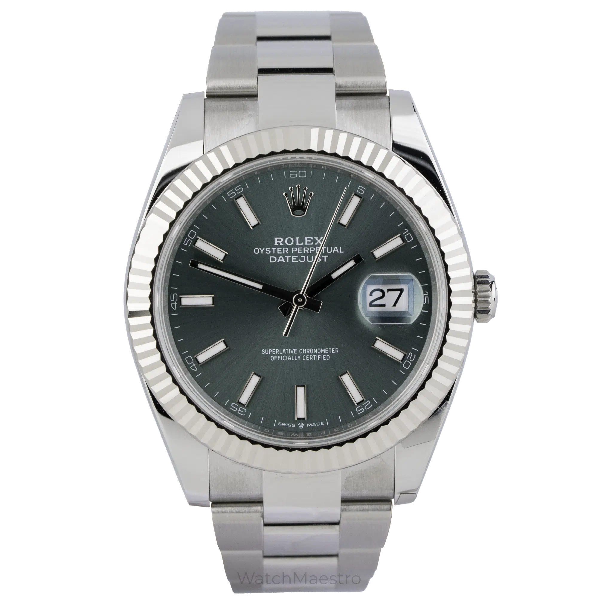 لطالما مثّلت مجموعة رولكس ديت جست رمزًا للأناقة الخالدة والعملية منذ إطلاقها. بفضل علبتها الأكبر حجمًا (41 مم)، يُضفي هذا الطراز لمسة عصرية على تصميمه الكلاسيكي. تُجسّد هذه الساعة بوضوح إرث رولكس العريق في التزامها بالتميز في صناعة الساعات.