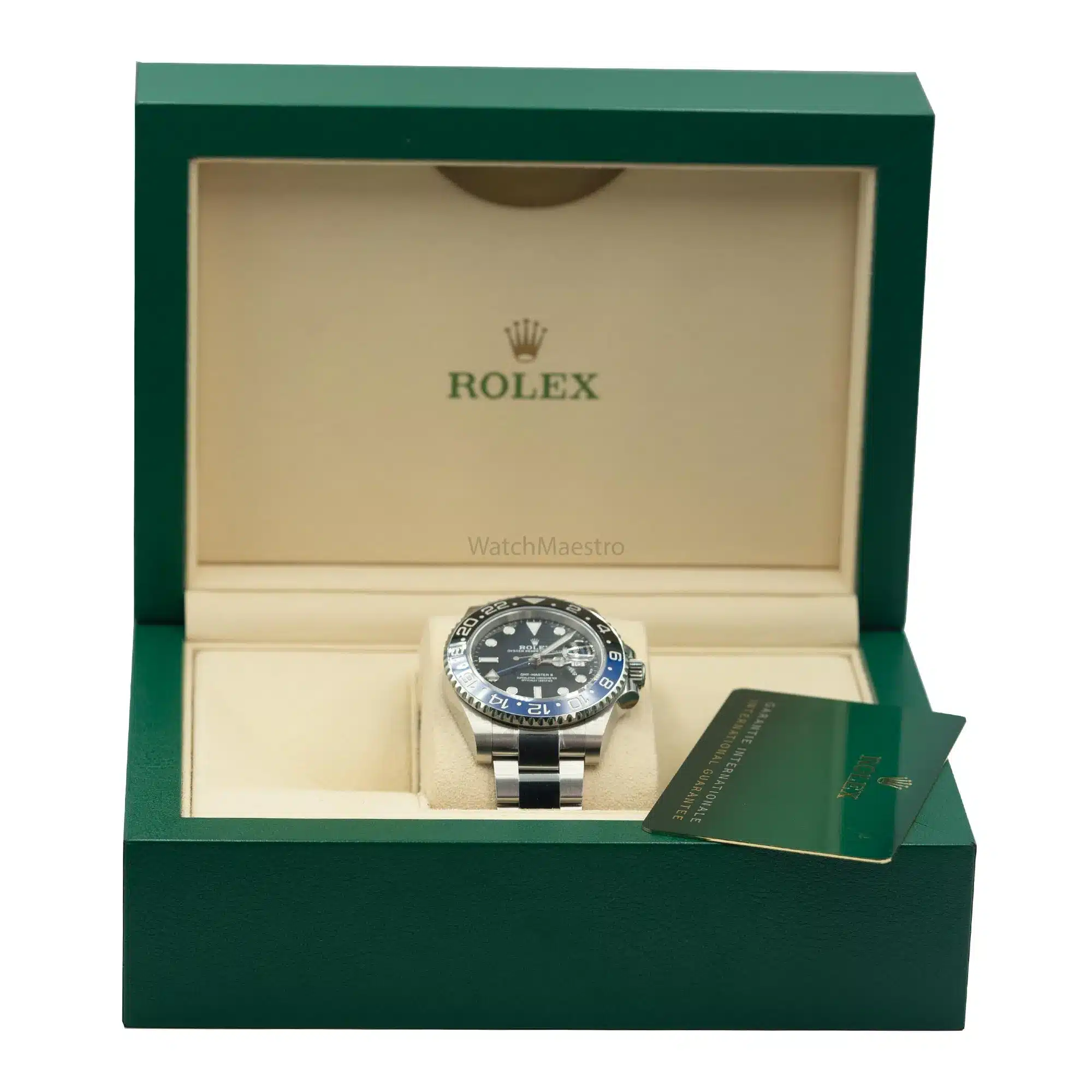 ساعة رولكس جي إم تي ماستر II من أكثر مجموعات الساعات رواجًا، ويُعدّ إطار باتمان من بين الخيارات المفضلة لدى مشتري ساعات جي إم تي ماستر. تأتي هذه الساعة من رولكس مزودة بخاصية جي إم تي، مما يتيح للمستخدم تتبع منطقتين زمنيتين في آنٍ واحد. تعمل الساعة بحركة كاليبر 3285، التي توفر احتياطي طاقة يدوم لحوالي 70 ساعة.