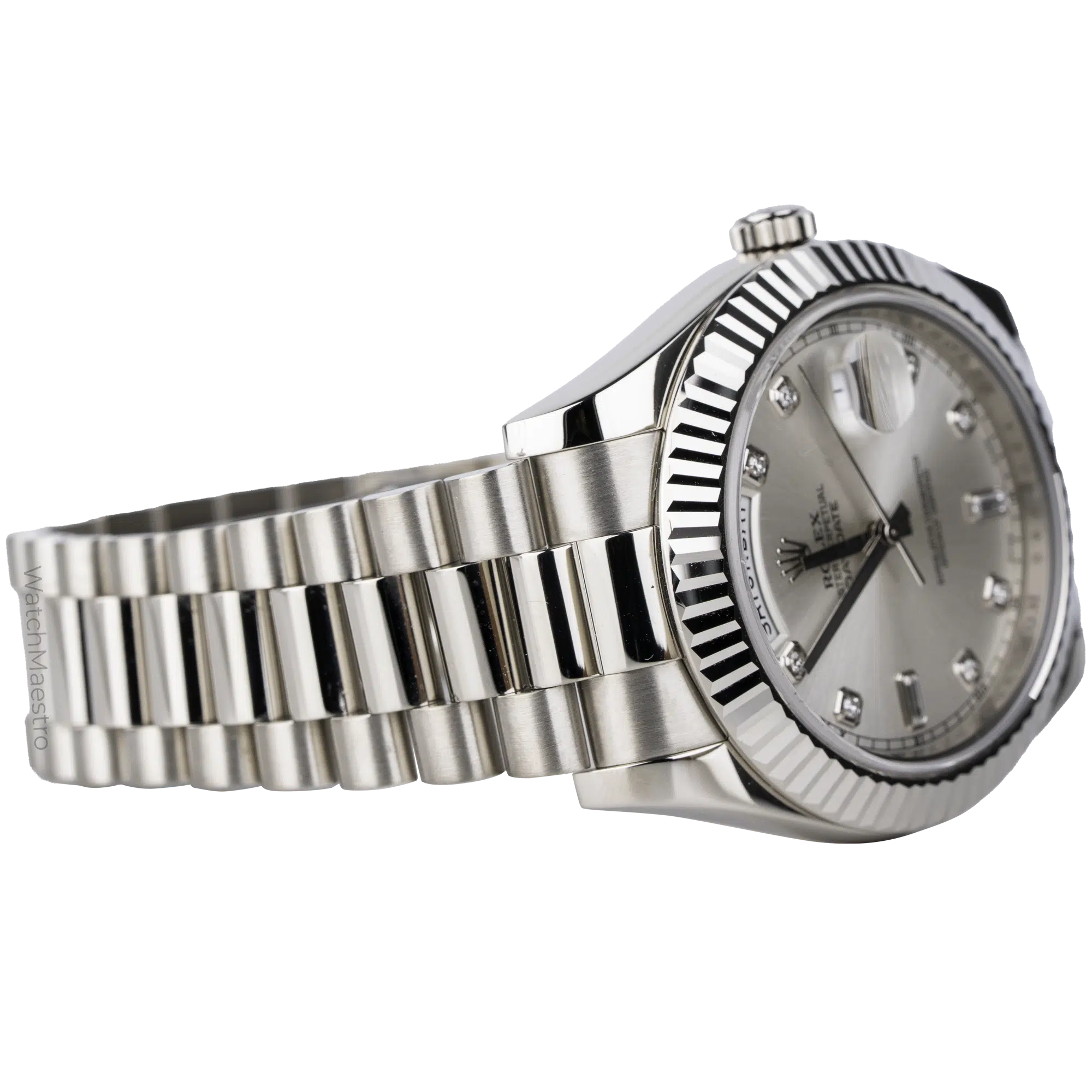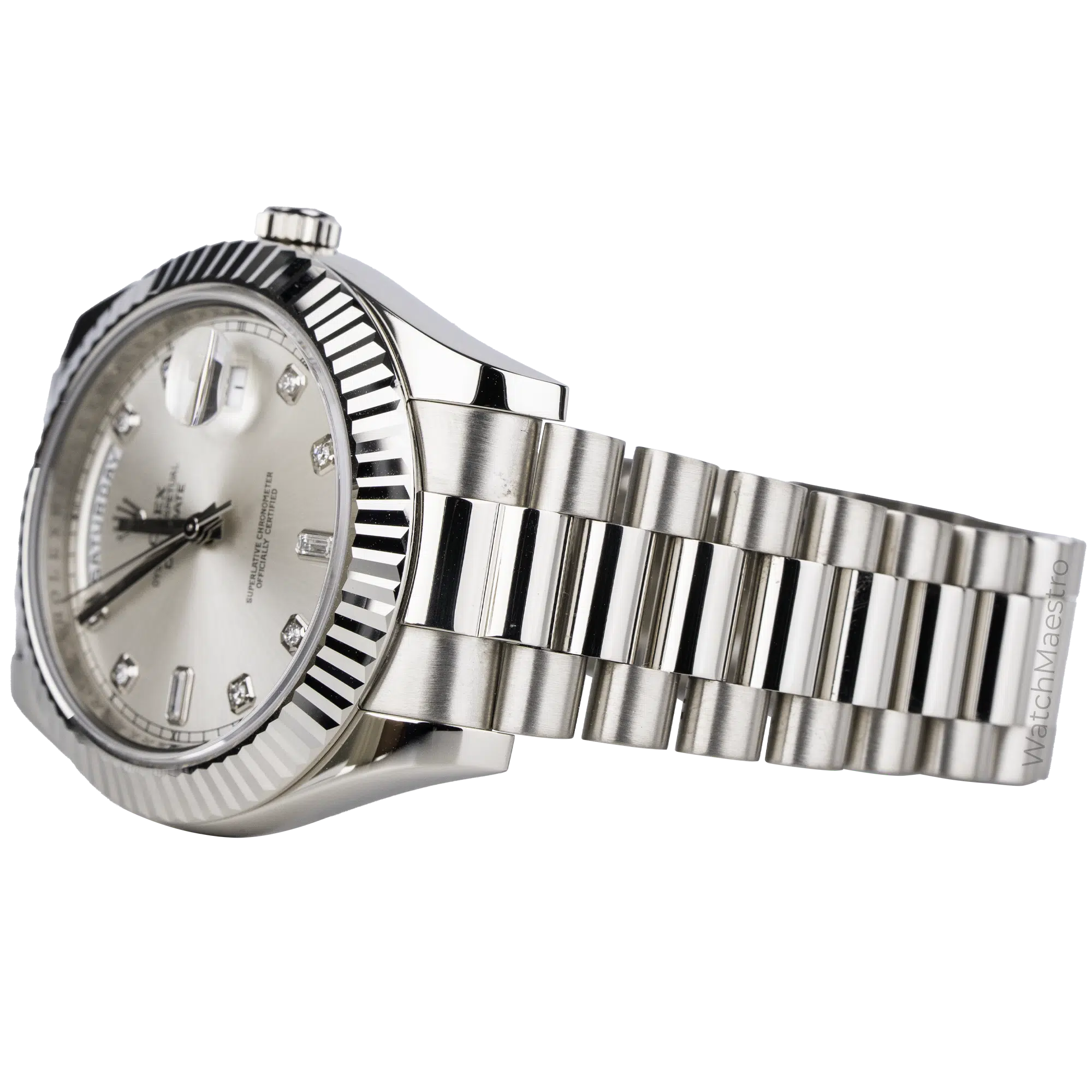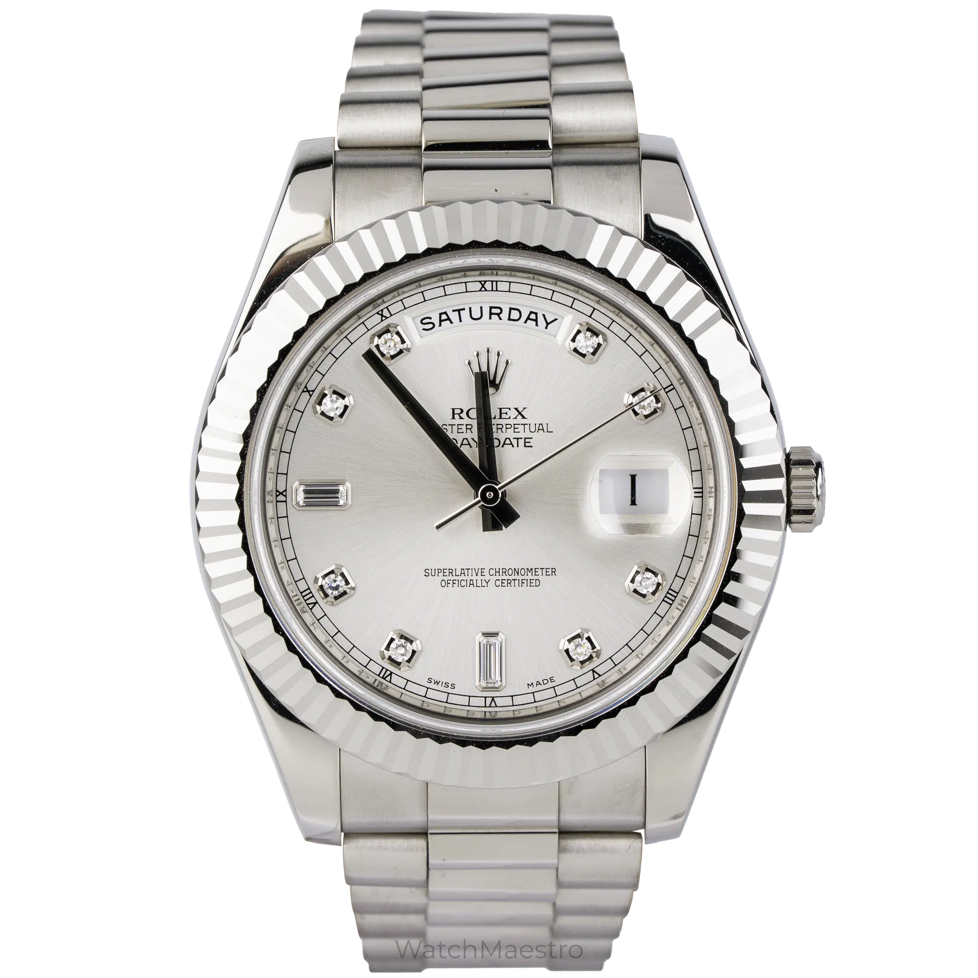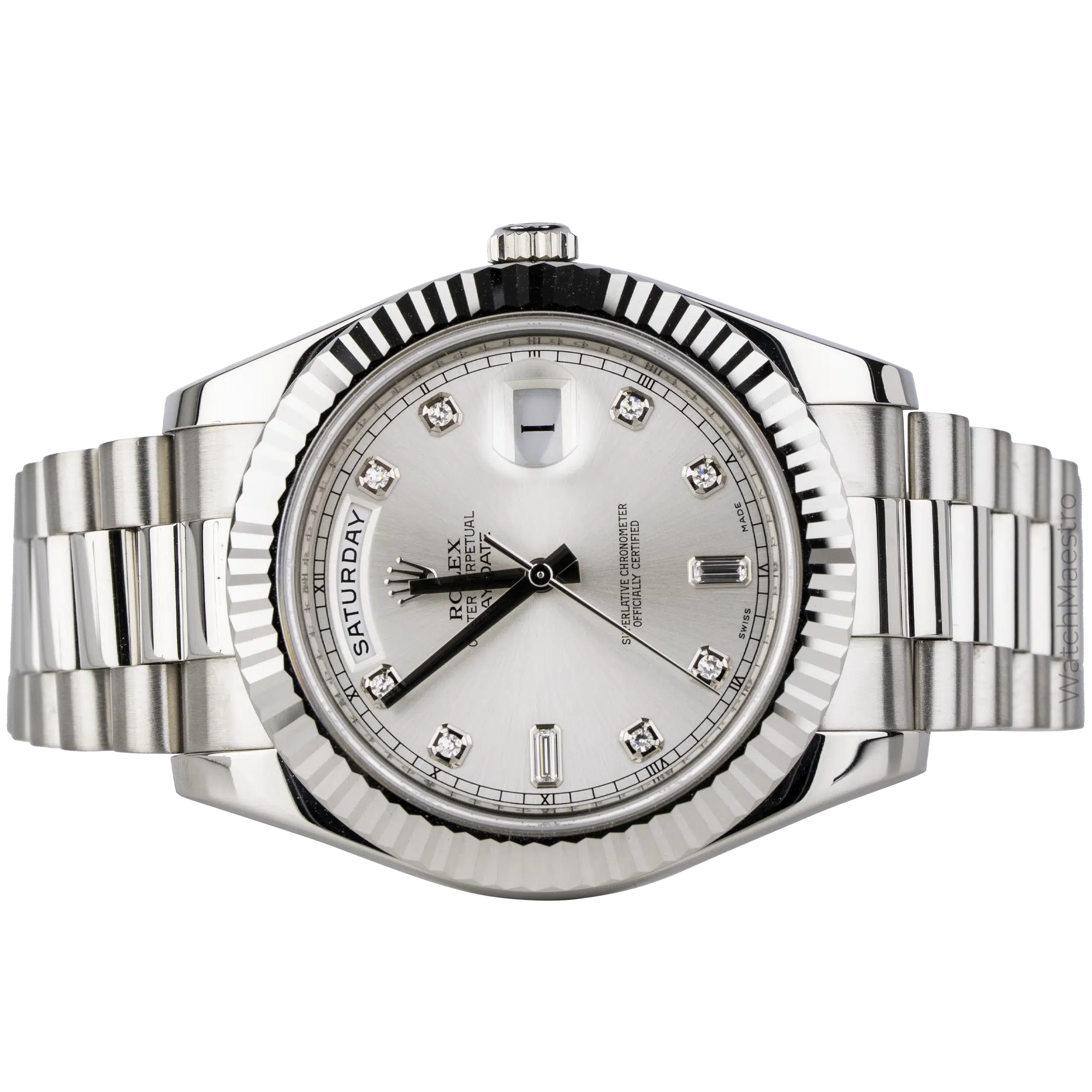 توقف إنتاج ساعة رولكس داي-ديت II، مما زاد من رواجها. حجم علبتها البالغ 41 مم يجعلها مميزة عن باقي موديلات داي-ديت. هذه الساعة من رولكس تخطف الأنظار، وستستمتع بارتدائها في الحفلات والمناسبات الرسمية.
