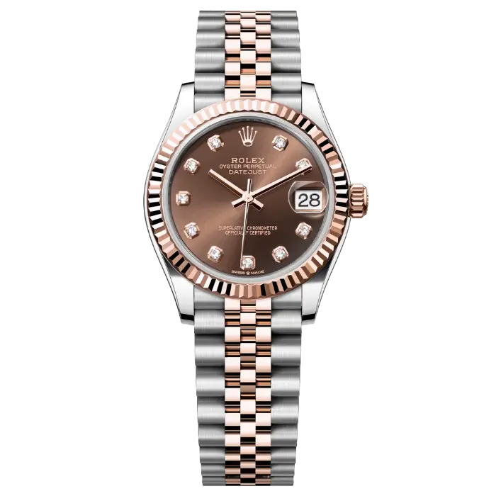 ساعة رولكس ديت جست 31 من الذهب الوردي ومرصعة بالألماس والشوكولاتة