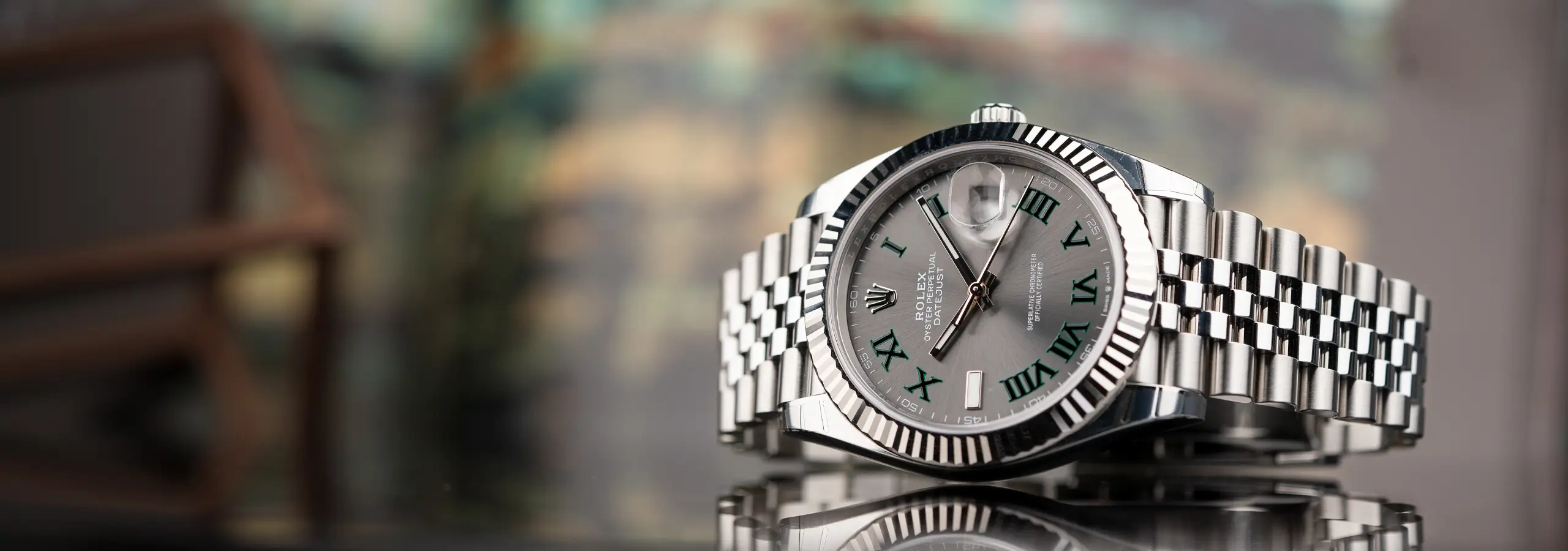 Since its launch in 2009, Rolex Wimbledon has been a popular choice among Datejust lovers. The slate grey dial with green outlined roman numerals outshines any other dial on offer. Rolex Wimbledon Datejust is available in 36mm and 41mm variants and can be combined with a full steel model or a two-tone. Explore our exciting collection of Rolex Wimbledon watches.