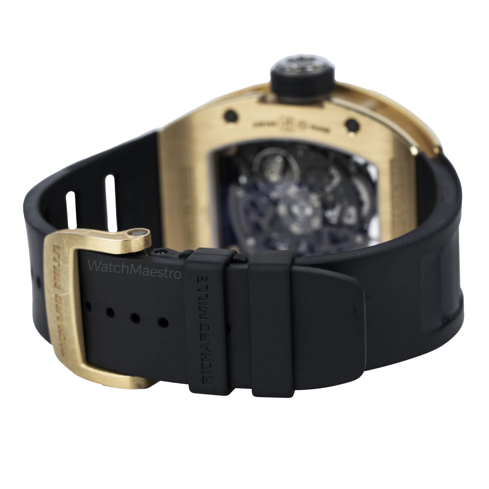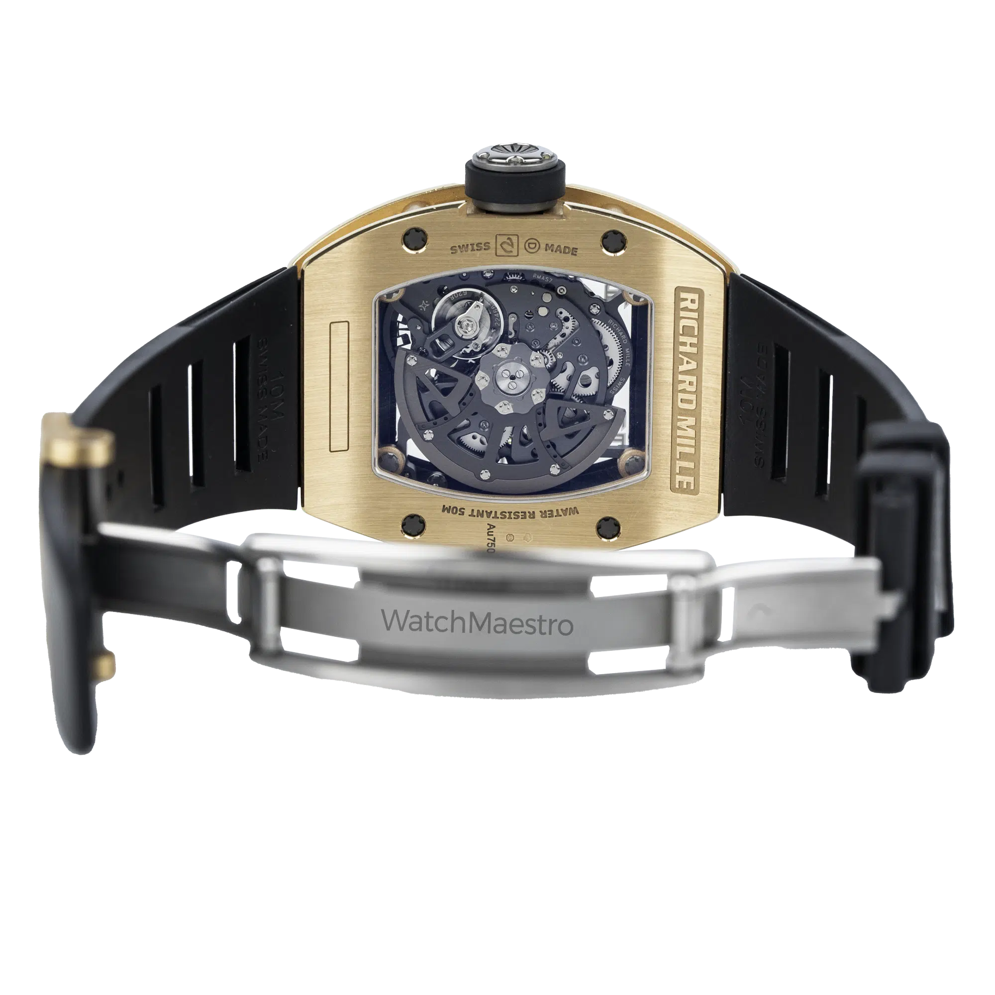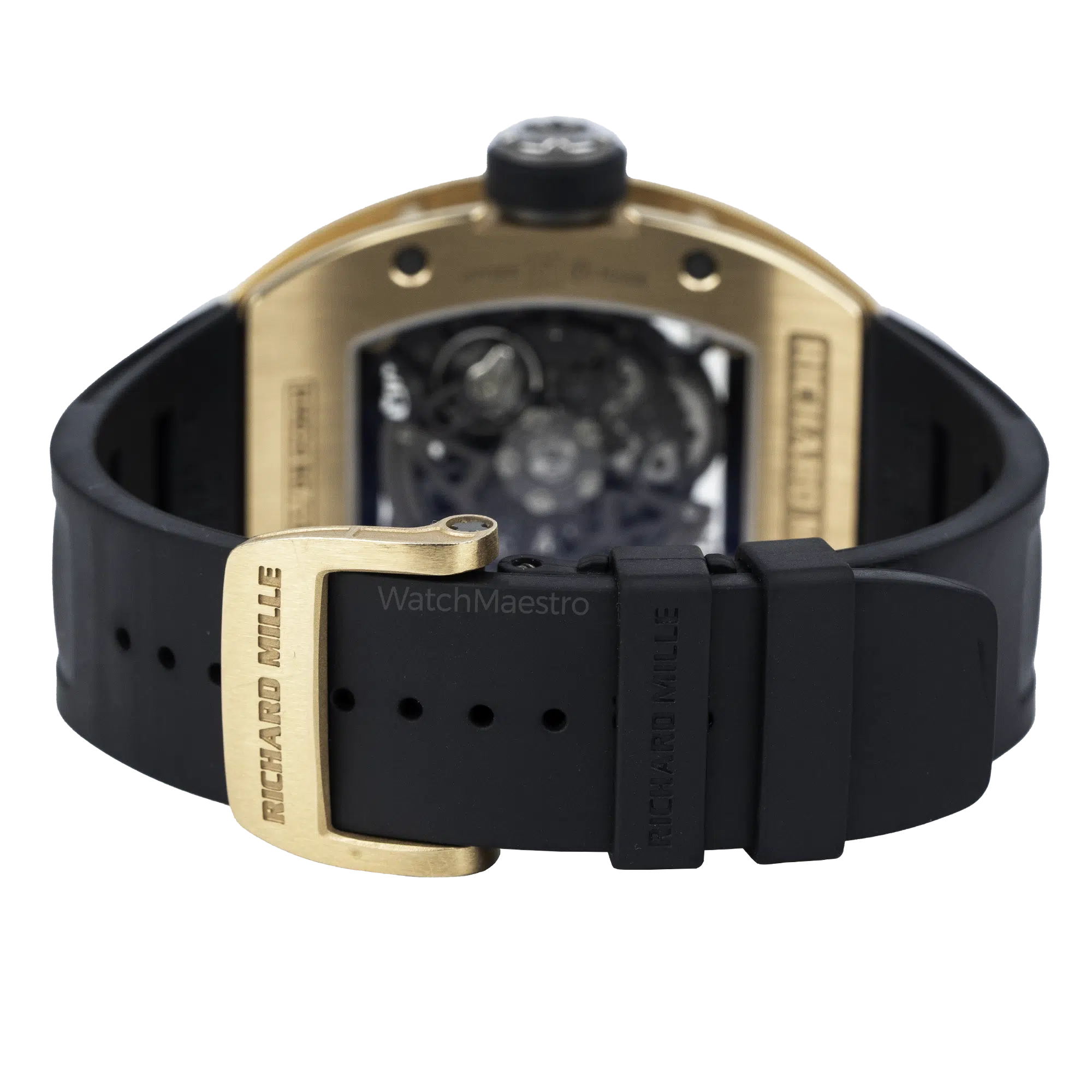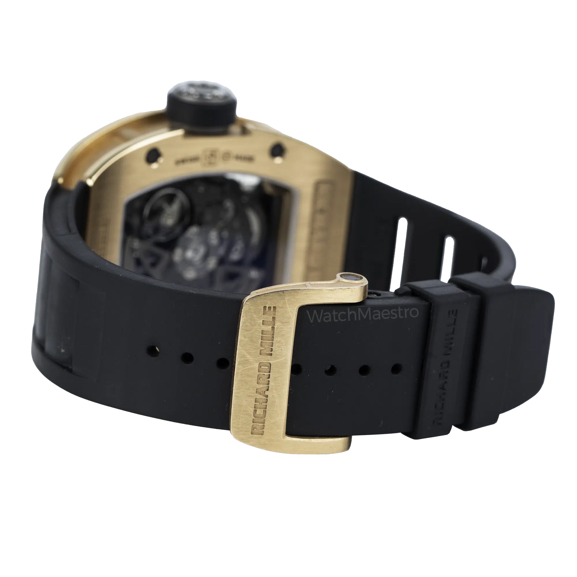 Invest in best of what the world of luxury watches has to offer – the Richard Mille RM 029. It is a timepiece that seamlessly combines sophistication with cutting-edge . Currently available at WatchMaestro, this particular watch features a Rose Gold case with Factory-set Diamonds on it. Purchased in 2021, the watch comes complete with box and papers. Even though the watch has been used, it is still in a great condition. Designed for both comfort and style, the watch comes with a Black Rubber Strap that complements the Rose Gold case flawlessly. The Titanium Buckle not only ensures a secure fit but also adds a feather-light touch, enhancing the overall wearability of this timepiece.