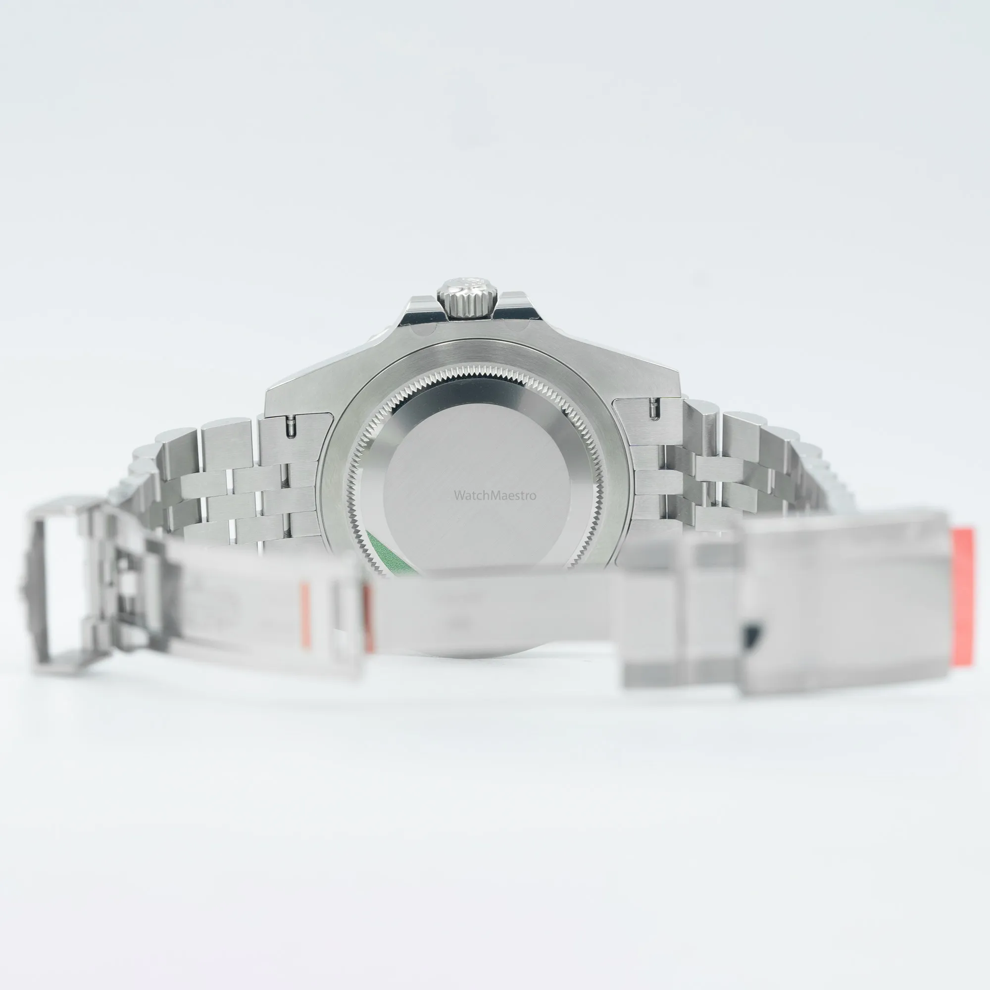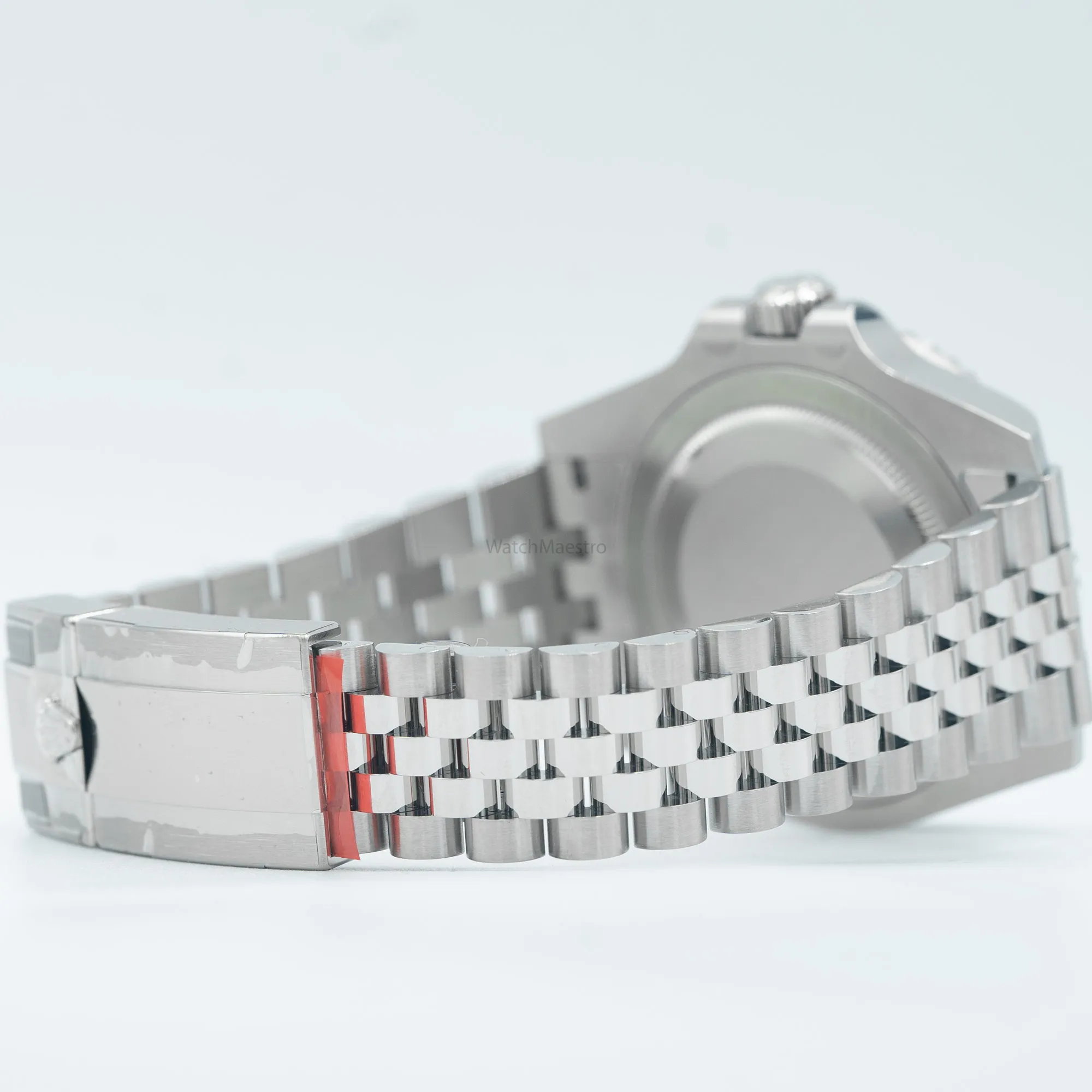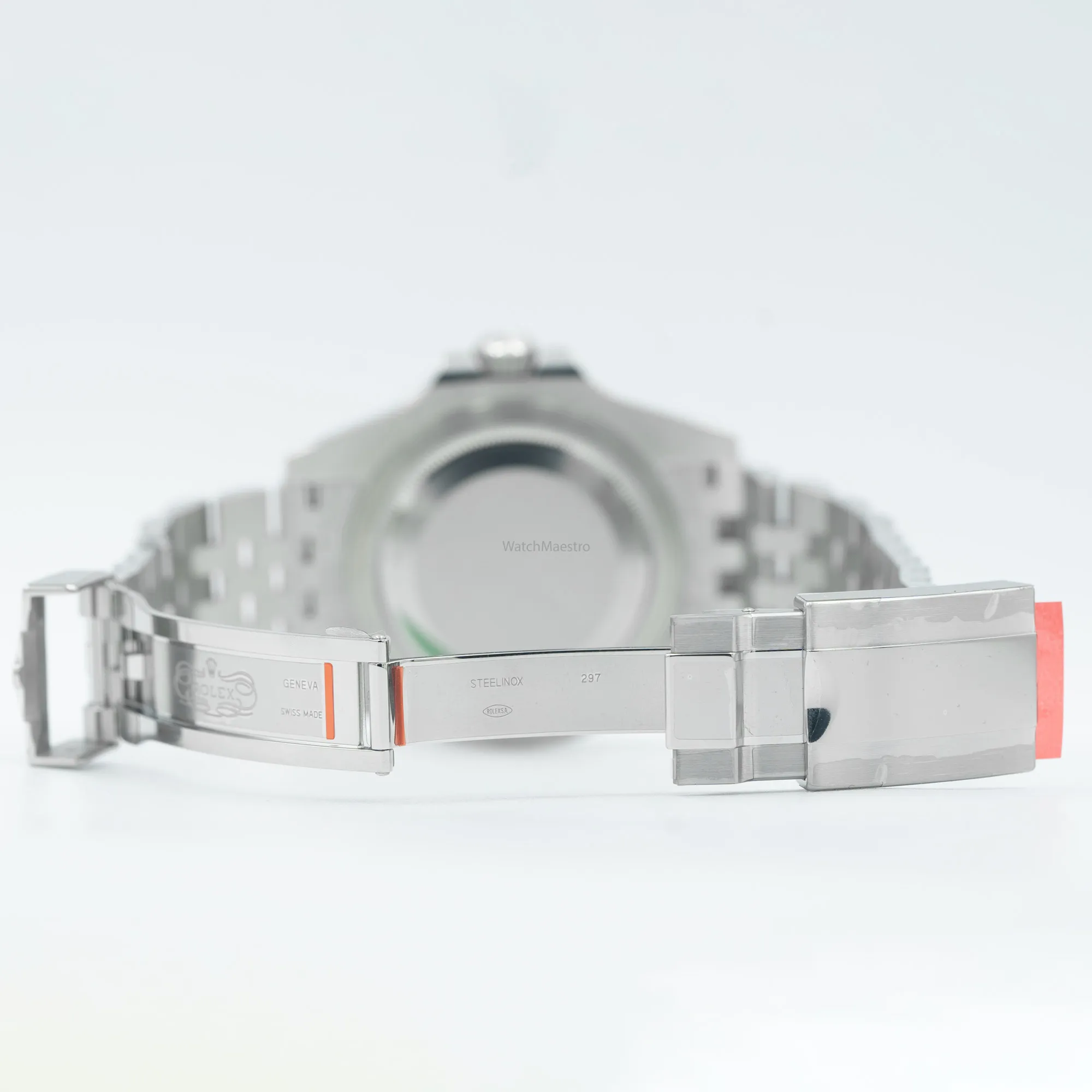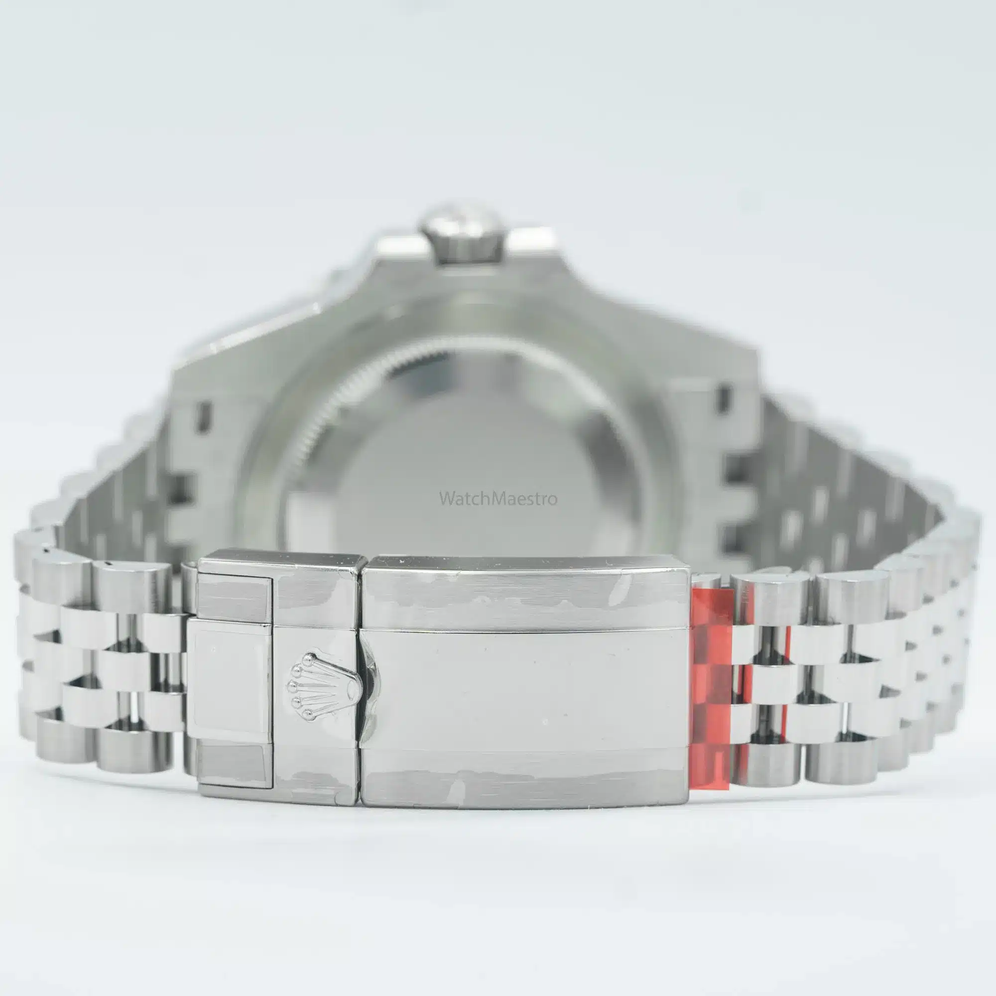 This is a brand-new Rolex GMT Master II with a 40mm black dial. Purchased in 2023, the watch comes complete with box and papers. Popularly known as the Rolex Batgirl due to the Jubilee bracelet, this watch features the iconic blue and black bezel. The watch houses the Caliber 3285 movement that allows travelers to easily adjust their local time using the winding crown.