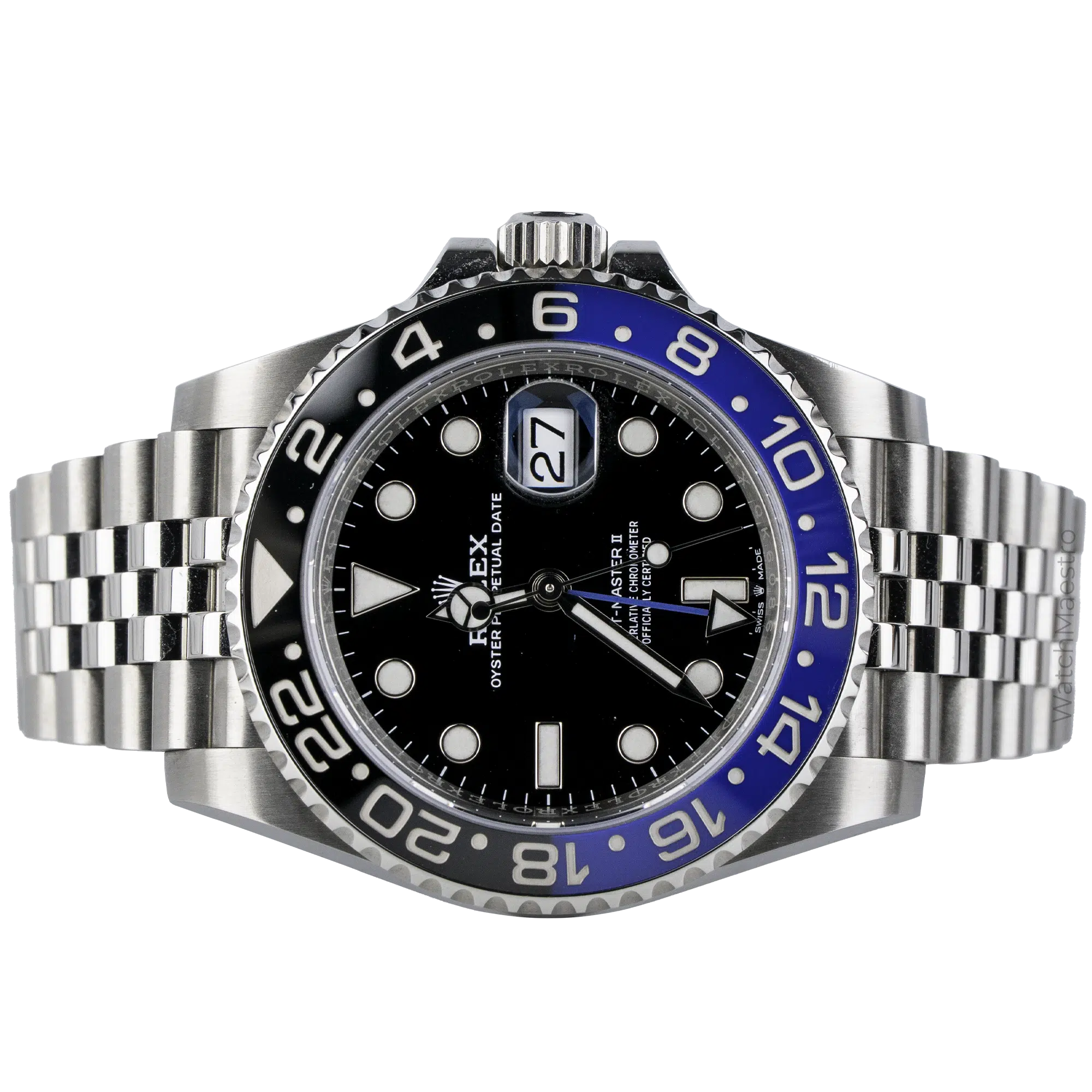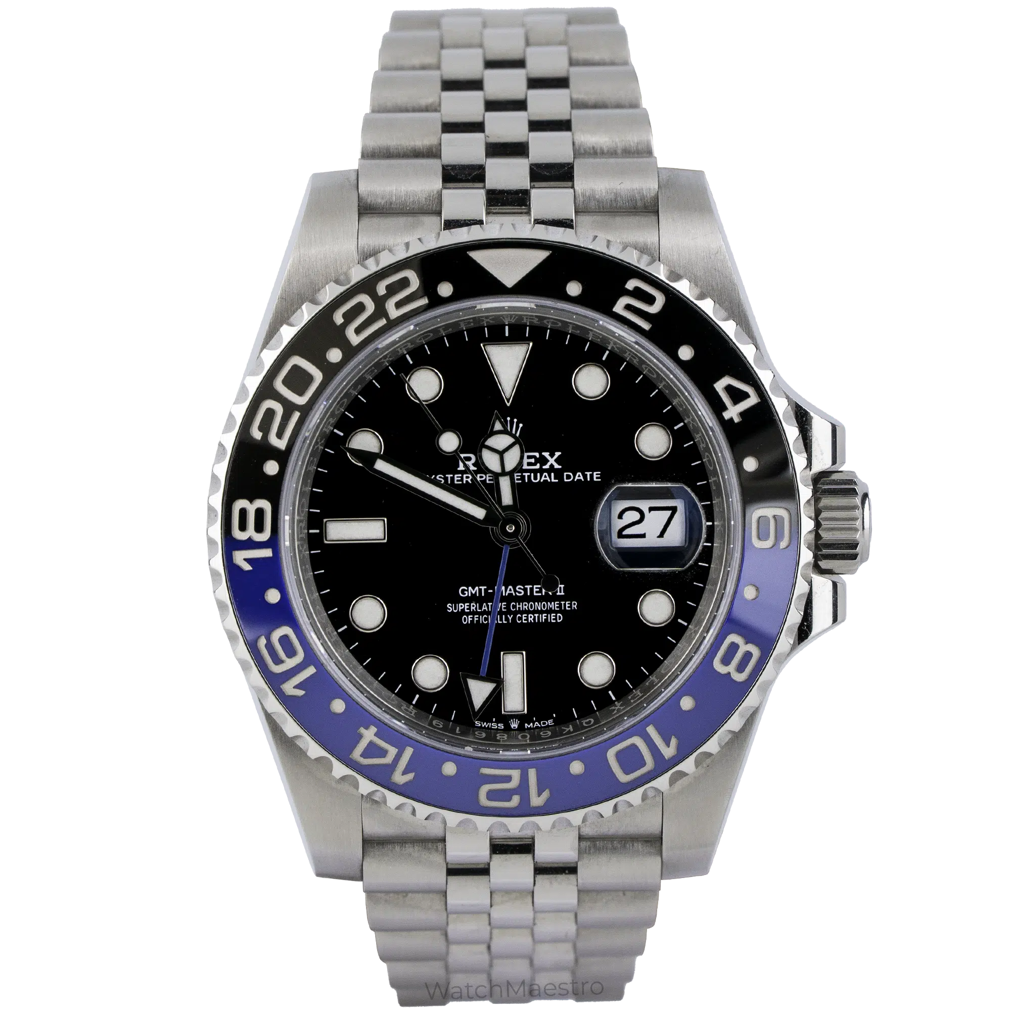 Rolex GMT Master II is presented in an exceptional steel finish, offering impressive resistance against corrosion. The Rolex Batgirl is everyday wear and can be worn for multiple purposes. Its characteristic and distinctive aesthetics make it a watch to own for years. The watch boasts a power reserve of 70 hours, powered by Rolex’s in-house-made caliber 3285 movement.