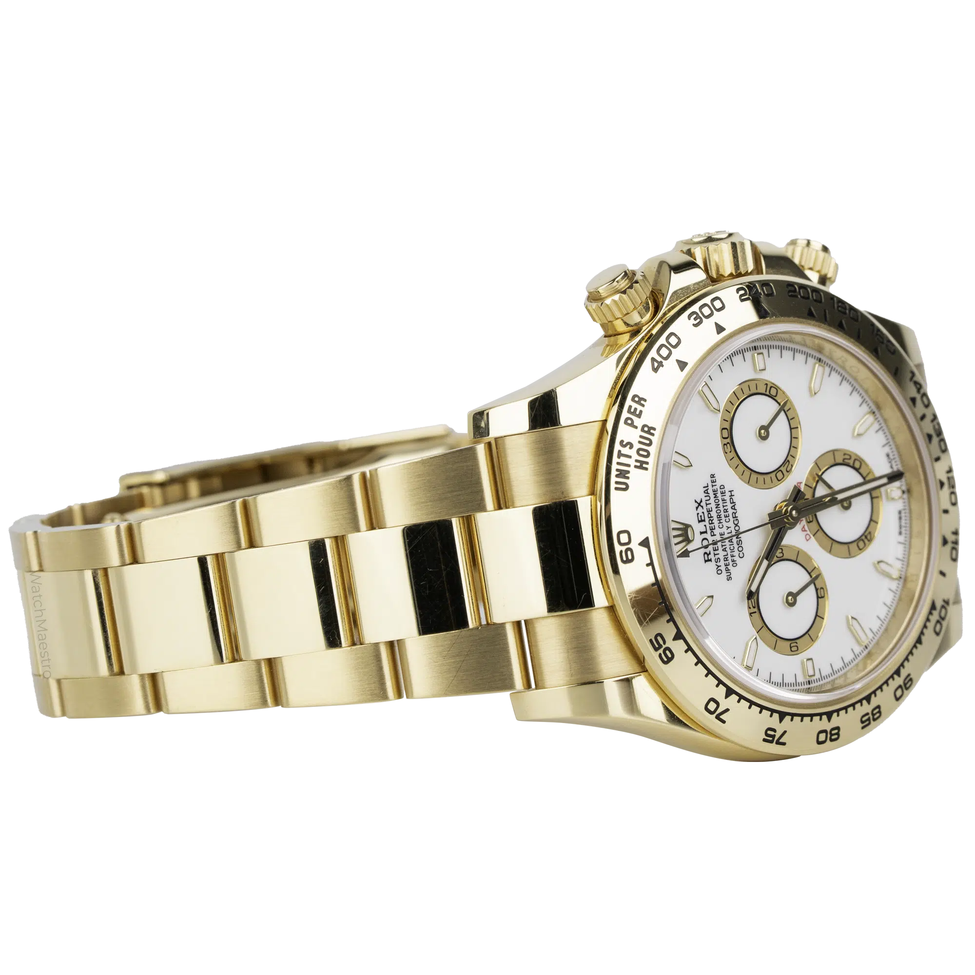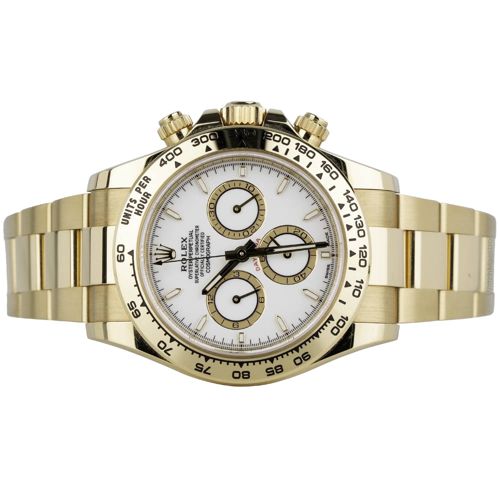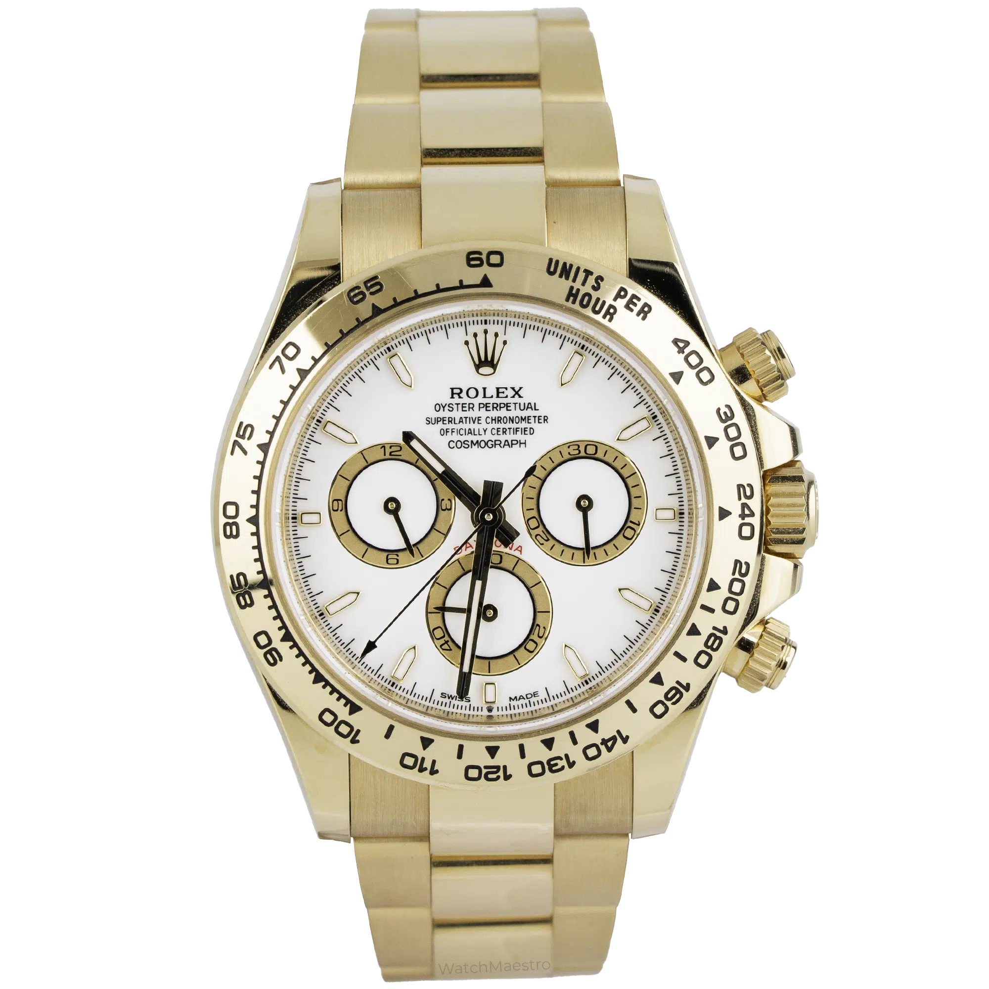 Rolex Daytona is available in a variety of material options including Stainless Steel, Rose Gold, Yellow Gold, White Gold as well as Platinum. Some of the material options further give the buyer the option to pick between an Oyster bracelet or an Oysterflex strap.