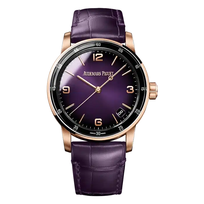 The Audemars Piguet Code 11.59 Ref. 15210OR.OO.A616CR.01 features a Smoked lacquered purple dial with sunray pattern base. Even though it is not a sports model, it is still water resistant and you can go as deep as 30 meters with it. It is powered by the Calibre 4302 movement that offers a power reserve of up to 70 hours.