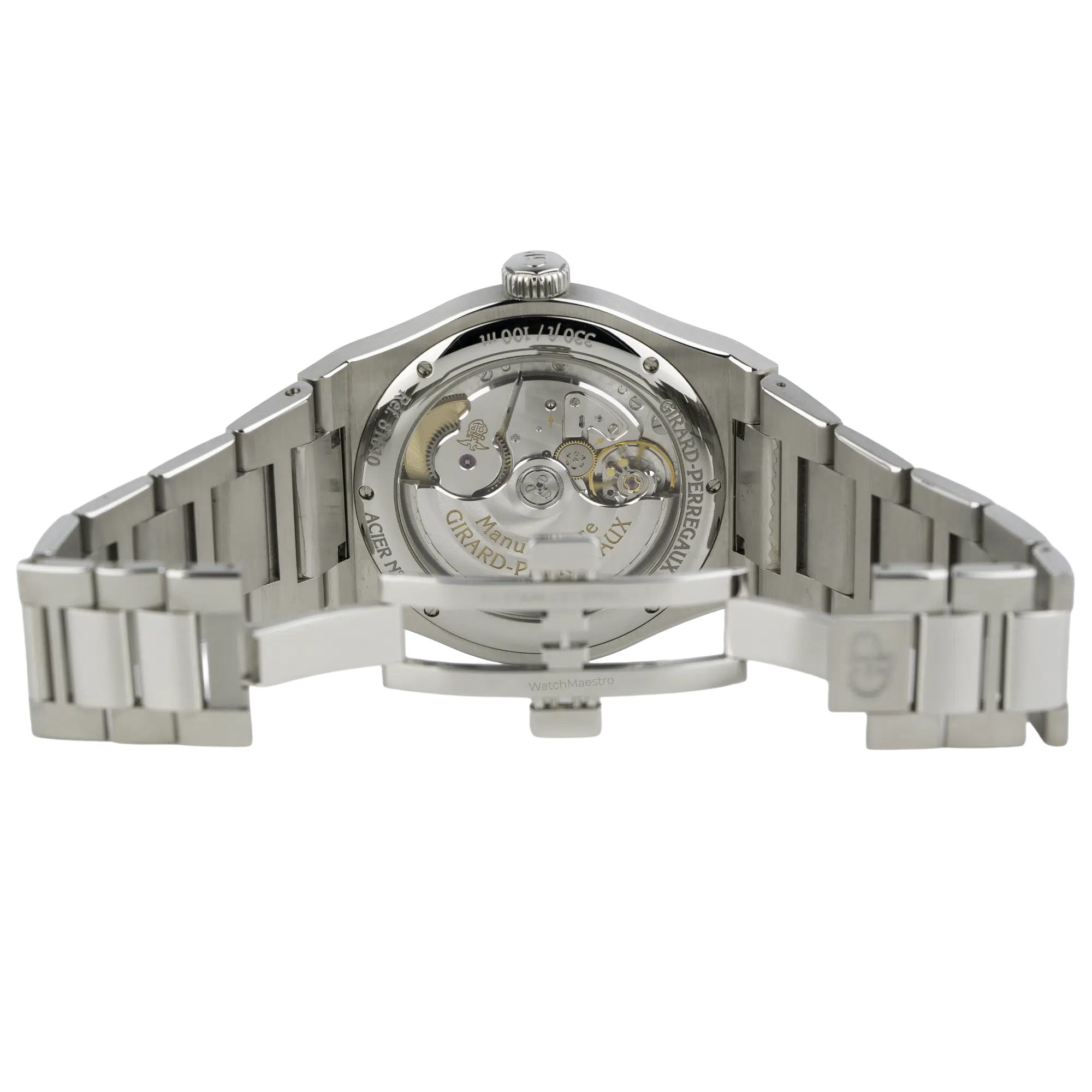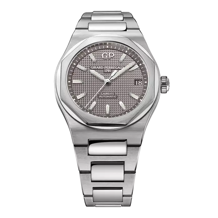 The Girard-Perregaux Laureato is powered by the Calibre GP01800 movement, which is a self-winding movement that offers a power reserve of approximately 54 hours.