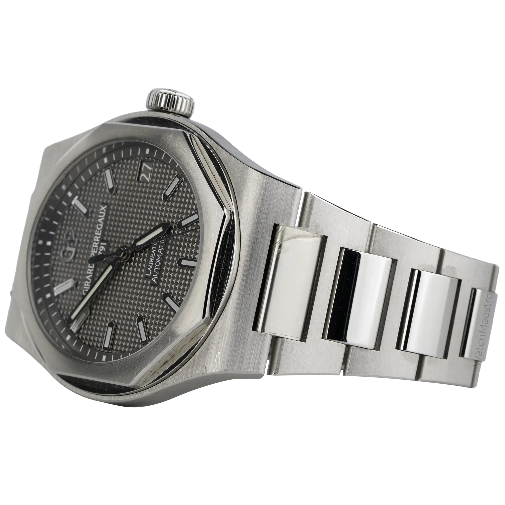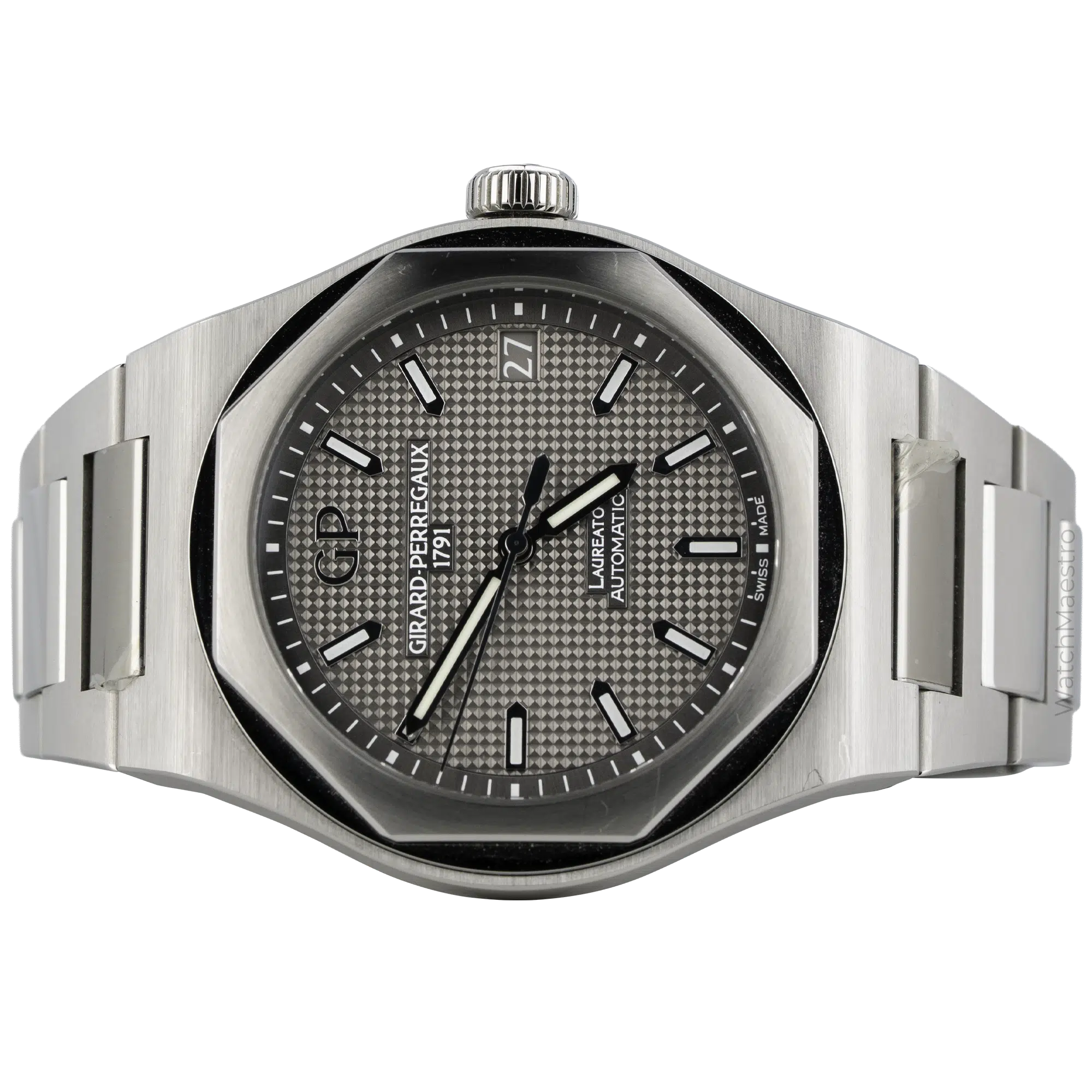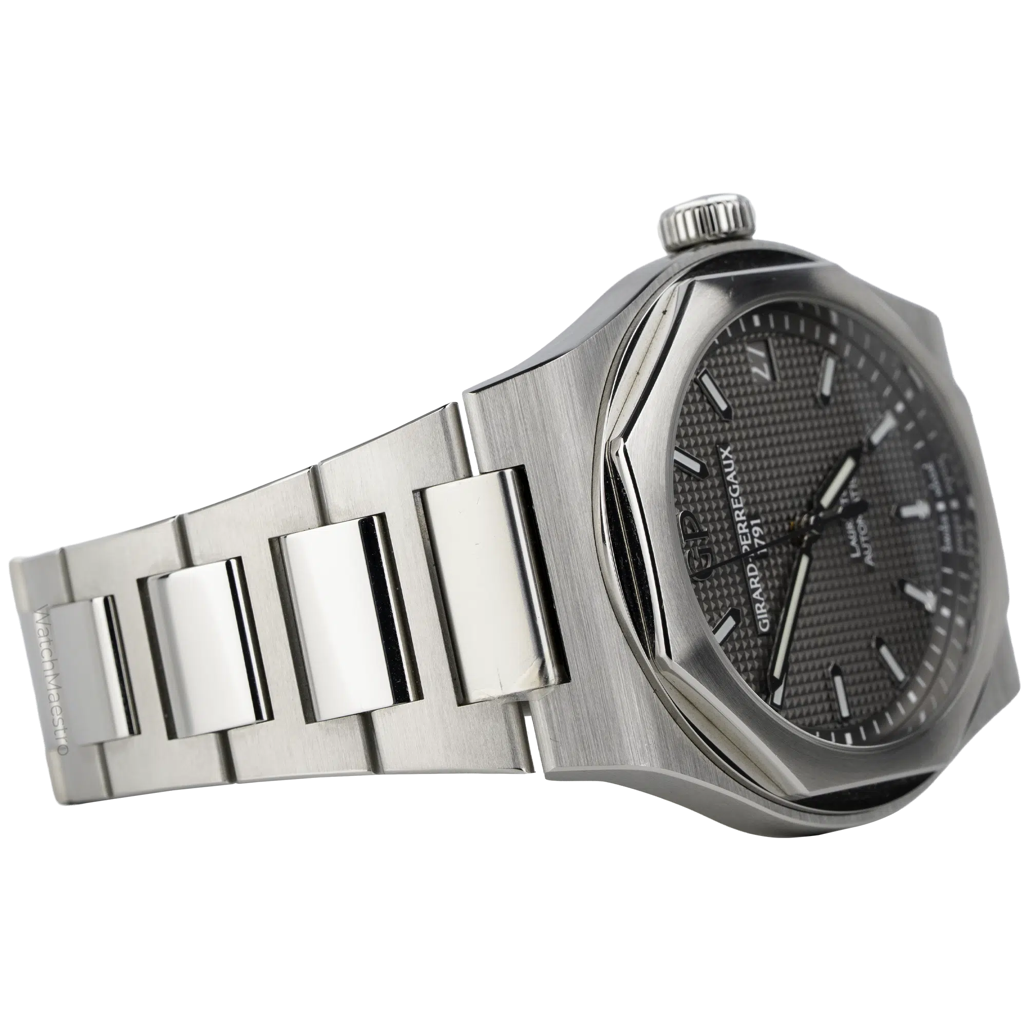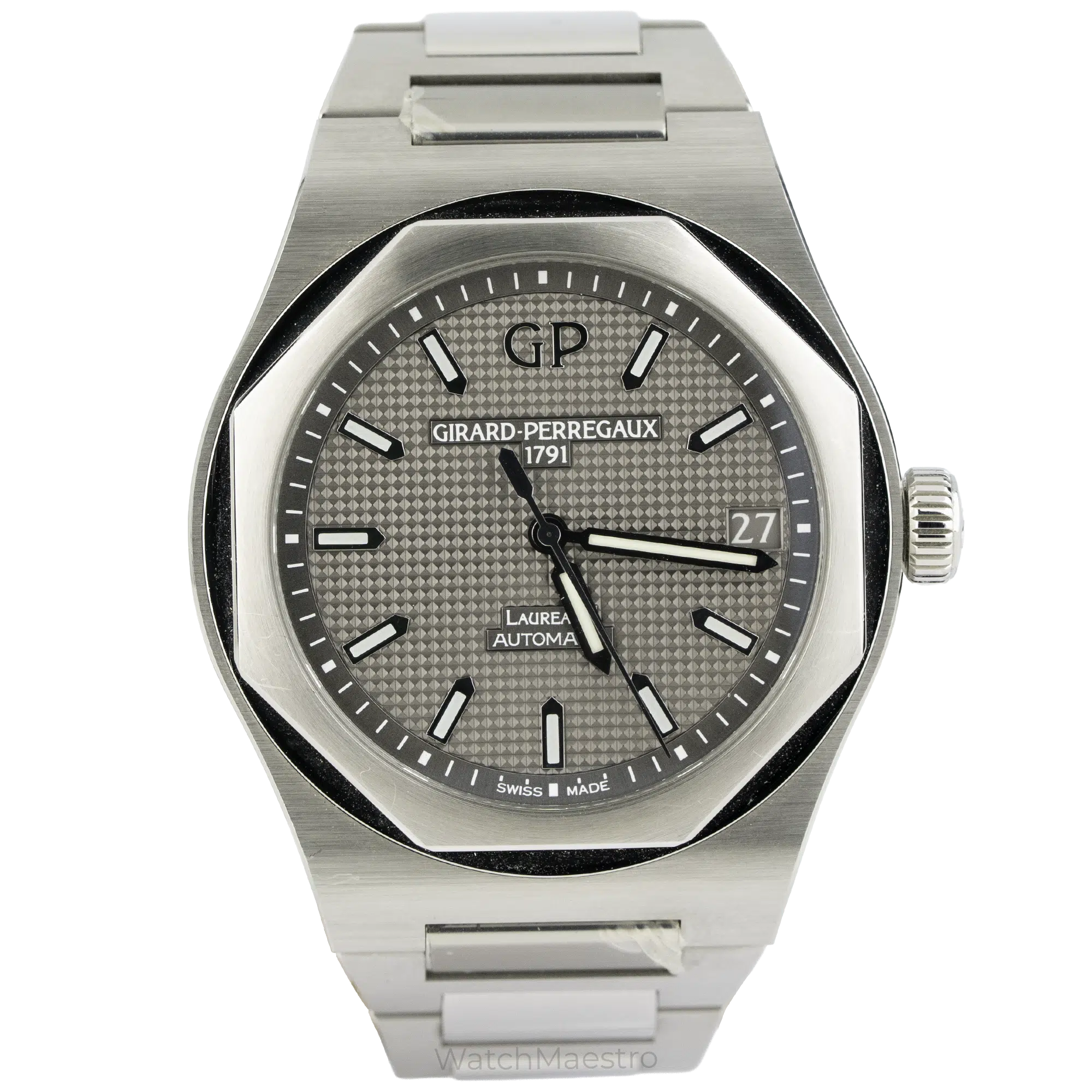 This is a brand-new Girard-Perregaux Laureato, which is a true embodiment of a timeless design. Purchased in 2022, the watch is unworn and comes complete with box and papers. The standout feature of this watch is the 42mm Grey Dial, a unique and rare find as it has now been discontinued.