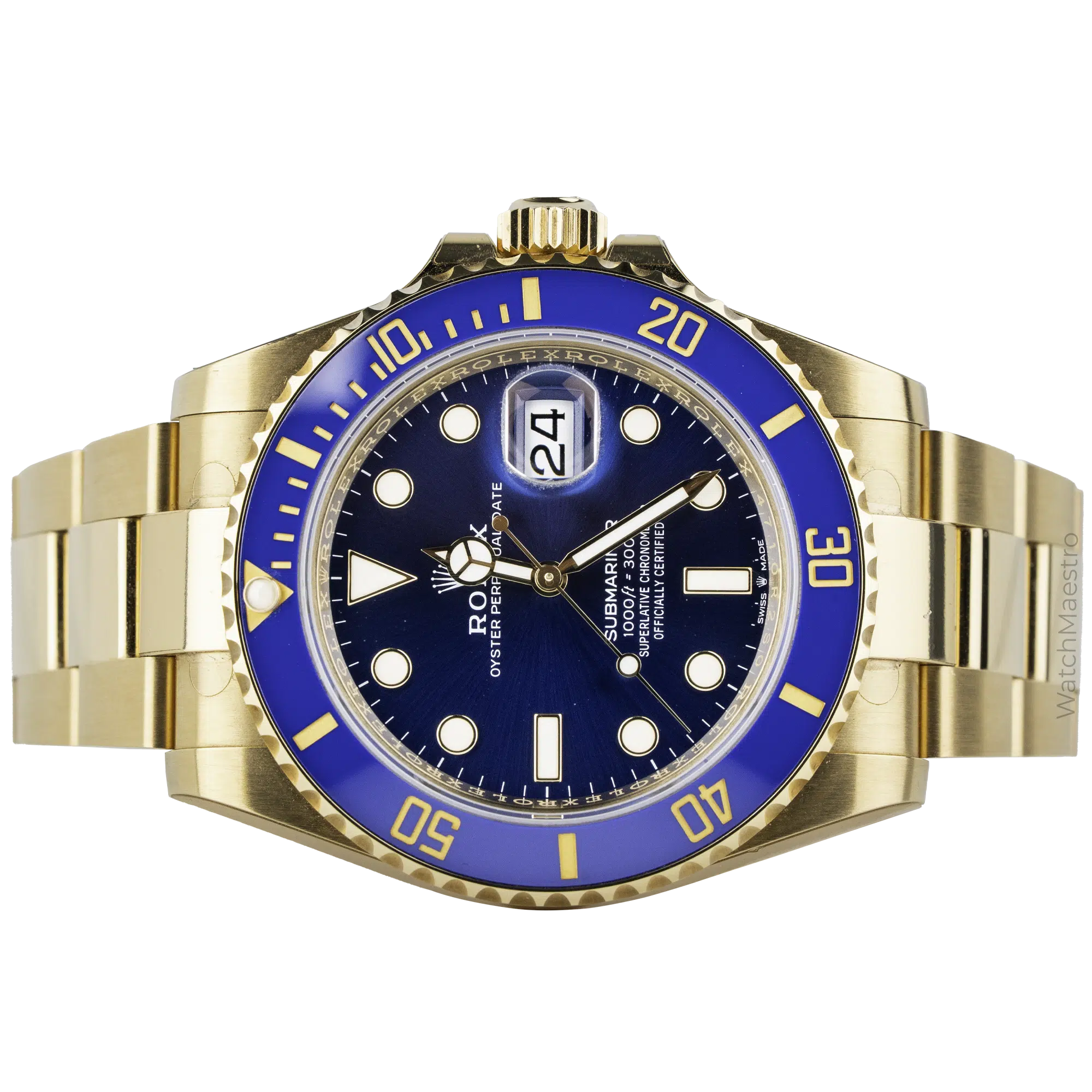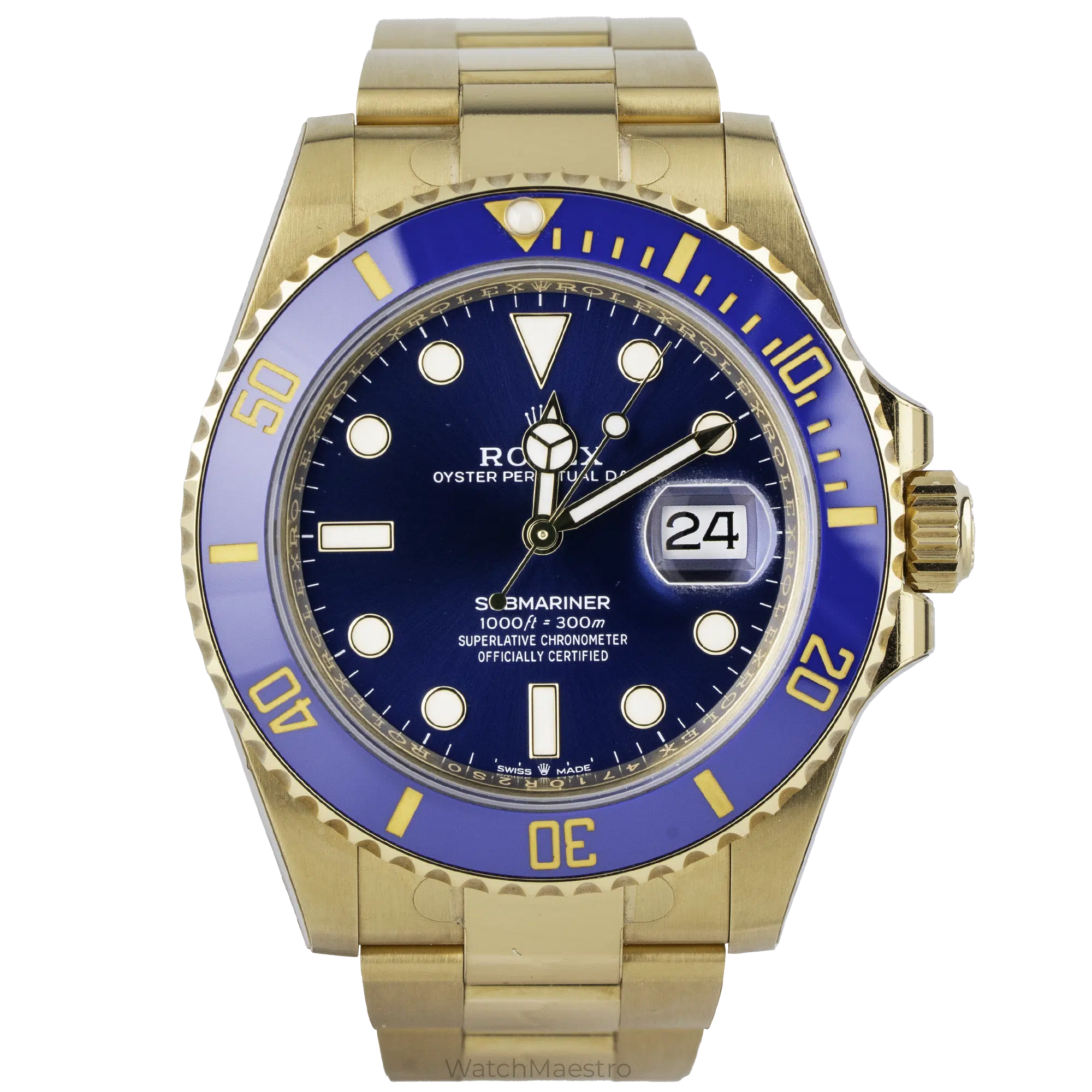 For those who are not shy making some noise and want a watch to match their personality, this Rolex Submariner crafted in full 18ct Yellow Gold is just the watch for you. Keeping a bold statement, this timepiece flaunts a 41mm Blue dial paired with a Blue ceramic bezel. This pre-owned timepiece was originally purchased in 2023 and it comes complete with its box and papers. It is one of the few pieces that you can get at a discount over its retail price.