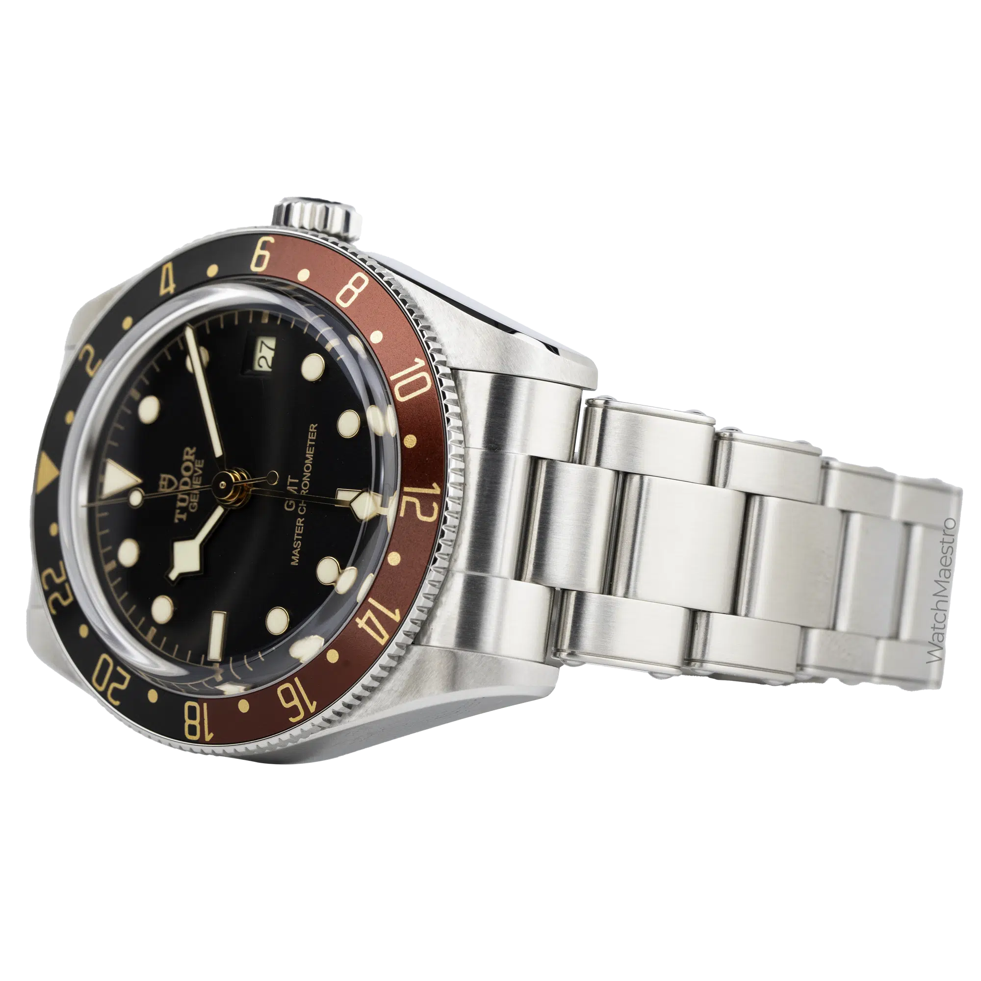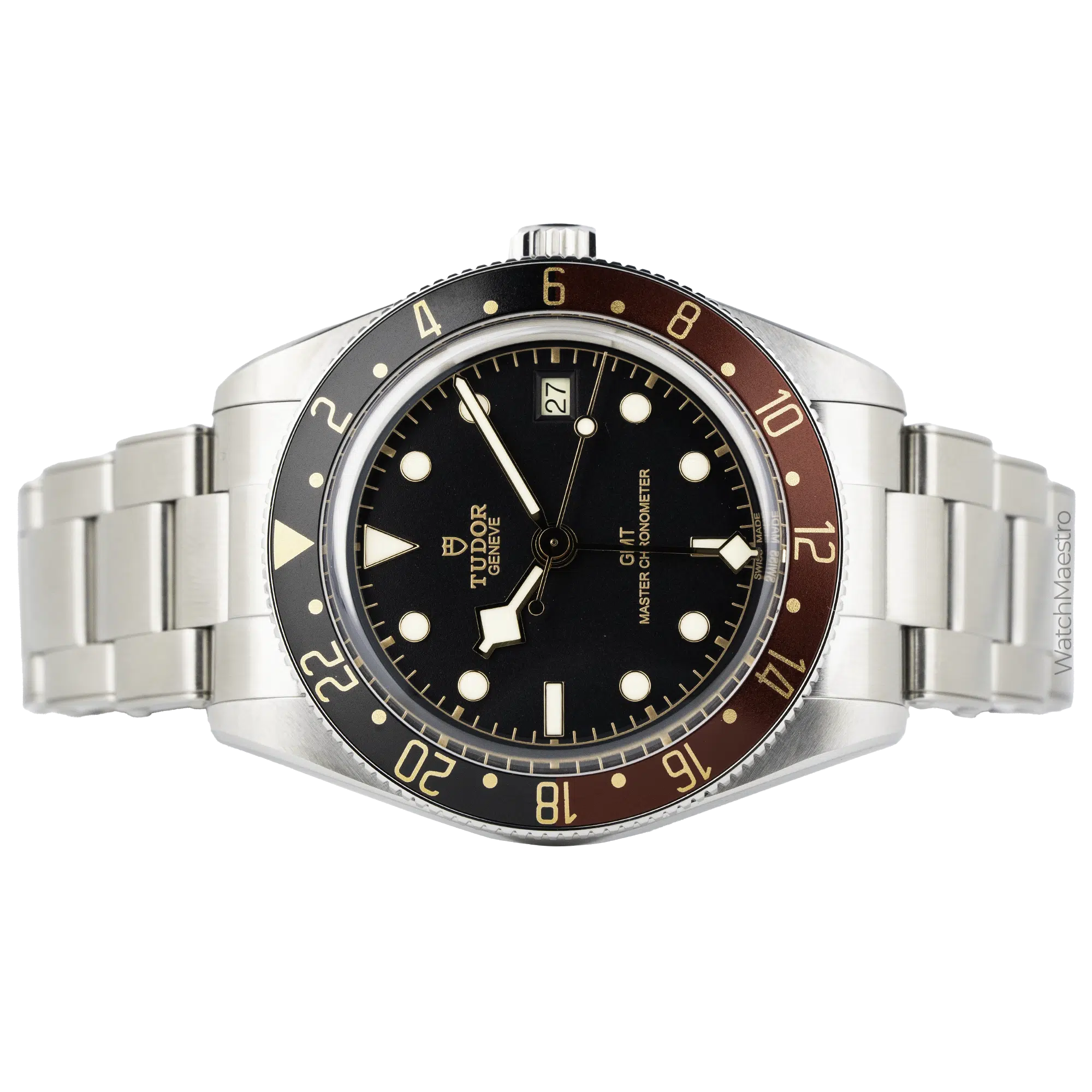 This Tudor Black Bay 58 GMT is powered by the MT5450-U self-winding mechanical movement offering a power reserve of up to 65 hours. The watch is rated waterproof for up to 200 meters and it is also COSC certified.