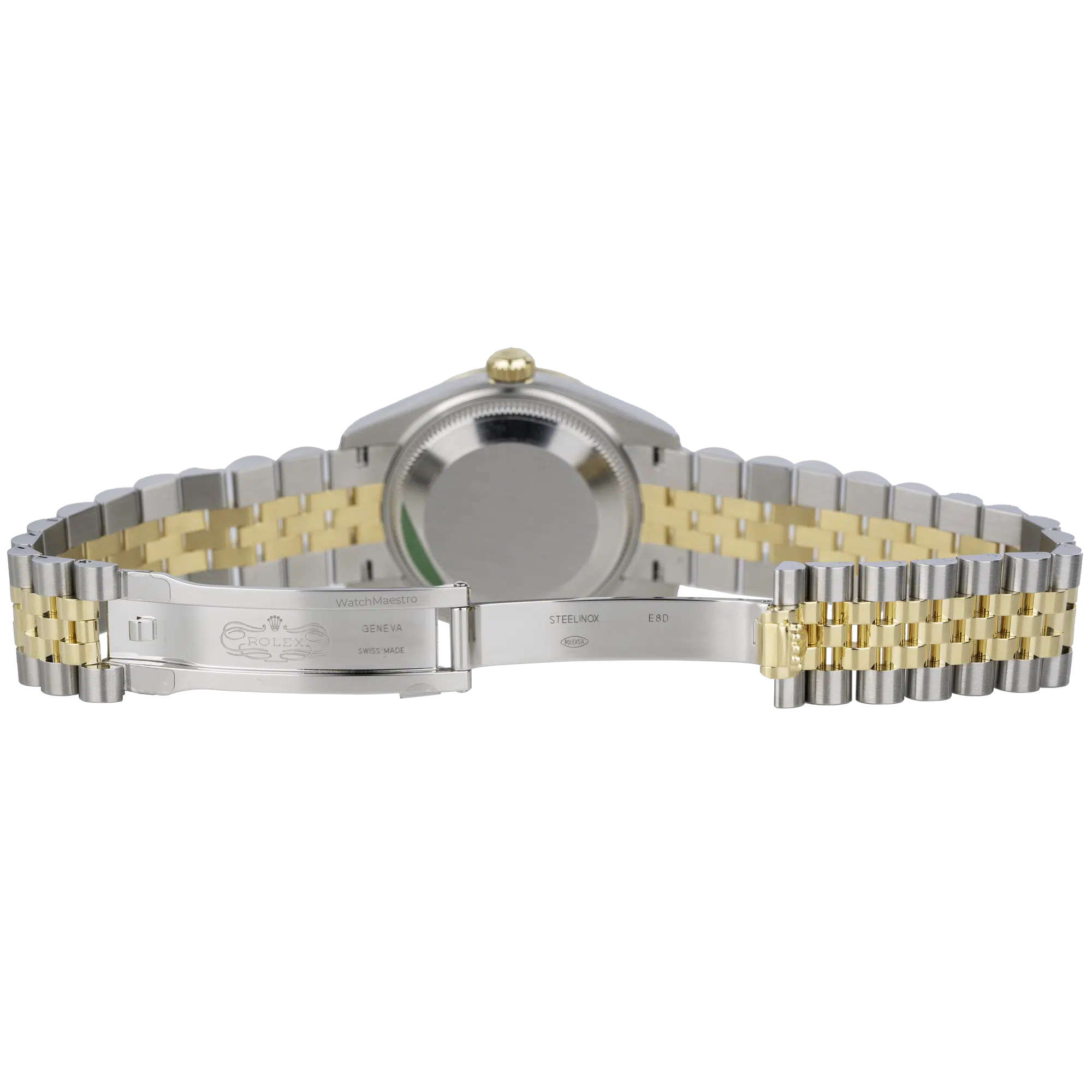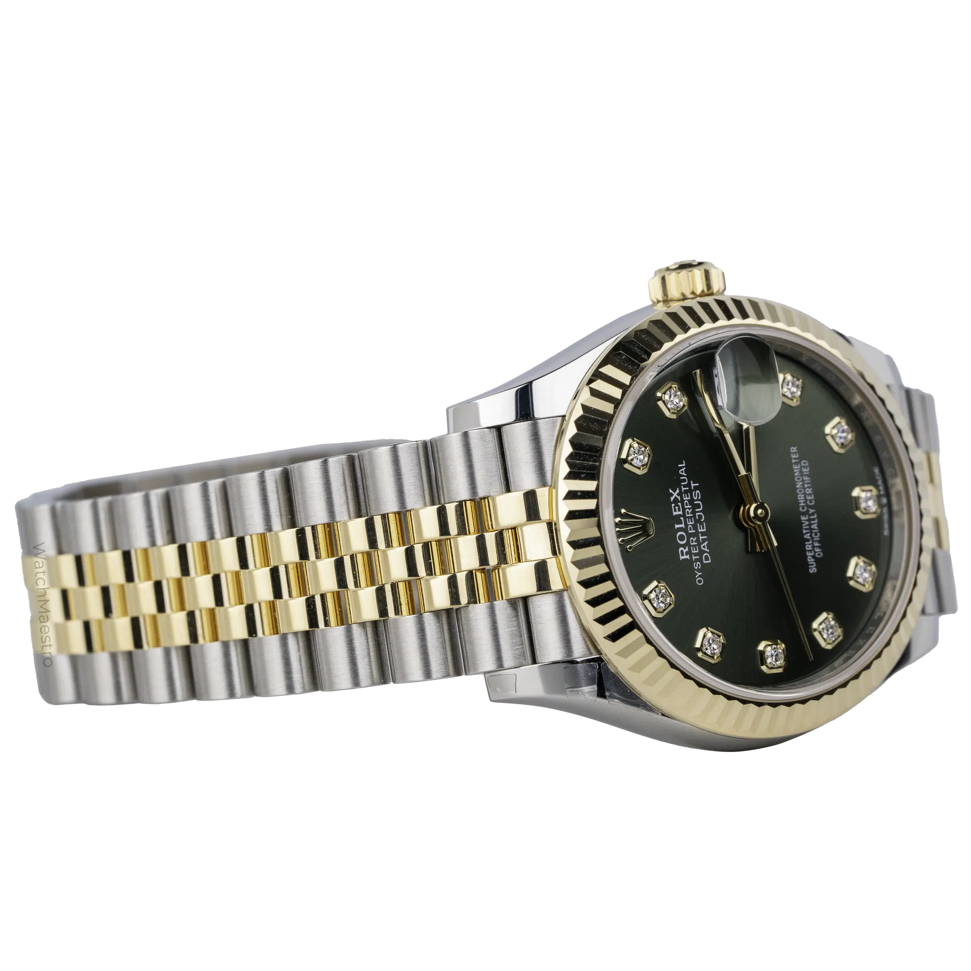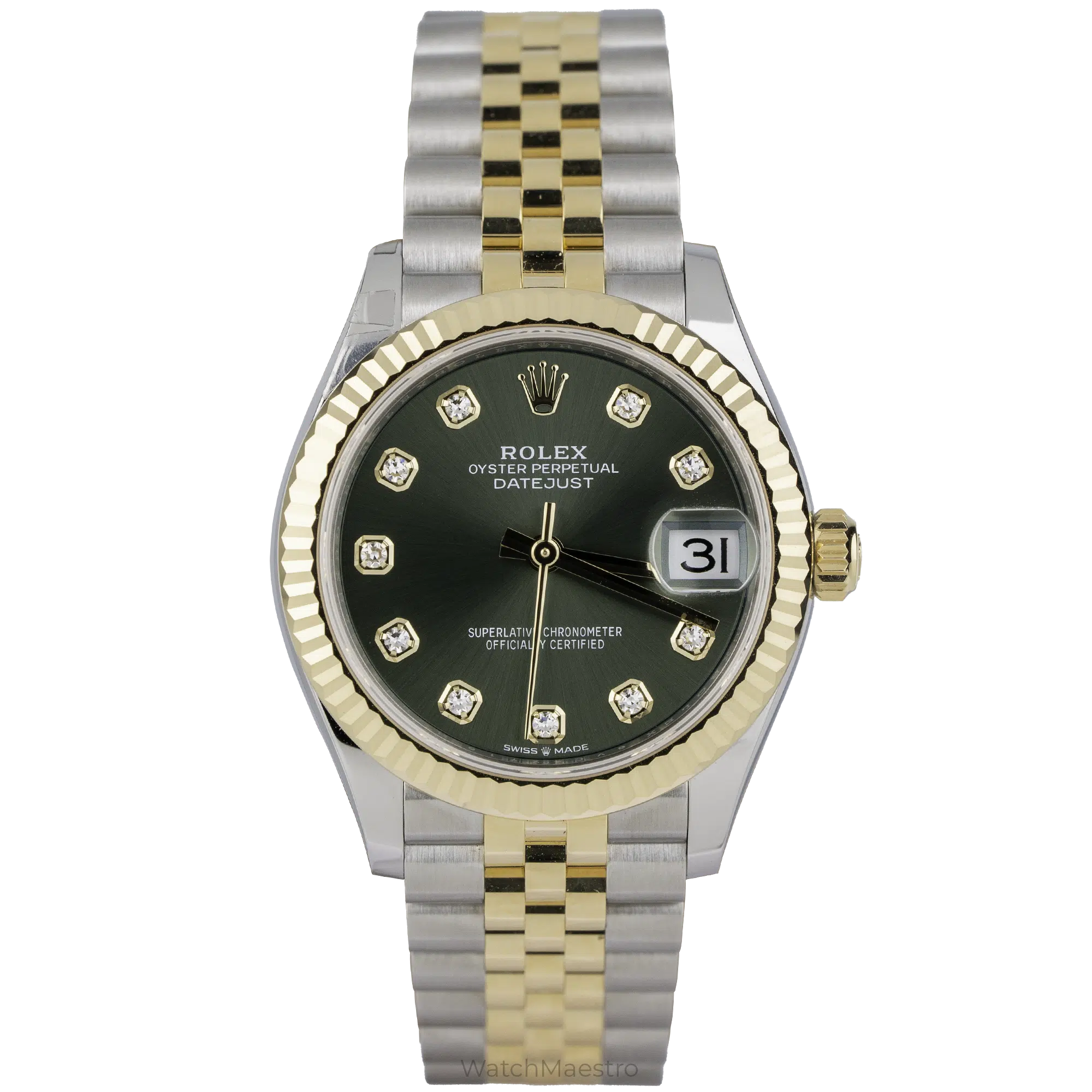 Presenting the Rolex Datejust 31mm in a brand-new condition. It flaunts a mesmerizing Green Dial encrusted with diamond-set hour markers. The sleek hands glide gracefully across the face, while the date window at 3 o’clock ensures both functionality and refinement. Encased in stainless steel, the 31mm watch is paired with a Yellow Gold Fluted Bezel. The striking Two-Tone Jubilee Bracelet, crafted from Yellow Gold and Stainless Steel, perfectly balances the look and appeal of the watch. Acquired in 2024, this Rolex Datejust comes complete with its original box and papers, reassuring you of its authenticity.