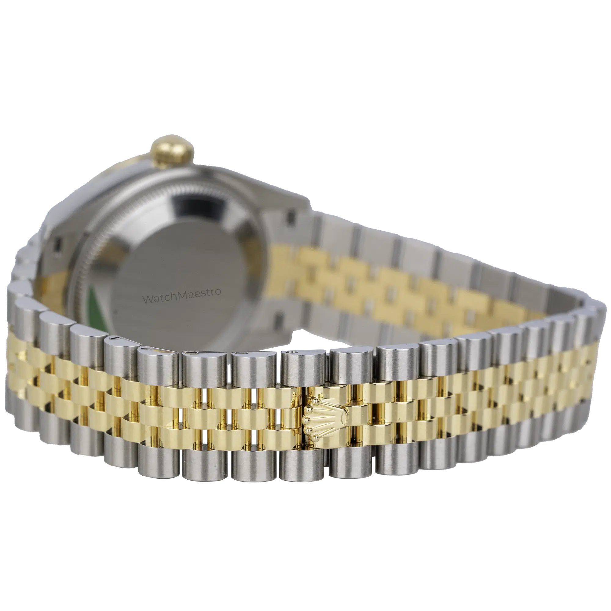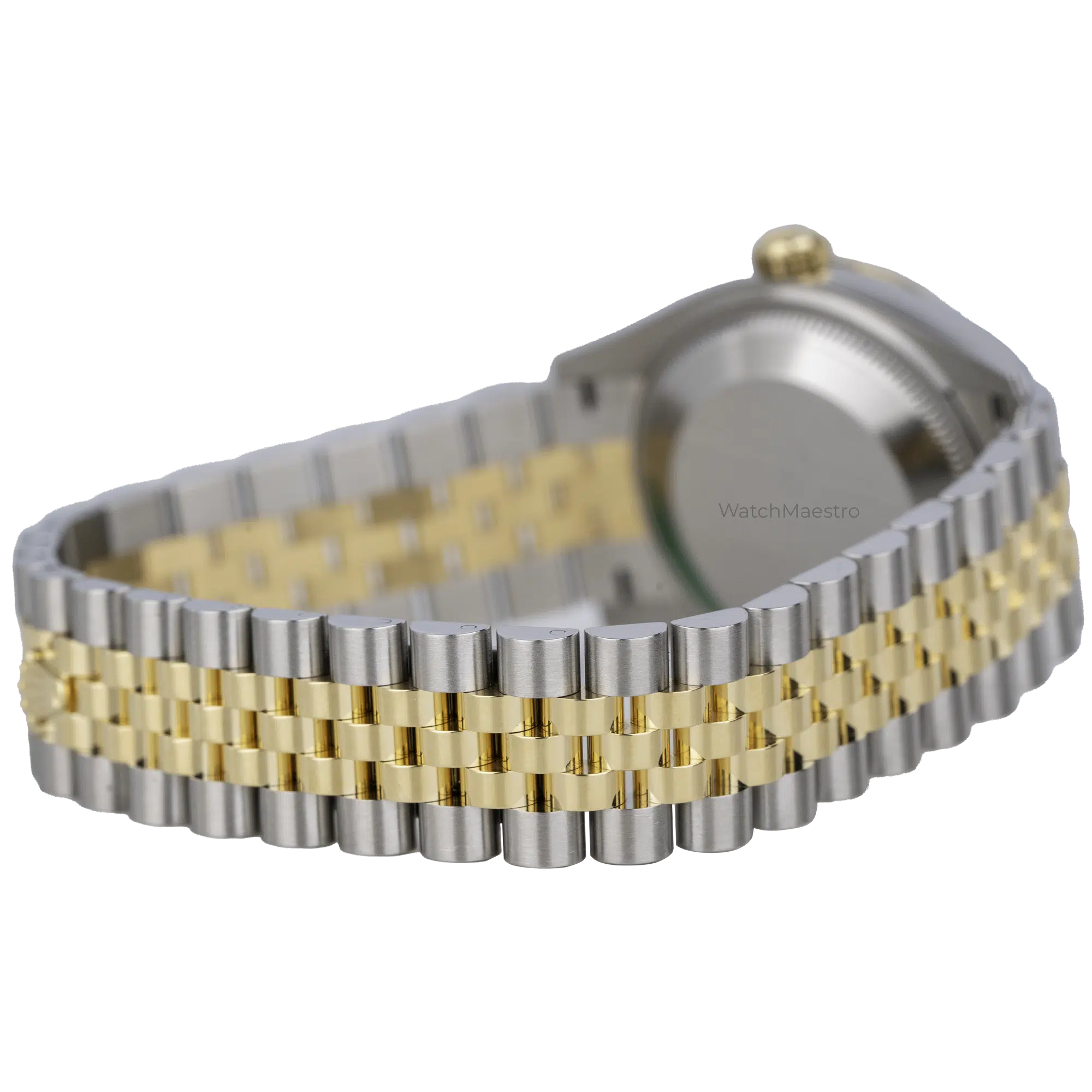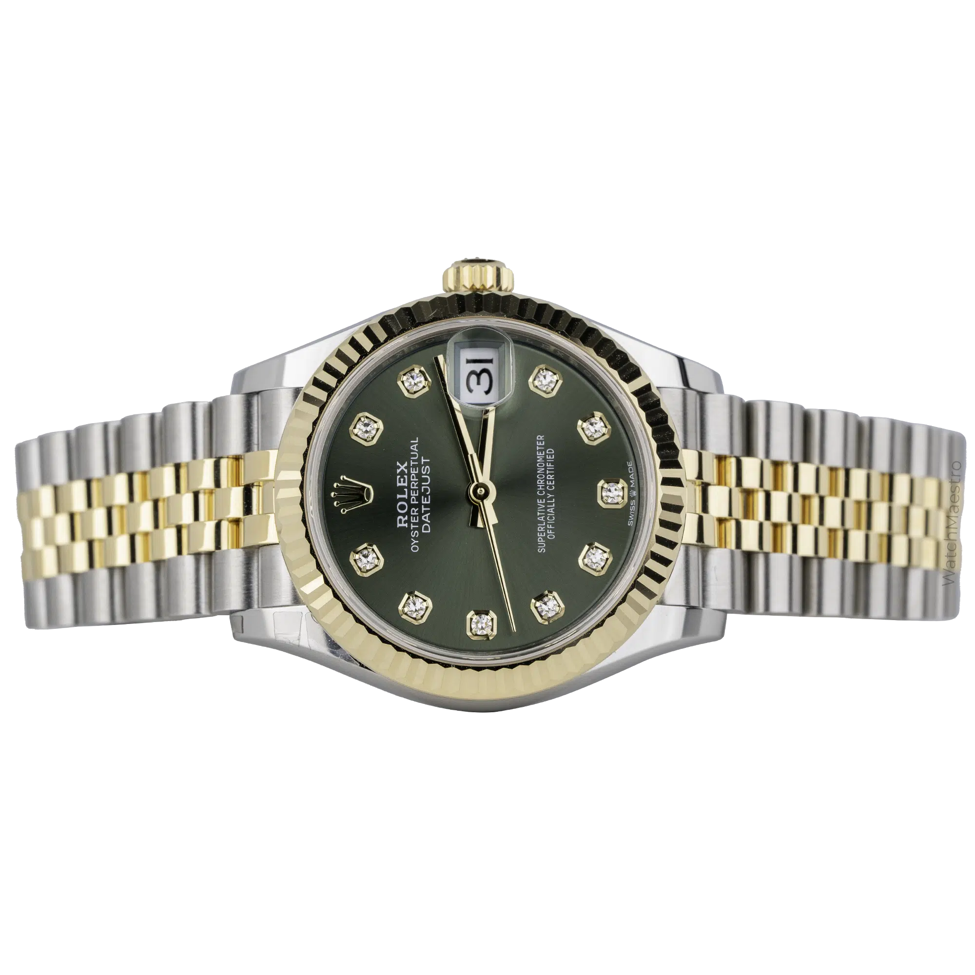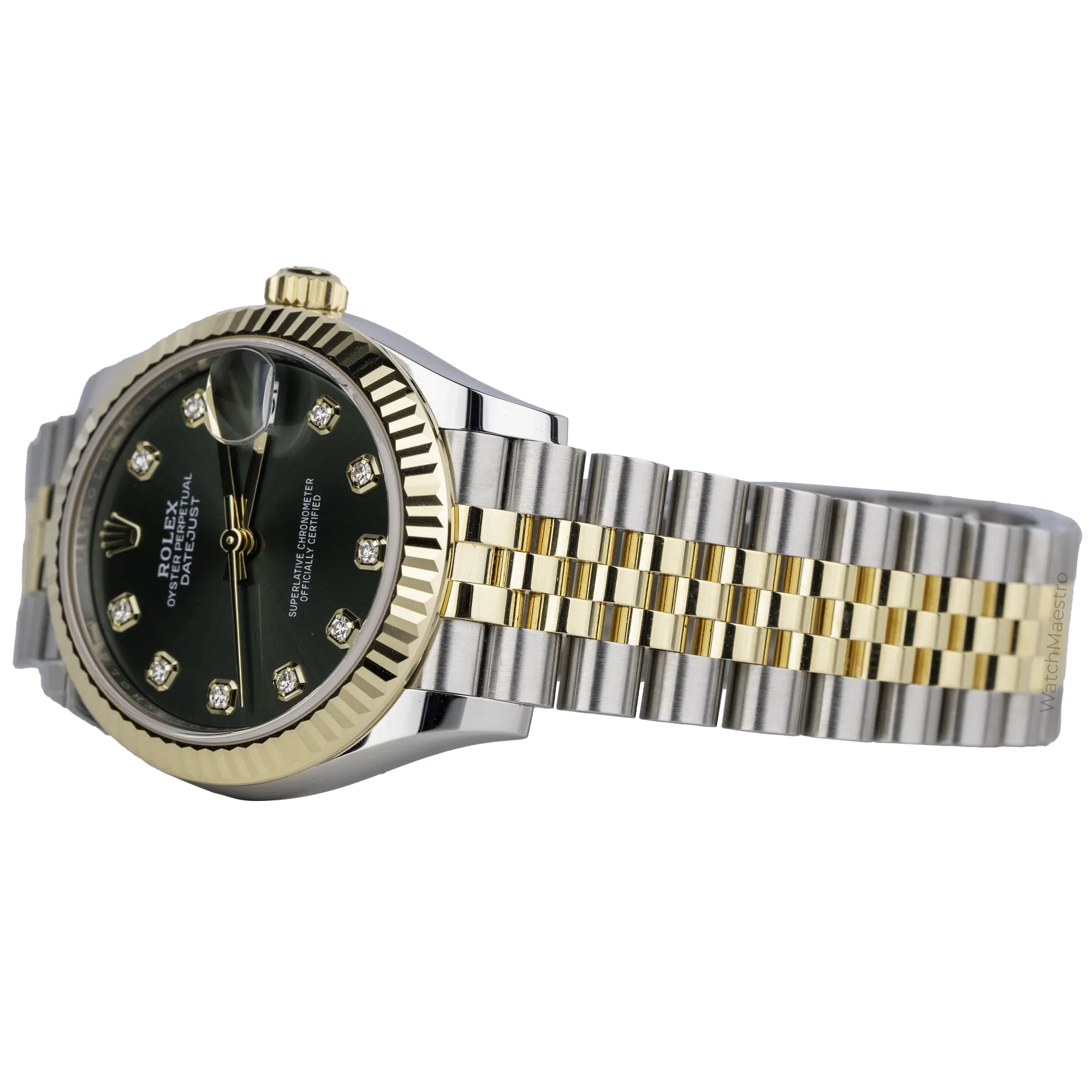 Presenting the Rolex Datejust 31mm in a brand-new condition. It flaunts a mesmerizing Green Dial encrusted with diamond-set hour markers. The sleek hands glide gracefully across the face, while the date window at 3 o’clock ensures both functionality and refinement. Encased in stainless steel, the 31mm watch is paired with a Yellow Gold Fluted Bezel. The striking Two-Tone Jubilee Bracelet, crafted from Yellow Gold and Stainless Steel, perfectly balances the look and appeal of the watch. Acquired in 2024, this Rolex Datejust comes complete with its original box and papers, reassuring you of its authenticity.