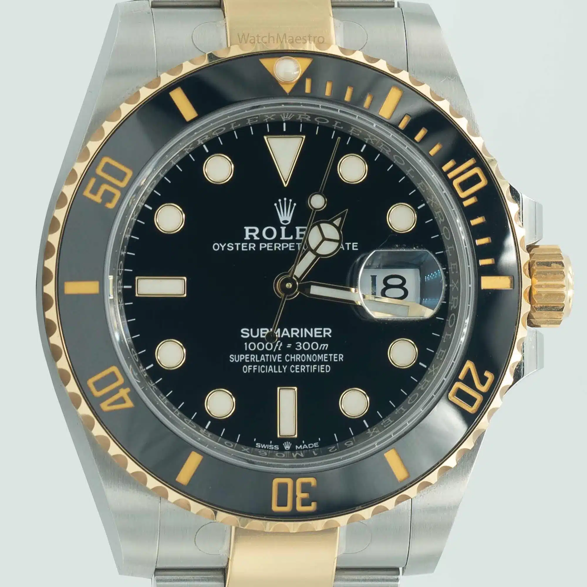 This is a pre-owned Rolex Submariner 41mm. Purchased in 2022, the watch comes complete with box and papers. It features a black dial and a black Cerachrom bezel. The 41mm Oystersteel case sits on a two-tone Oyster bracelet featuring 18ct Yellow Gold and Oystersteel. It is one of the classiest-looking two-tone Submariner models available today.