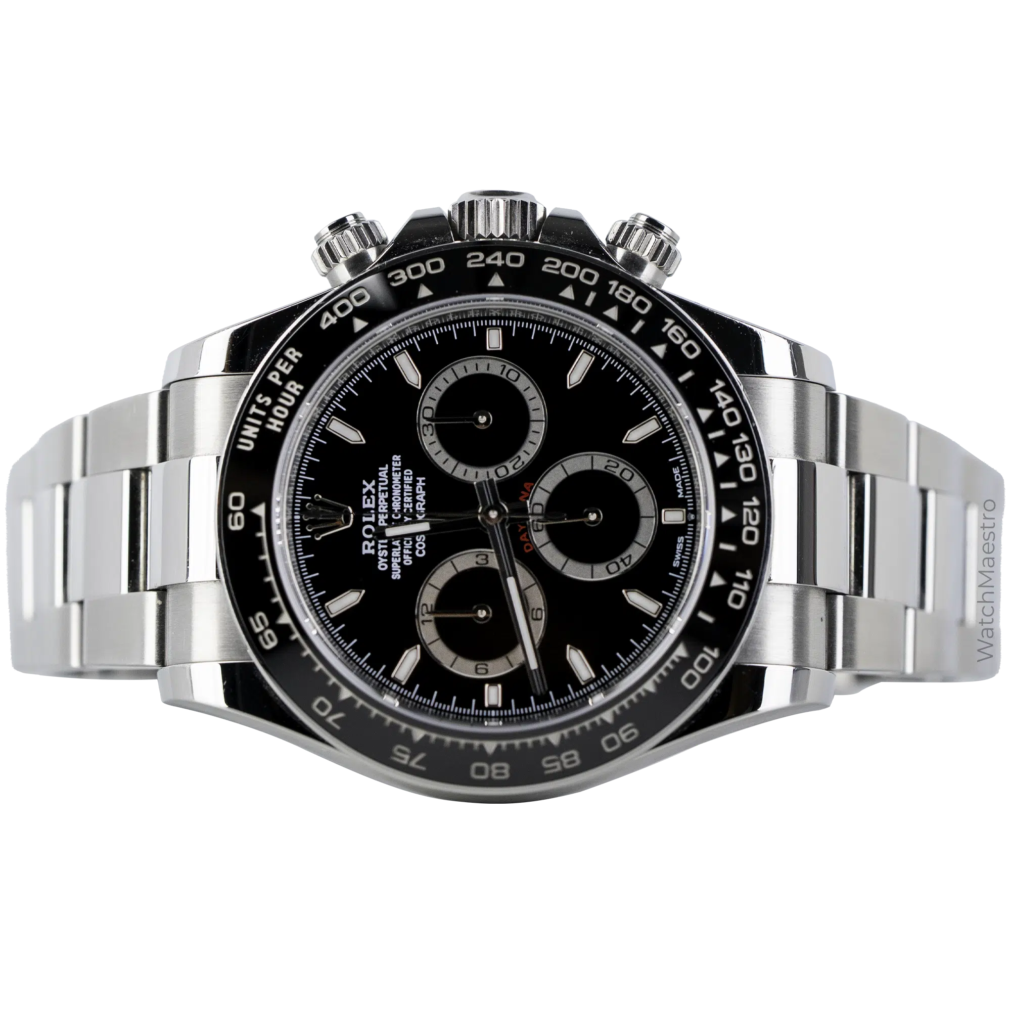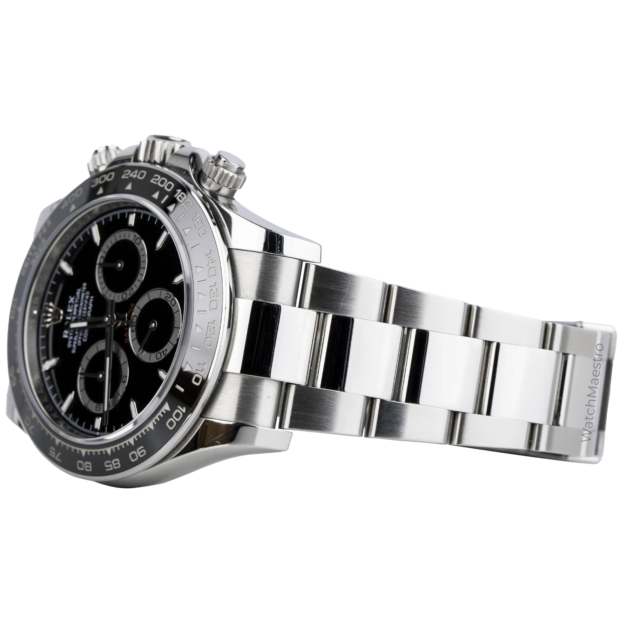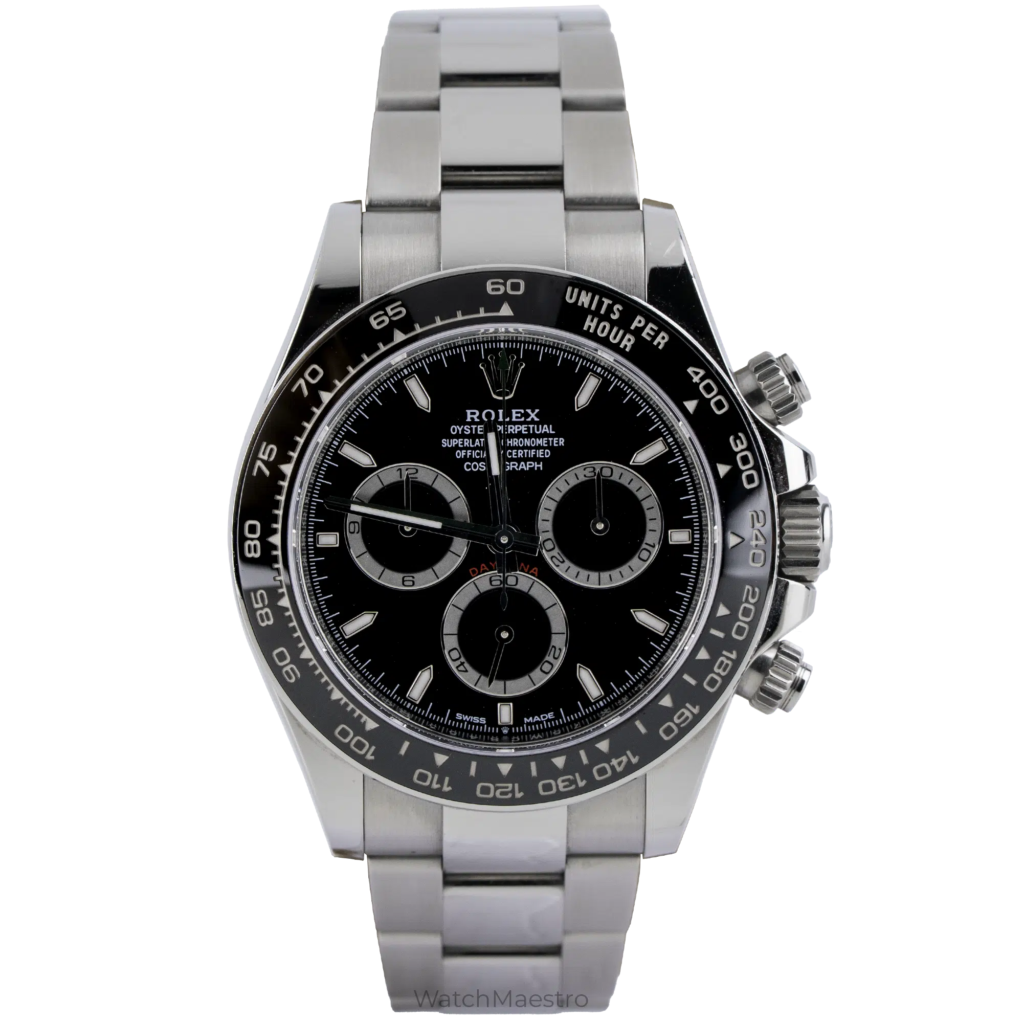 Introducing the legendary Rolex Daytona featuring a 40mm Black Dial. The Ceramic Bezel, known for its durability and resistance to scratching, frames the dial with a sporty yet refined touch. Encased in Stainless Steel, the Daytona boasts durability and understated luxury. The Oyster Bracelet ensures a seamless fit for every occasion. Acquired in 2024, this pre-owned Rolex Daytona arrives with its original box and papers. Even though pre-owned, the watch is still in very good condition and the manufacturer’s warranty is intact as well.