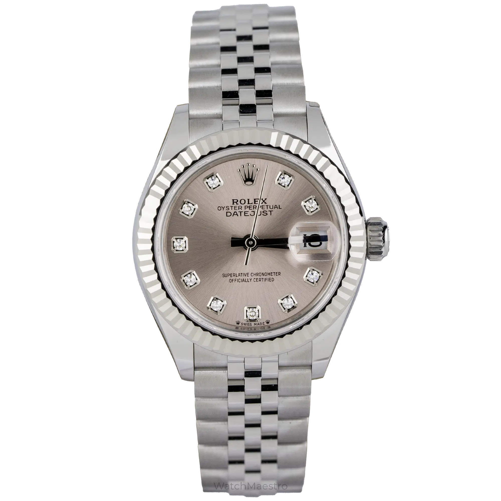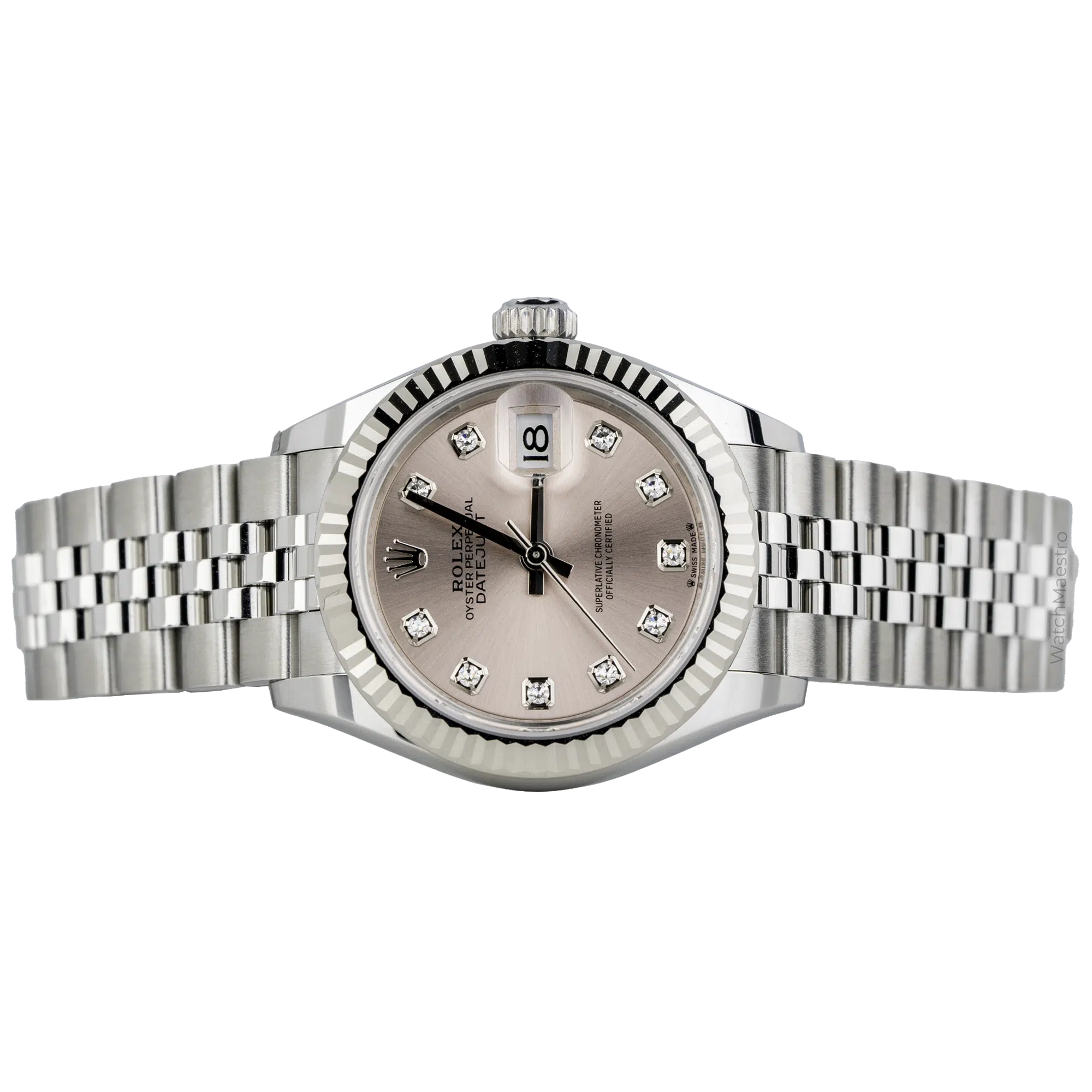 Introducing the Rolex Lady-Datejust 28 in brand-new condition. At the heart of this piece is a Pink dial adorned with Diamond-set hour markers. Encased in stainless steel, the 28mm watch is further complemented by a White Gold Fluted Bezel that enhances the aesthetics of the watch. It features a Jubilee bracelet, which sits very comfortably on the wrist and looks more stylish than its Oyster counterpart. Originally purchased in 2025, this Lady-Datejust comes complete with the original box and papers. With the 5 years of the manufacturer’s warranty still in effect, you can enjoy the peace of mind of knowing that your investment is protected.
