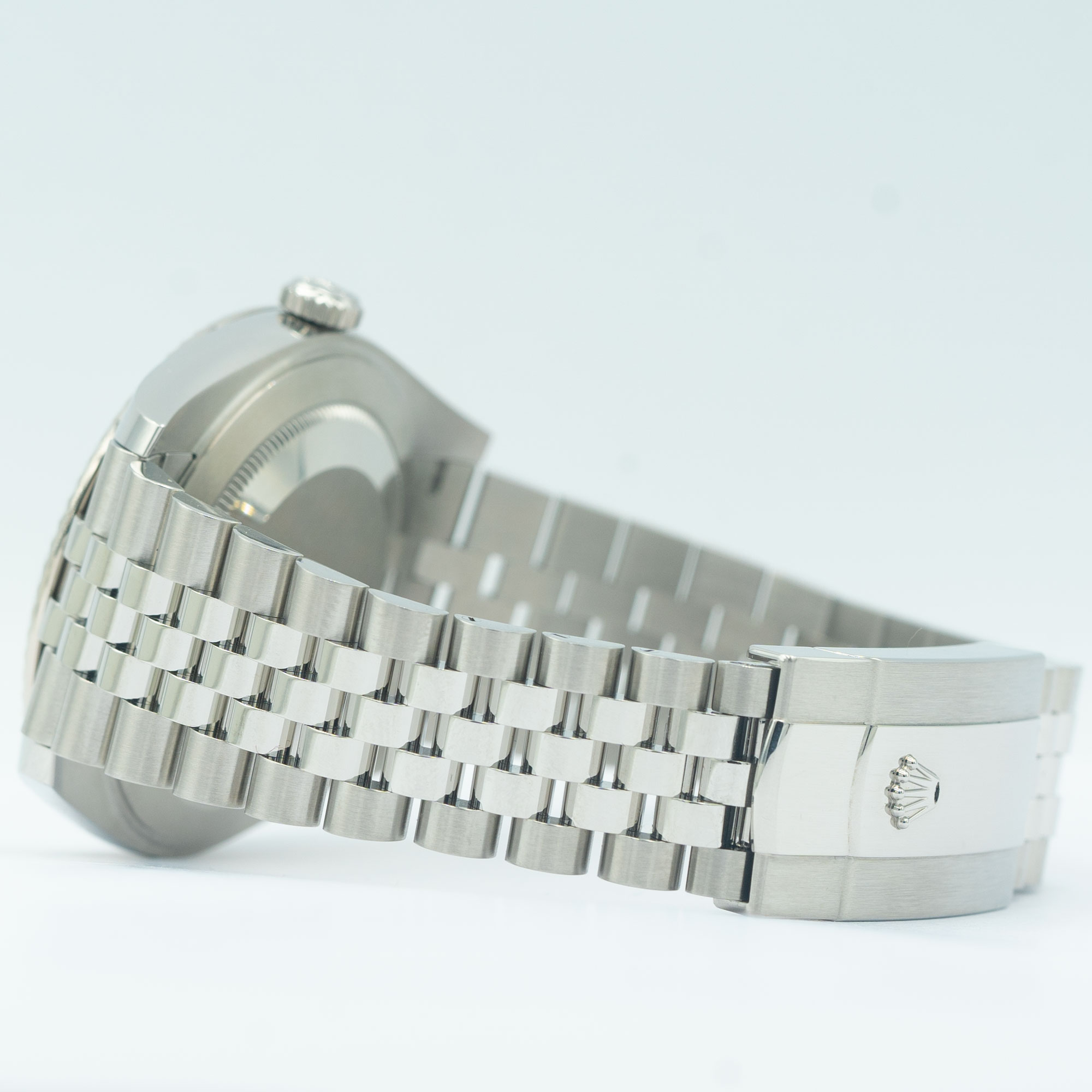 This is a brand-new Rolex Datejust featuring the popular 41mm Mint Green dial. Purchased in 2023, the watch comes complete with box and papers. Thanks to the White Gold Fluted Bezel and the Jubilee Bracelet, the watch really stands out. It is one of the most popular combinations in the Datejust lineup.