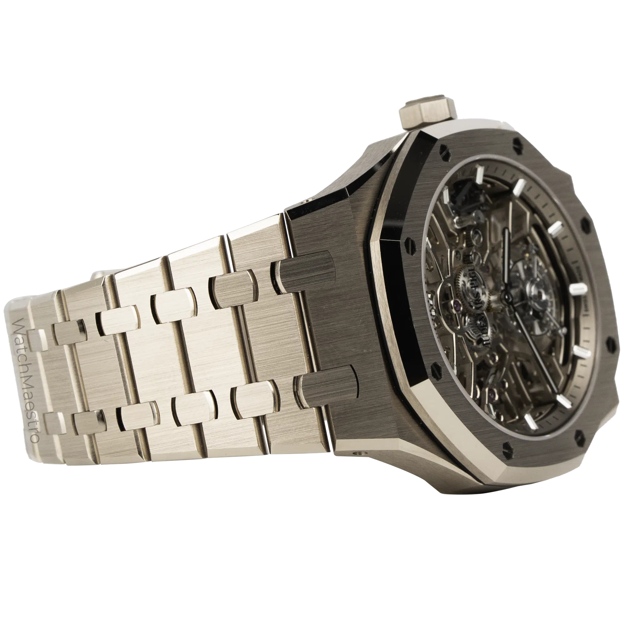 The Sand Gold variant is an ultra-exclusive model and showcases Audemars Piguet’s commitment to pushing boundaries in both material innovation and technical sophistication. A true collector’s piece, this version of the AP Royal Oak Openworked is still quite limited in the market. So, get your hands on one while you can!