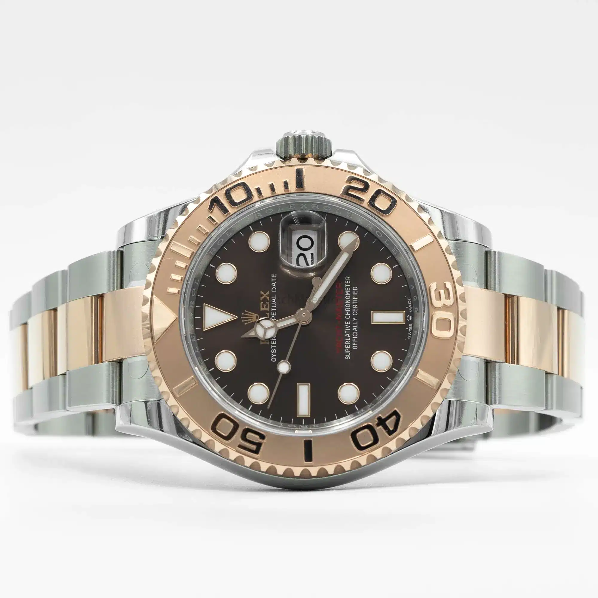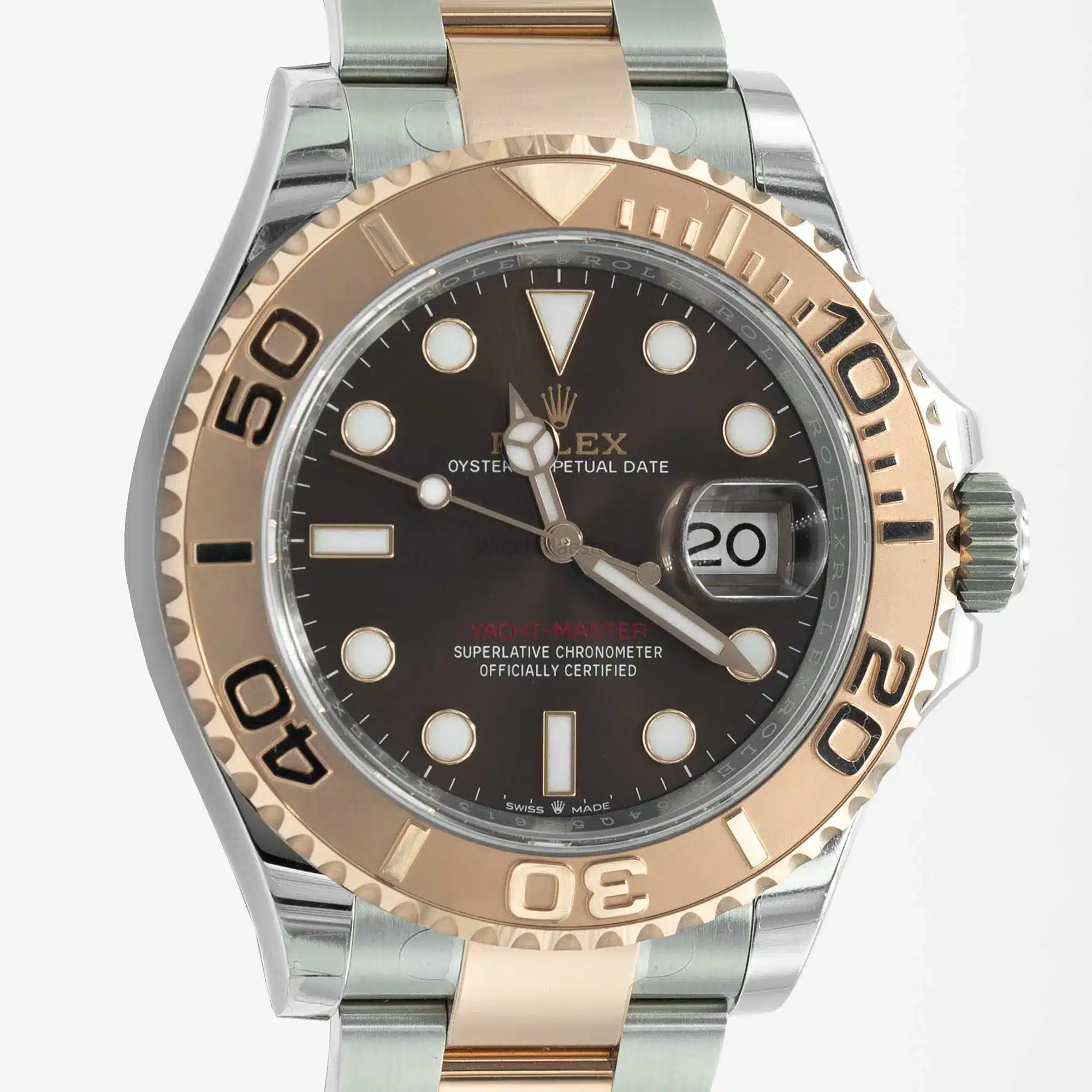 This is a brand-new Rolex Yacht-Master 40mm featuring a two-tone Oyster bracelet. Purchased in 2023, the watch comes complete with box and papers. The case of the watch is crafted out of stainless steel whereas the bezel is made out of 18ct rose gold. The bracelet makes the watch look class-apart, thanks to the combination of steel and rose gold. The timepiece features a 40mm Chocolate dial and the combination makes it one of the most desirable Rolex models out there.