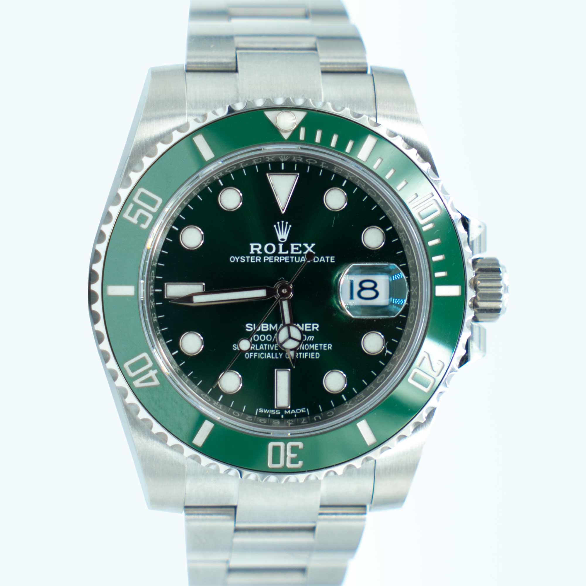 Immerse yourself in the iconic appeal of this Rolex Submariner Hulk reference 116610LV. An unworn 40mm masterpiece that offers the distinctive Green Dial. Set within a resilient Stainless Steel Case, it pays homage to the Submariner’s legacy and distinct character. The unidirectional rotating bezel in matching green adds a burst of color and functionality to this classic timepiece. Originally purchased in 2020, this Rolex Hulk arrives with its original box and papers. The watch has already proven to be a great investment and will always be as it has been discontinued. Add this piece to your collection today!