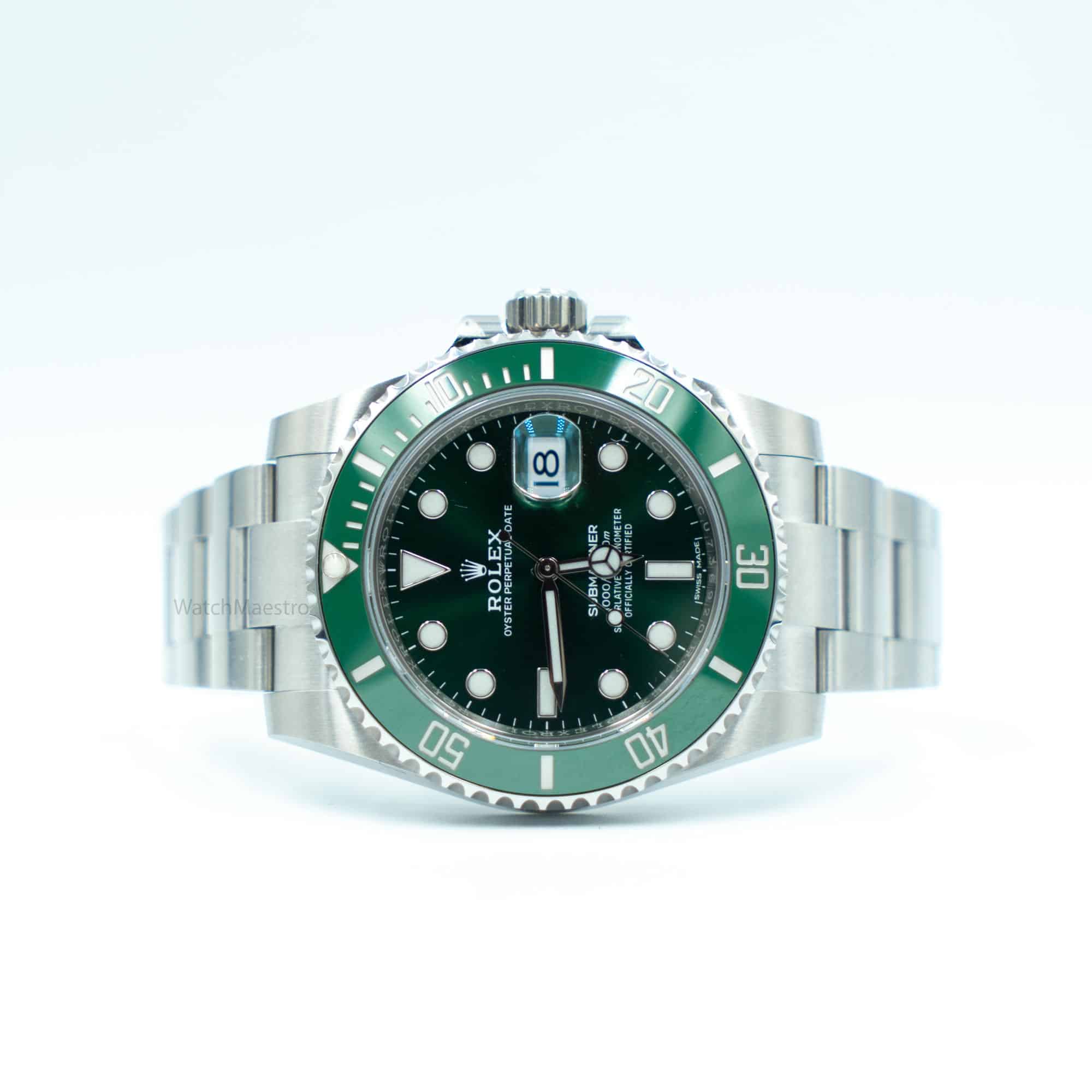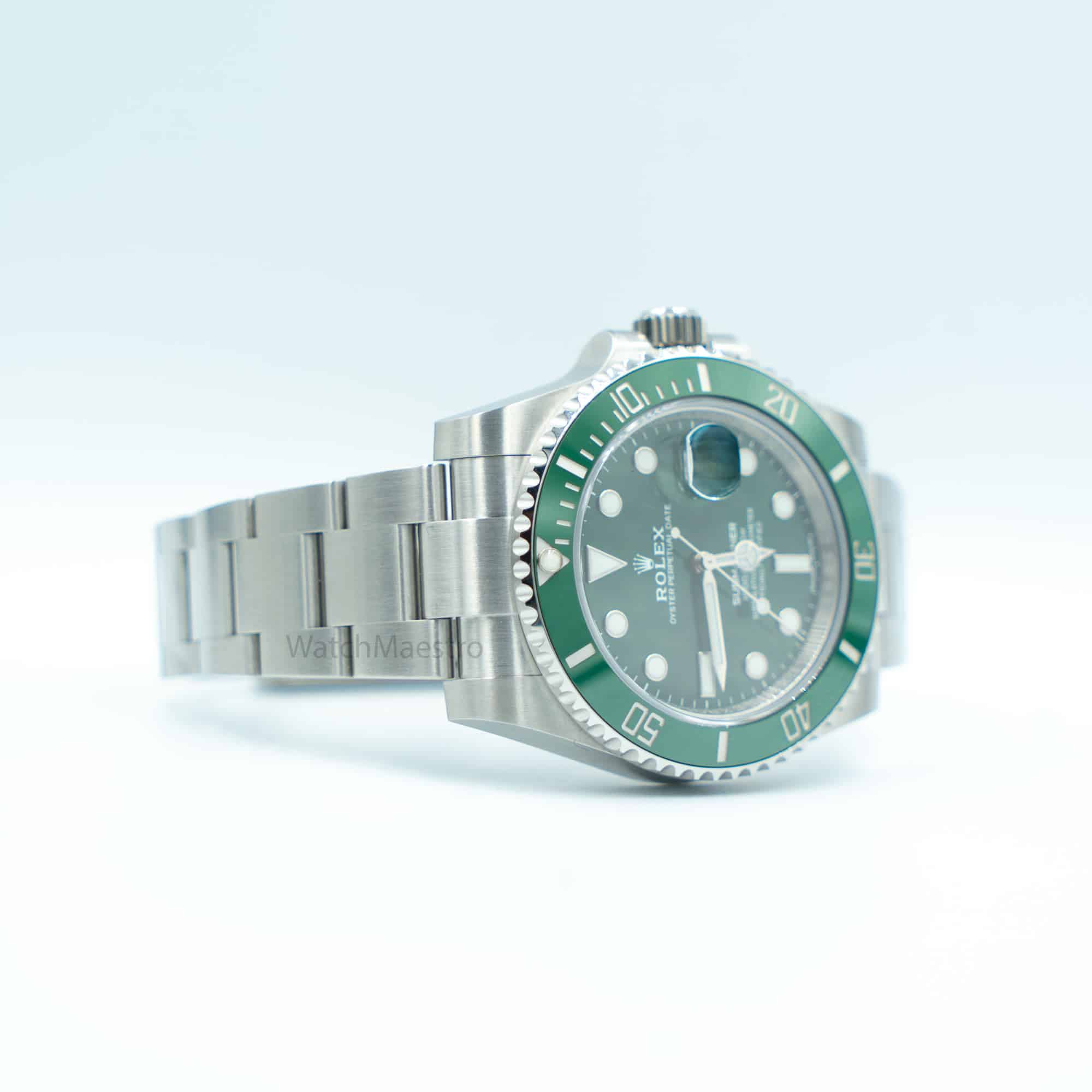 Rolex Submariner 116610LV popularly referred to as the Rolex Hulk, is an immensely popular timepiece. This is one of the discontinued Rolex watches, but it has always been a fan favorite. It features the caliber 3135 movement and offers a power reserve of up to 48 hours. The divers watch has a water resistance rating of 300 meters.