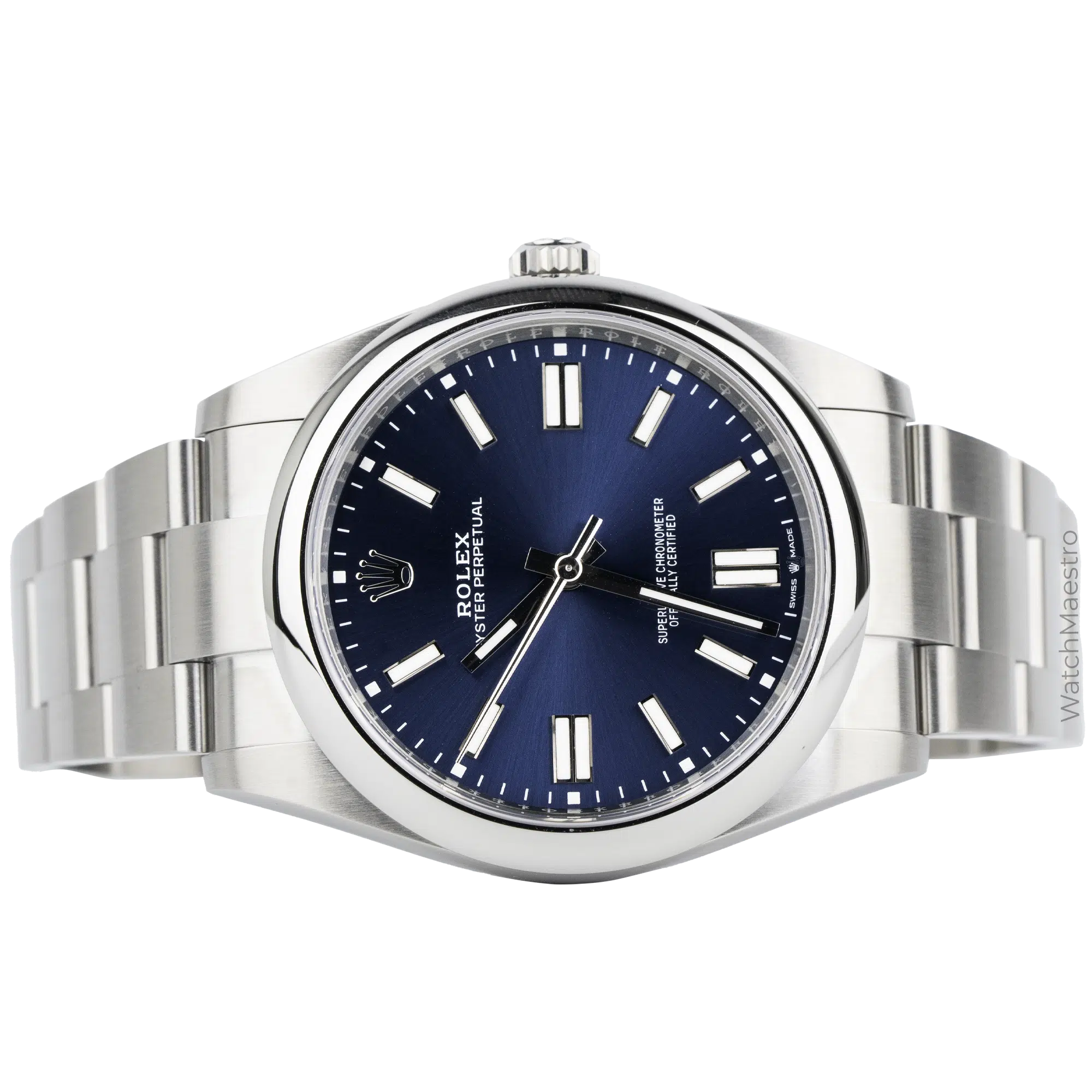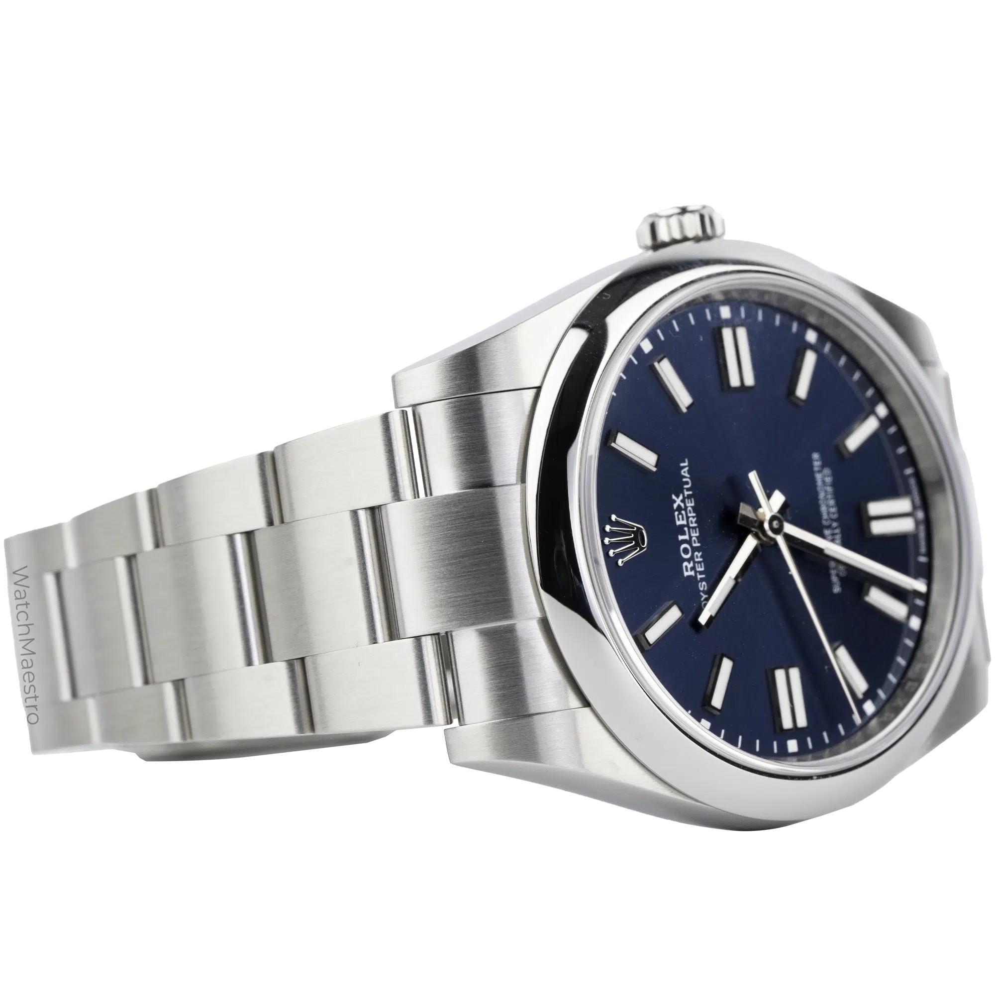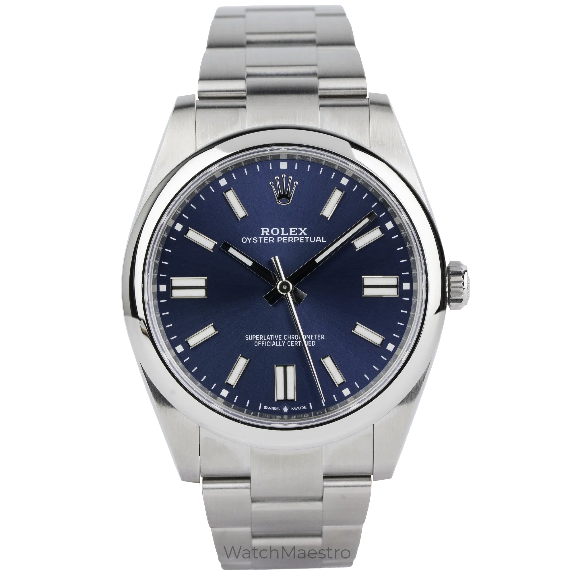 This Rolex Oyster Perpetual 41 is a timeless icon. Sometimes simplicity brings the most out of things and what could be a better example of that statement than this Oyster Perpetual? With a clean 41mm Blue dial, this Rolex watch is made for people who appreciate the finer things in life. Constructed out of stainless steel, this watch can withstand daily wear very well. Whether you are attending a business meeting or exploring the great outdoors, this timepiece will accompany you with unwavering reliability. Purchased in 2024, the watch is brand-new and it comes complete with its original box along with all the paperwork. The watch is still covered under the 5-year Rolex warranty.