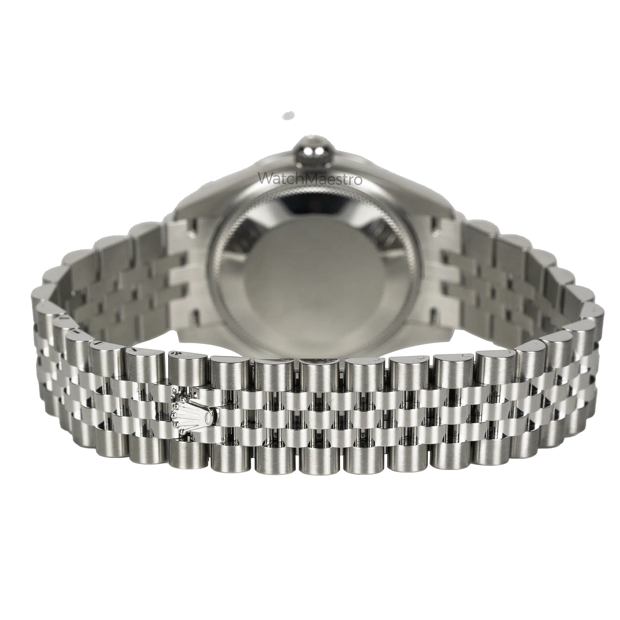 Presenting the Rolex Datejust 31mm flaunting a mesmerizing Blue Dial with Roman Numerals on it. It is a brand-new watch with a 2024 purchase date, which makes it highly sought after. Being a Datejust model, this one gets a date window at 3 o’clock ensuring both functionality and refinement. Encased in stainless steel, the 31mm watch is paired with a White Gold Fluted Bezel. The striking Jubilee Bracelet, perfectly balances the look and appeal of the watch and sits very comfortably on the wrist. It is a very subtle yet unique combination.