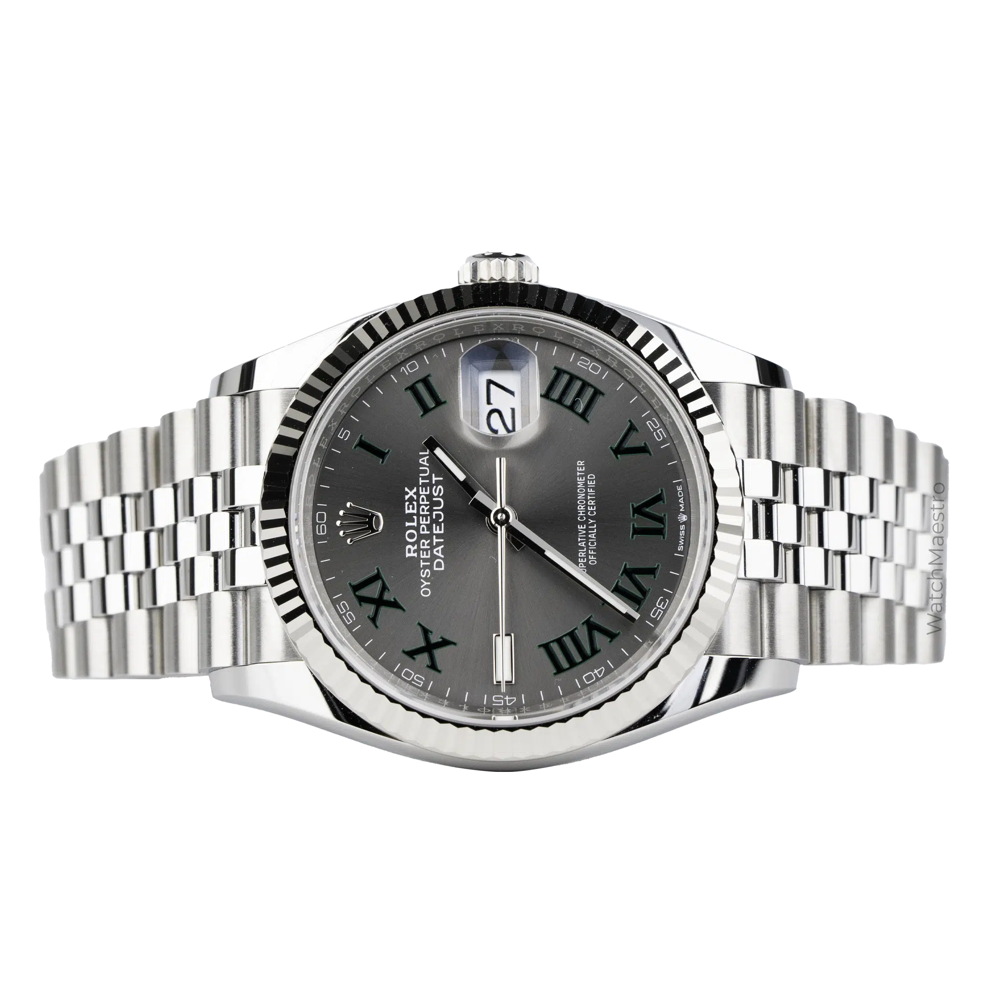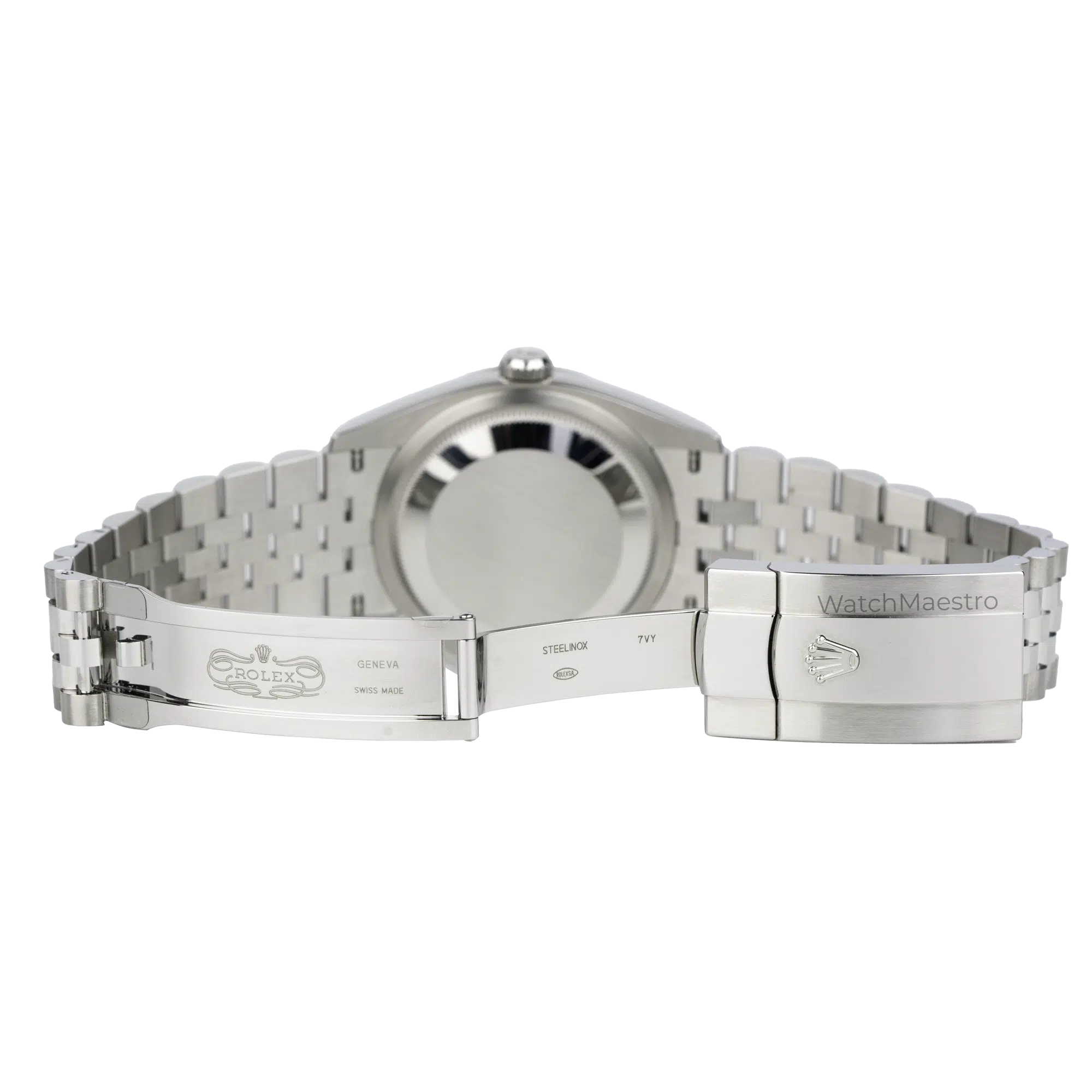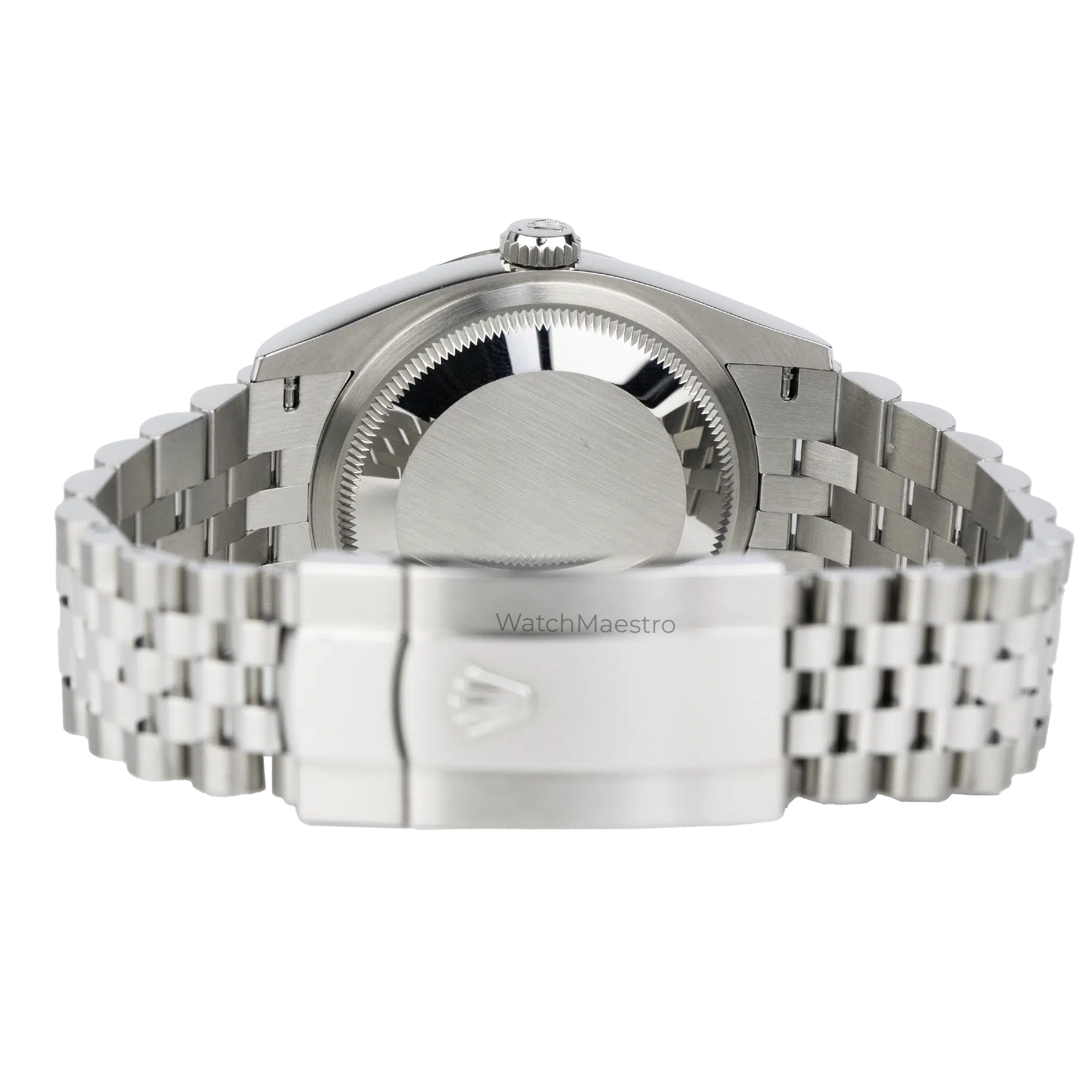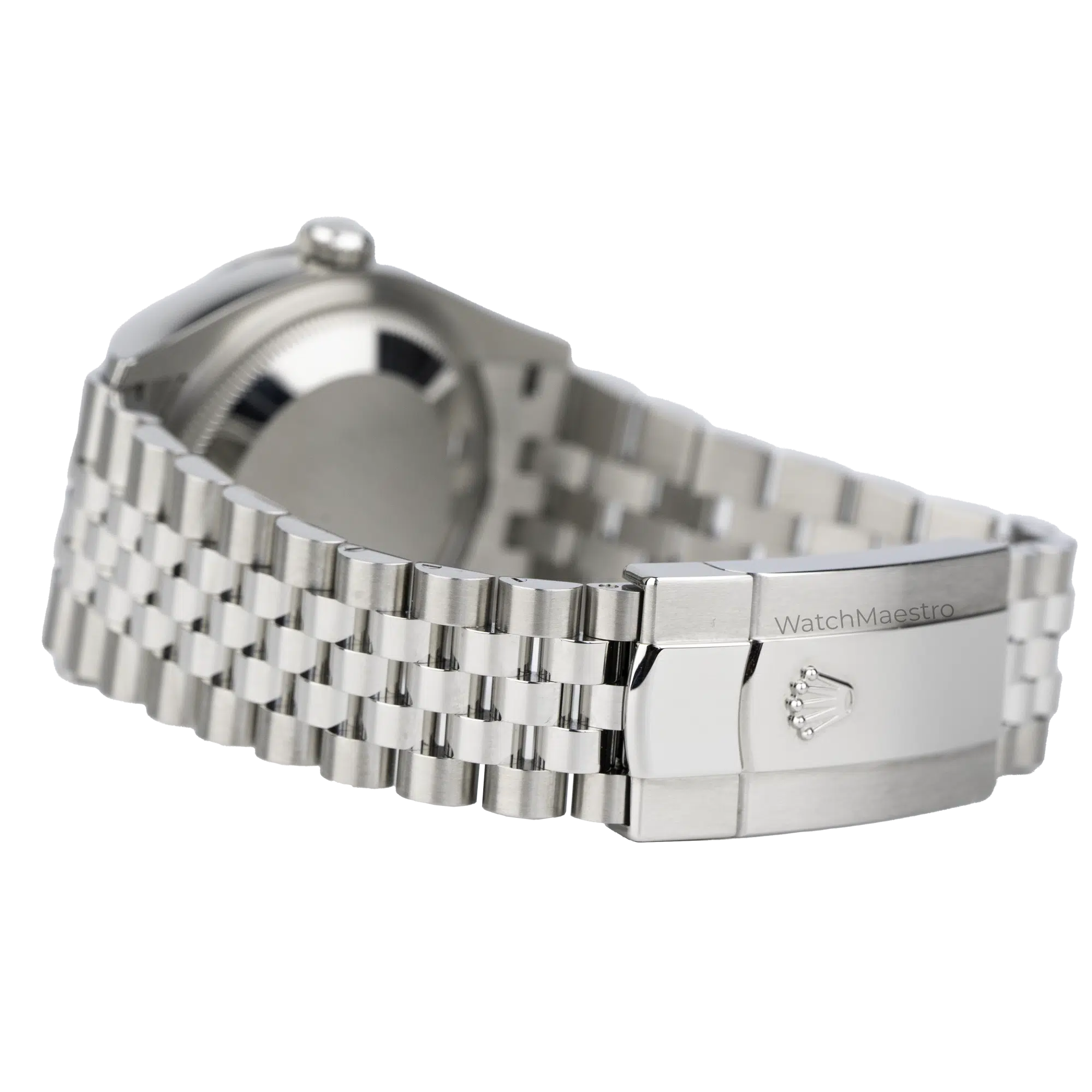 On popular demand, WatchMaestro has managed to source the Rolex Datejust 36mm featuring the sought-after Wimbledon dial. This exquisite timepiece boasts a White Gold Fluted Bezel and its case and bracelet are crafted from durable Stainless Steel. Purchased in 2024, this brand-new Datejust arrives complete with its original box and papers, still sheltered under the 5-year Rolex warranty. Its iconic Jubilee Bracelet makes sure the watch looks classy and sits comfortably on the wrist.