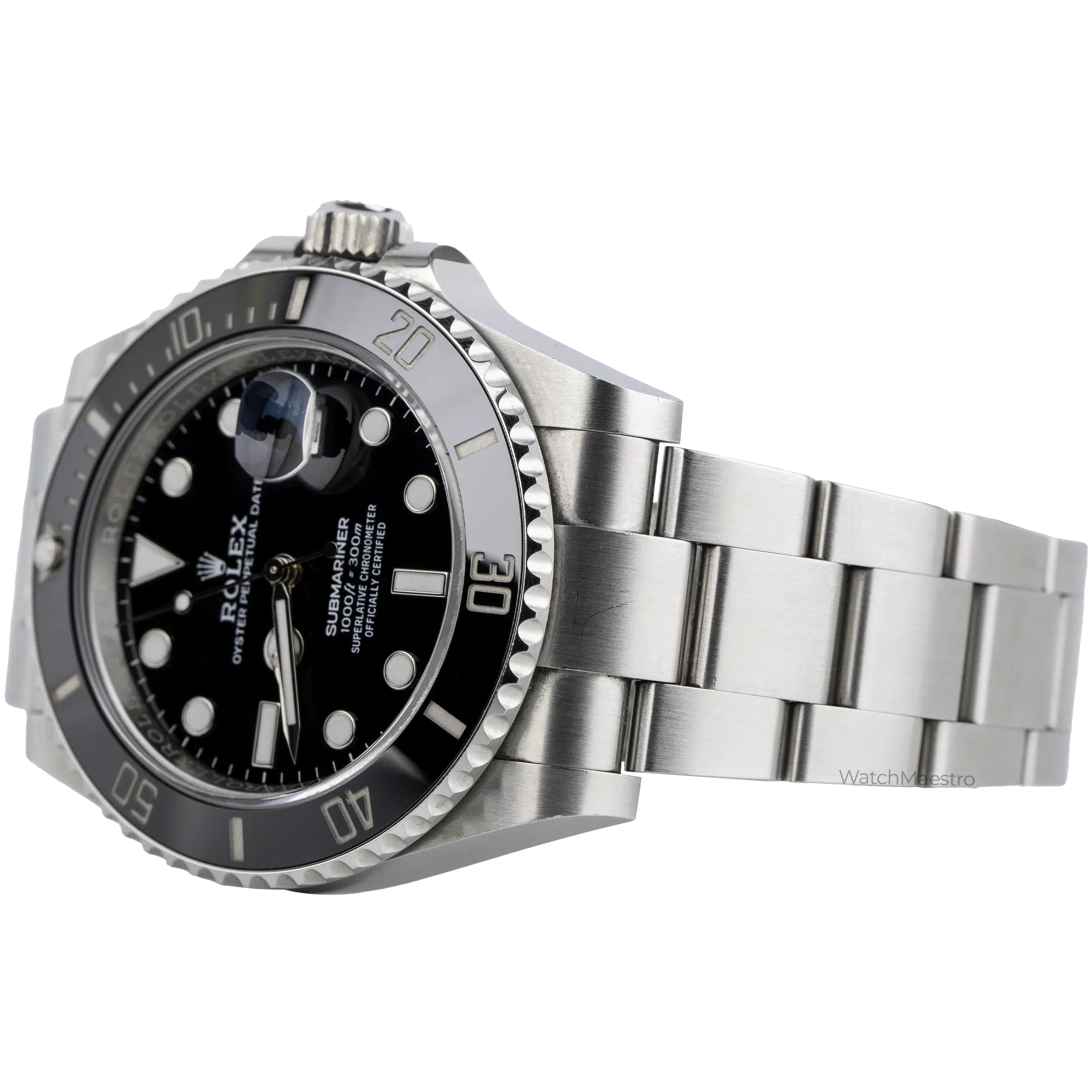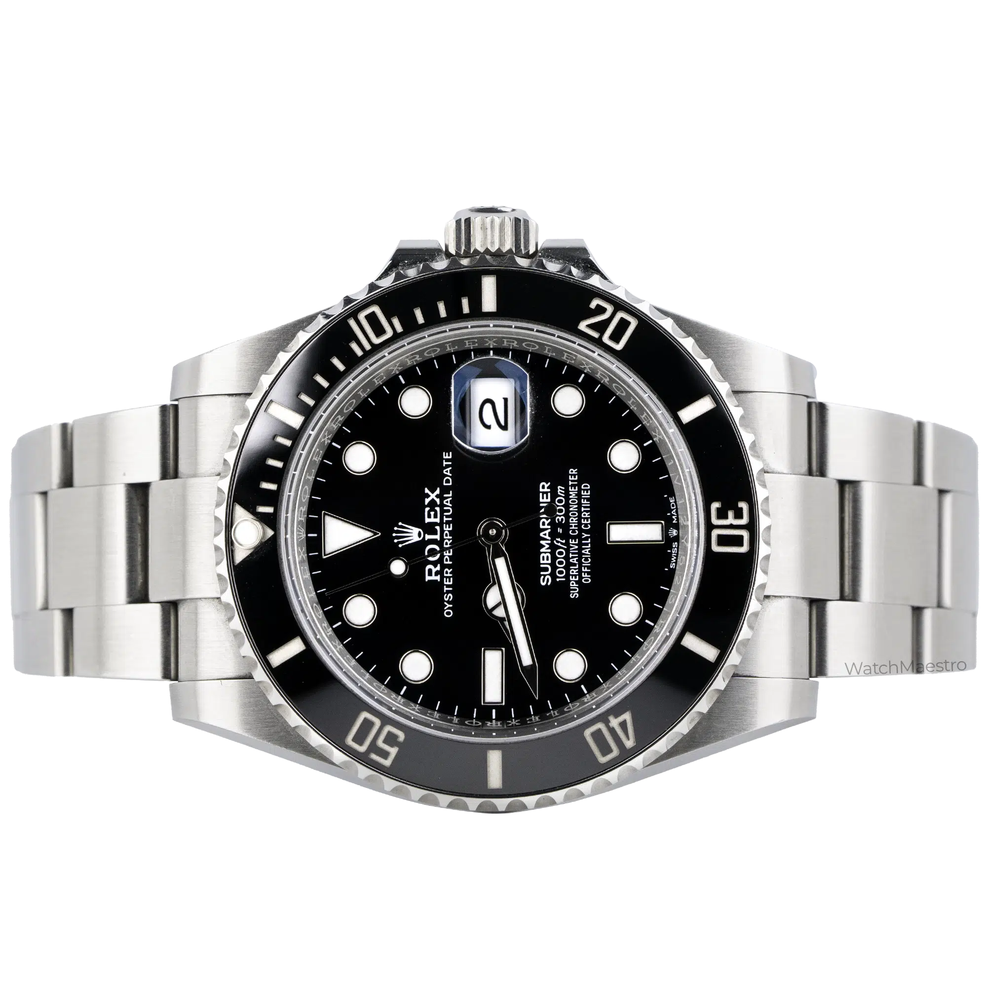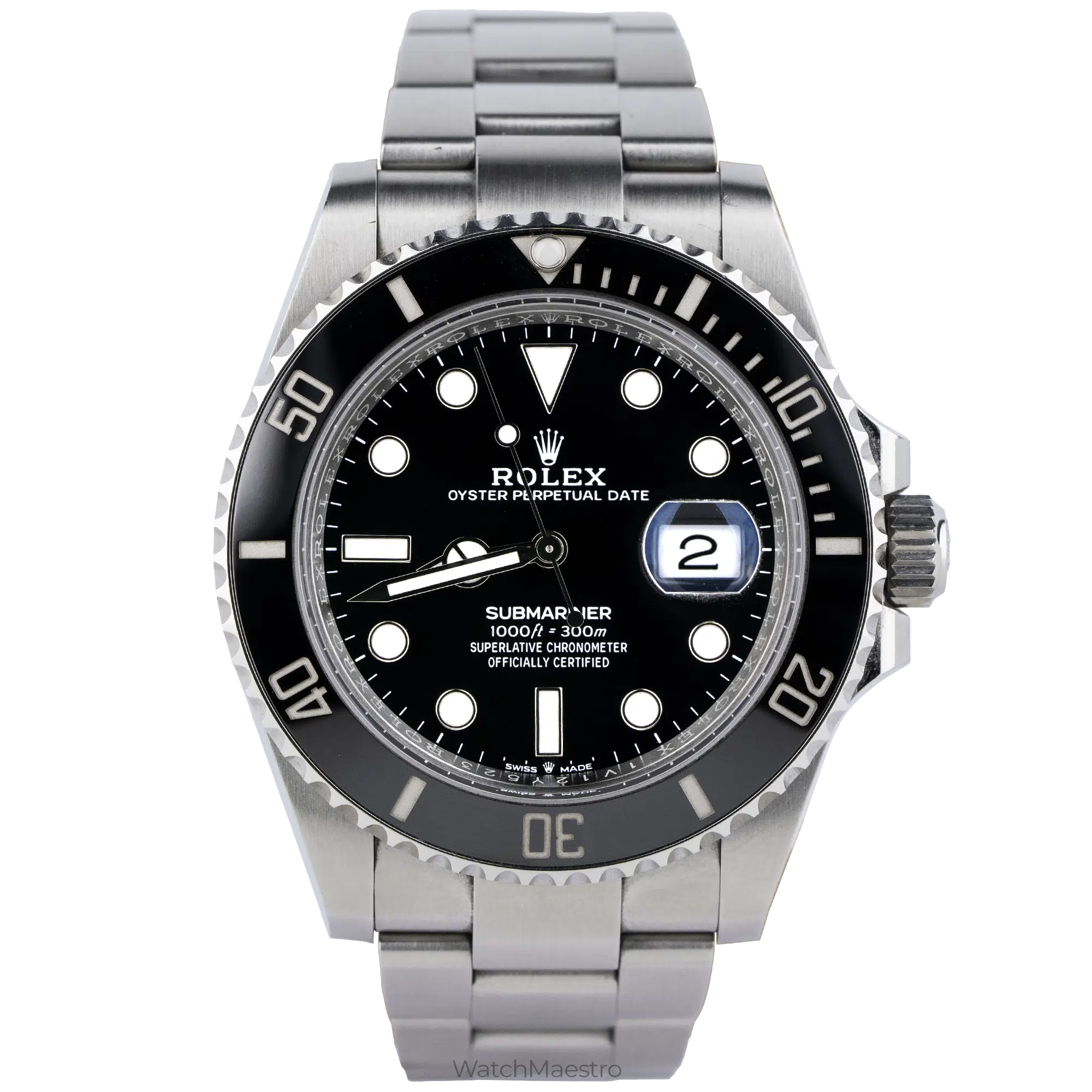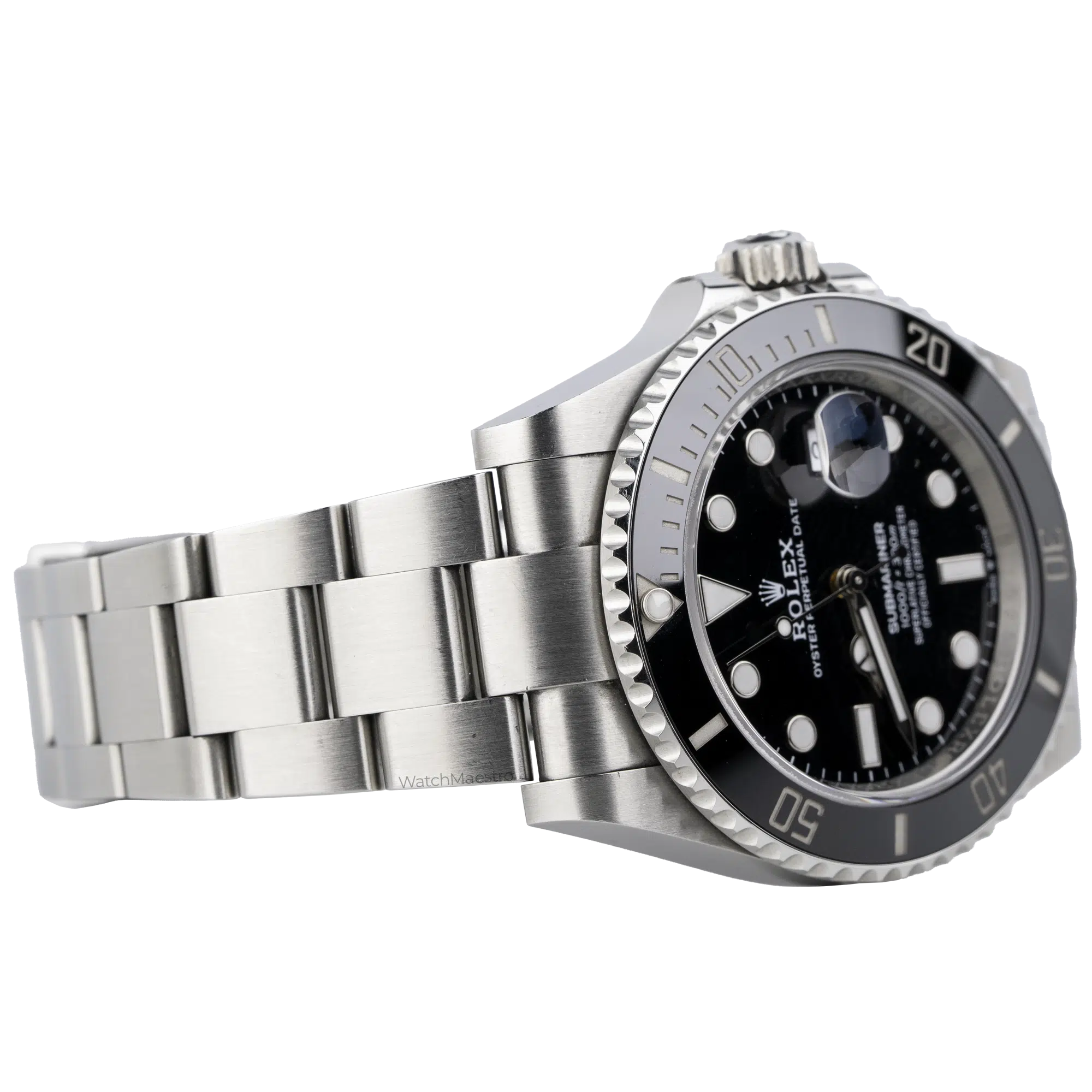 Rolex Submariner Date reference 126610LN is powered by the Calibre 3235 movement offering a power reserve of up to approximately 70 hours. The watch is rated to be waterproof for up to 300 meters. It features a unidirectional rotatable bezel and a matte-finish stainless steel Oyster bracelet.