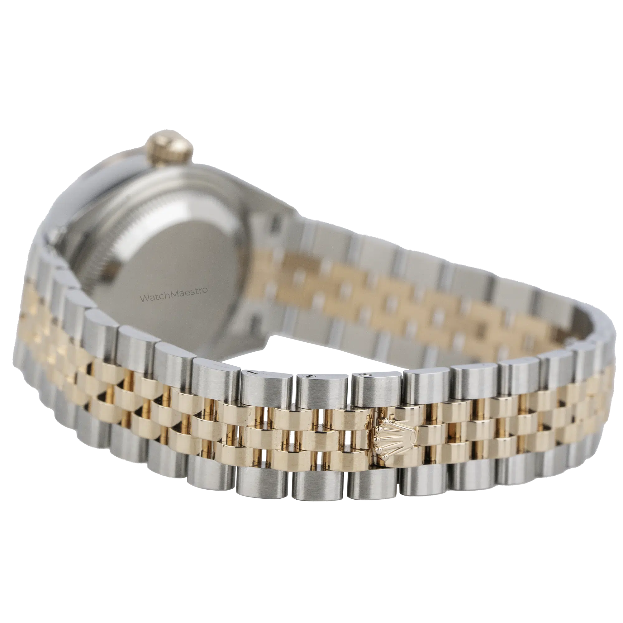 Presenting the Rolex Datejust 28mm in a brand-new condition. It flaunts a mesmerizing Green Dial encrusted with diamond-set hour markers. The sleek hands glide gracefully across the face, while the date window at 3 o’clock ensures both functionality and refinement. Encased in stainless steel, the 28mm timepiece is paired with a Rose Gold Fluted Bezel. The striking Two-Tone Jubilee Bracelet, crafted from Rose Gold and Stainless Steel, perfectly balances the look and appeal of the watch. Acquired in 2024, this Rolex Datejust comes complete with its original box and papers, reassuring you of its authenticity.