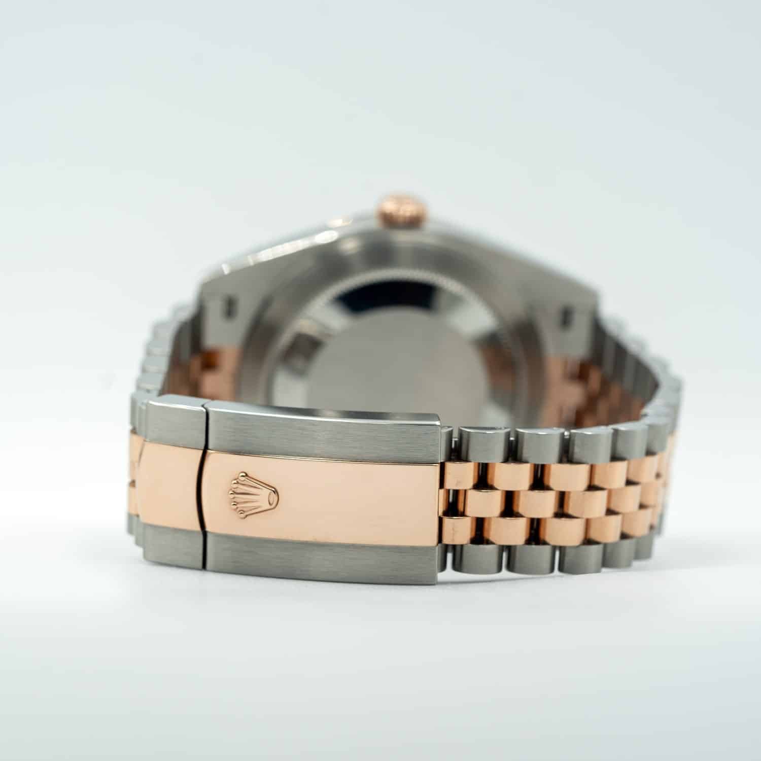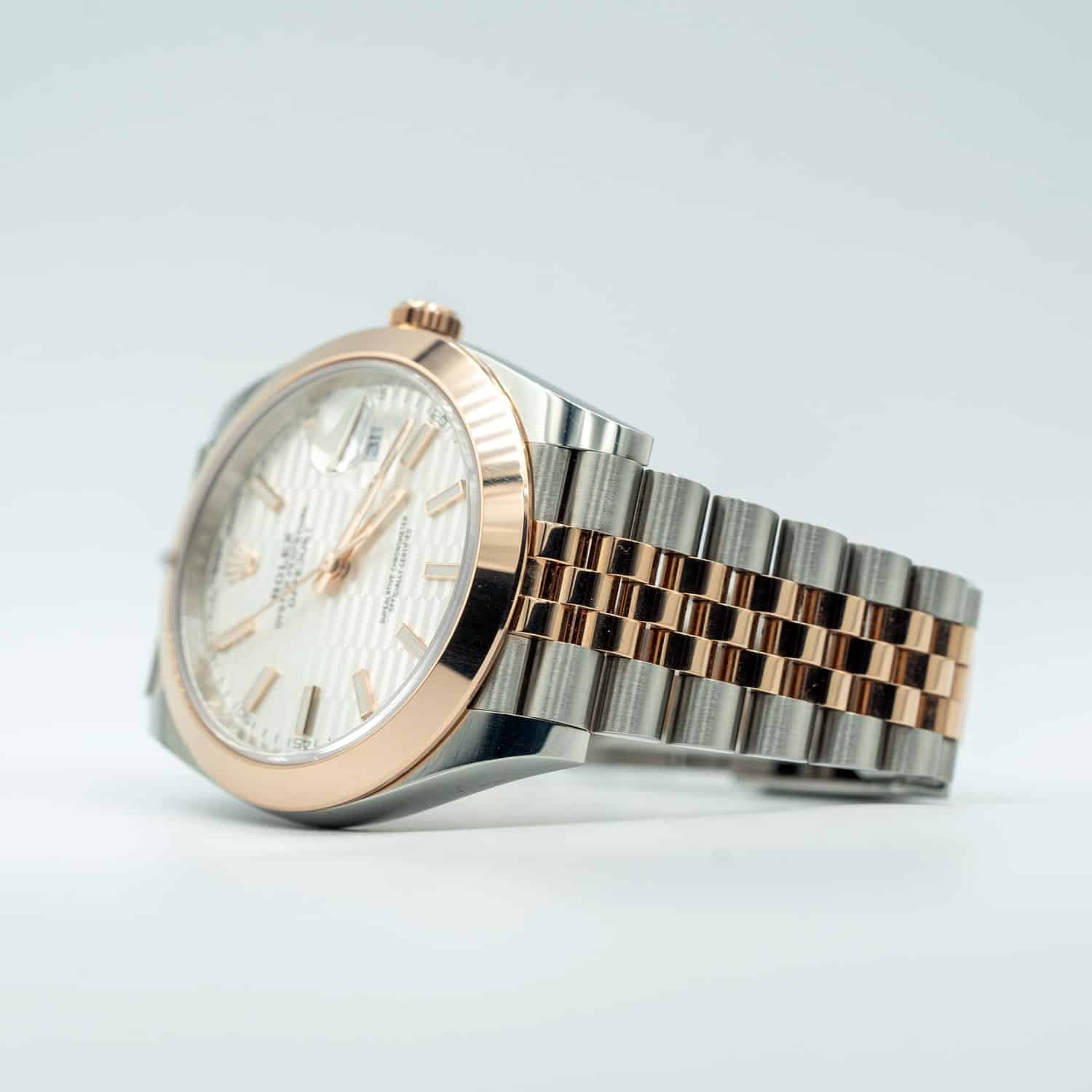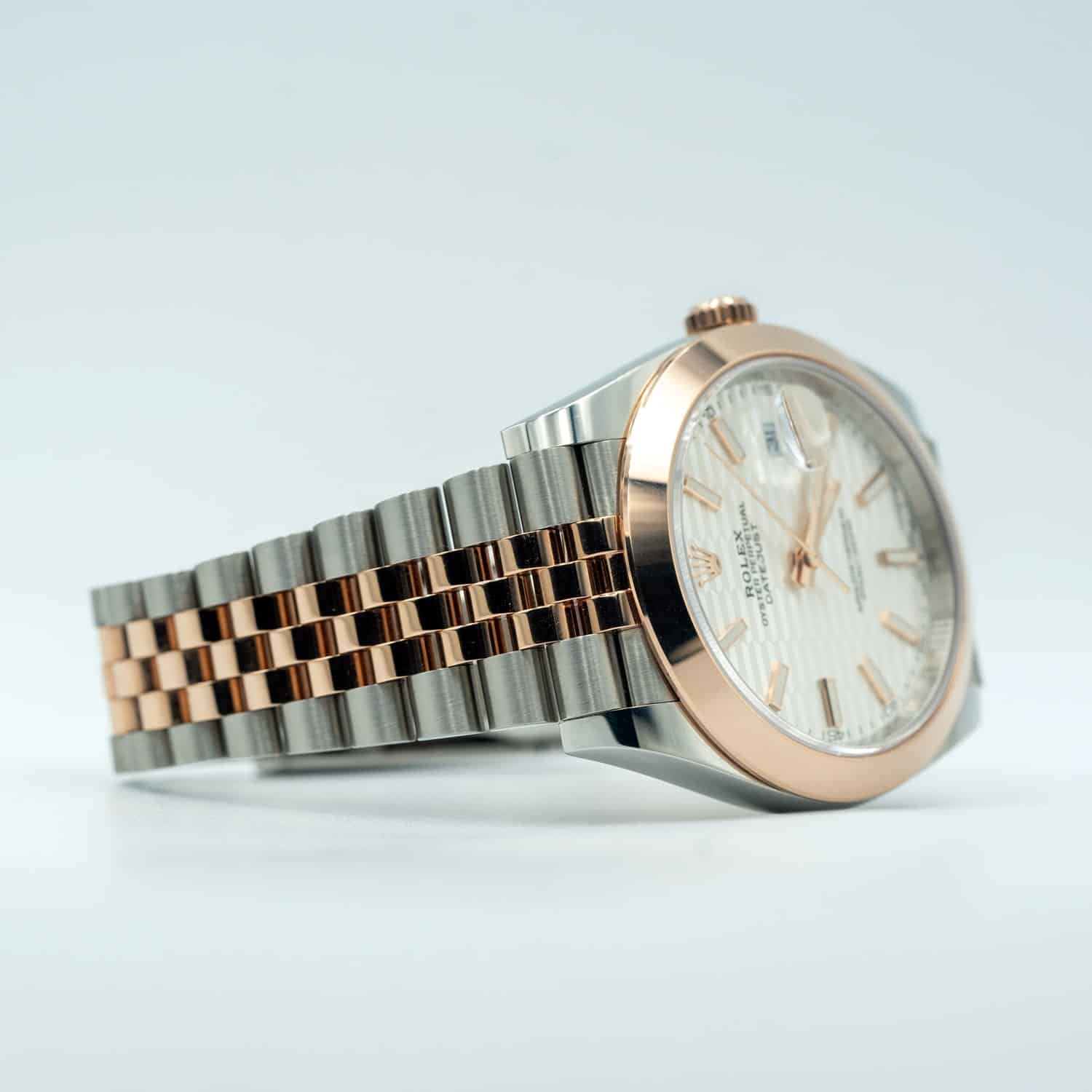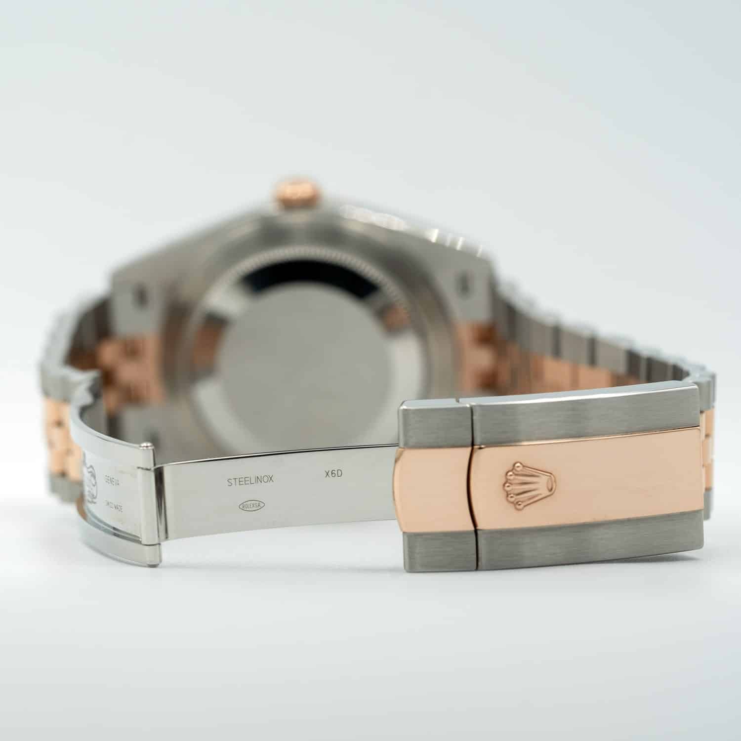 Rolex Datejust 41 gets a dressy look with the Jubilee bracelet. This one in particular, comes with a two-tone bracelet crafted out of rose gold and stainless steel. It is one of the most elegant-looking Rolex watches one can buy today.
