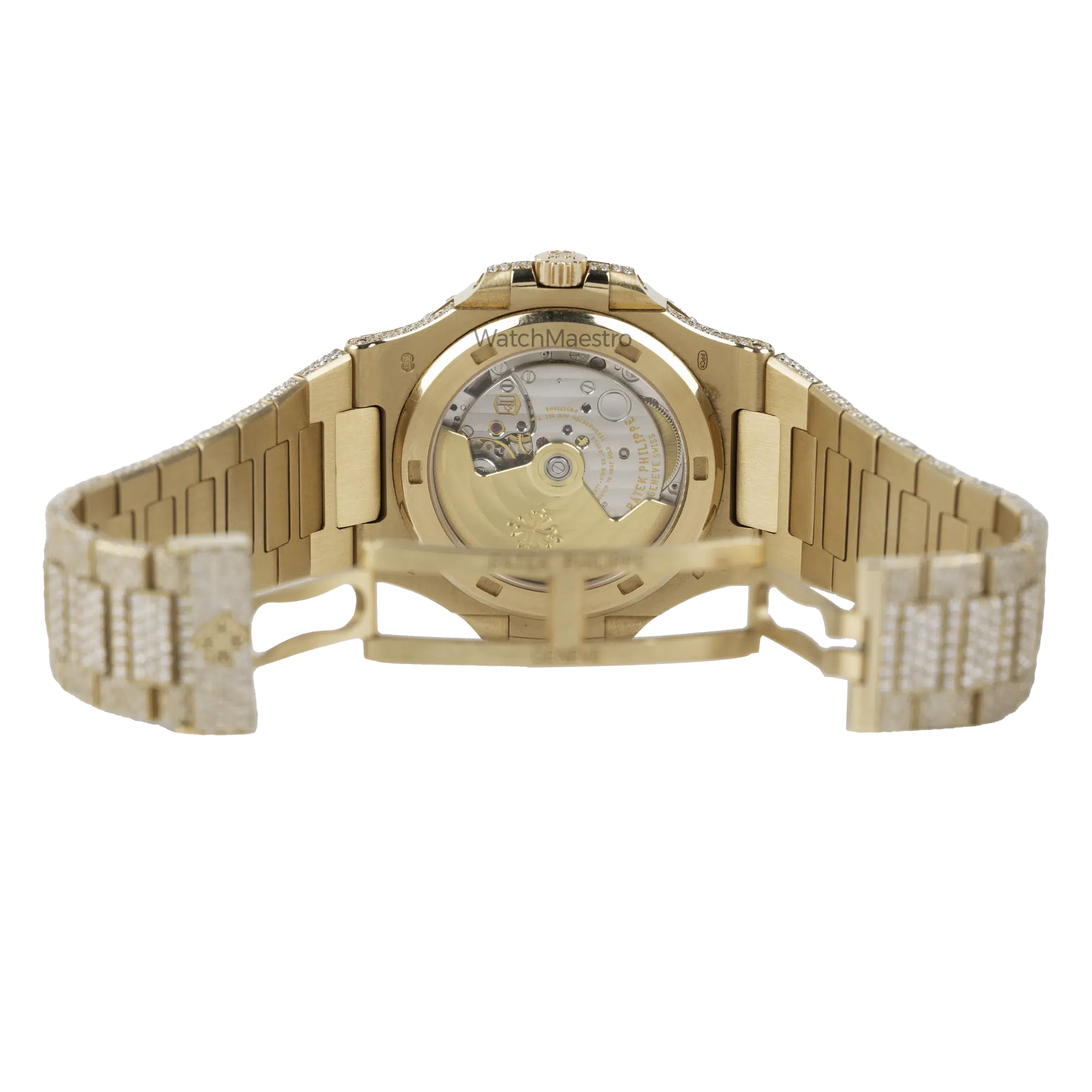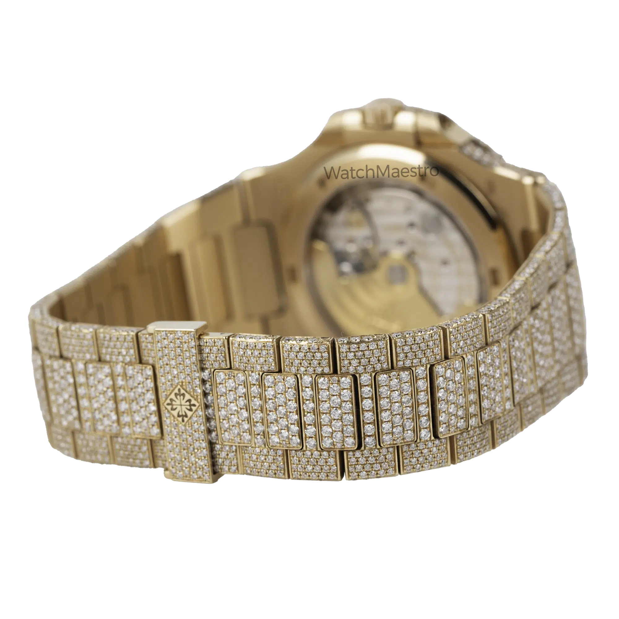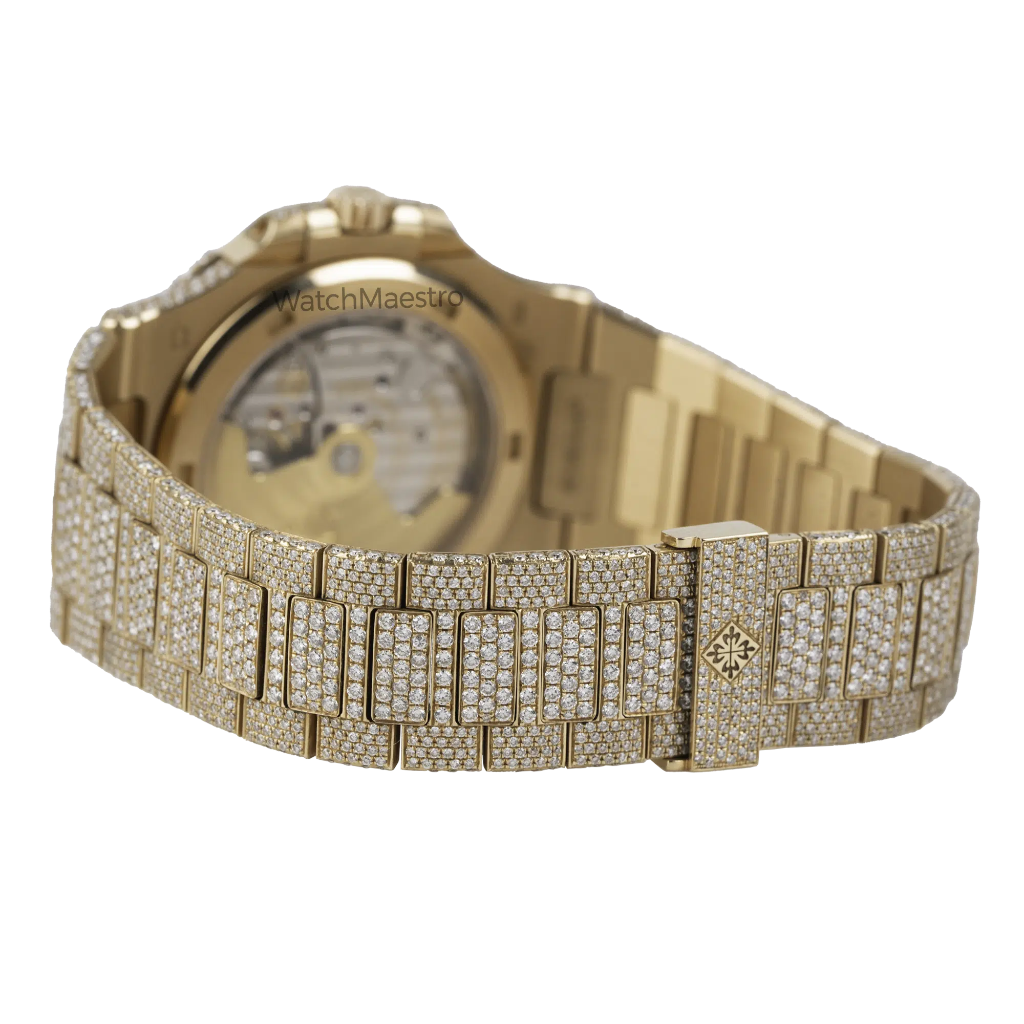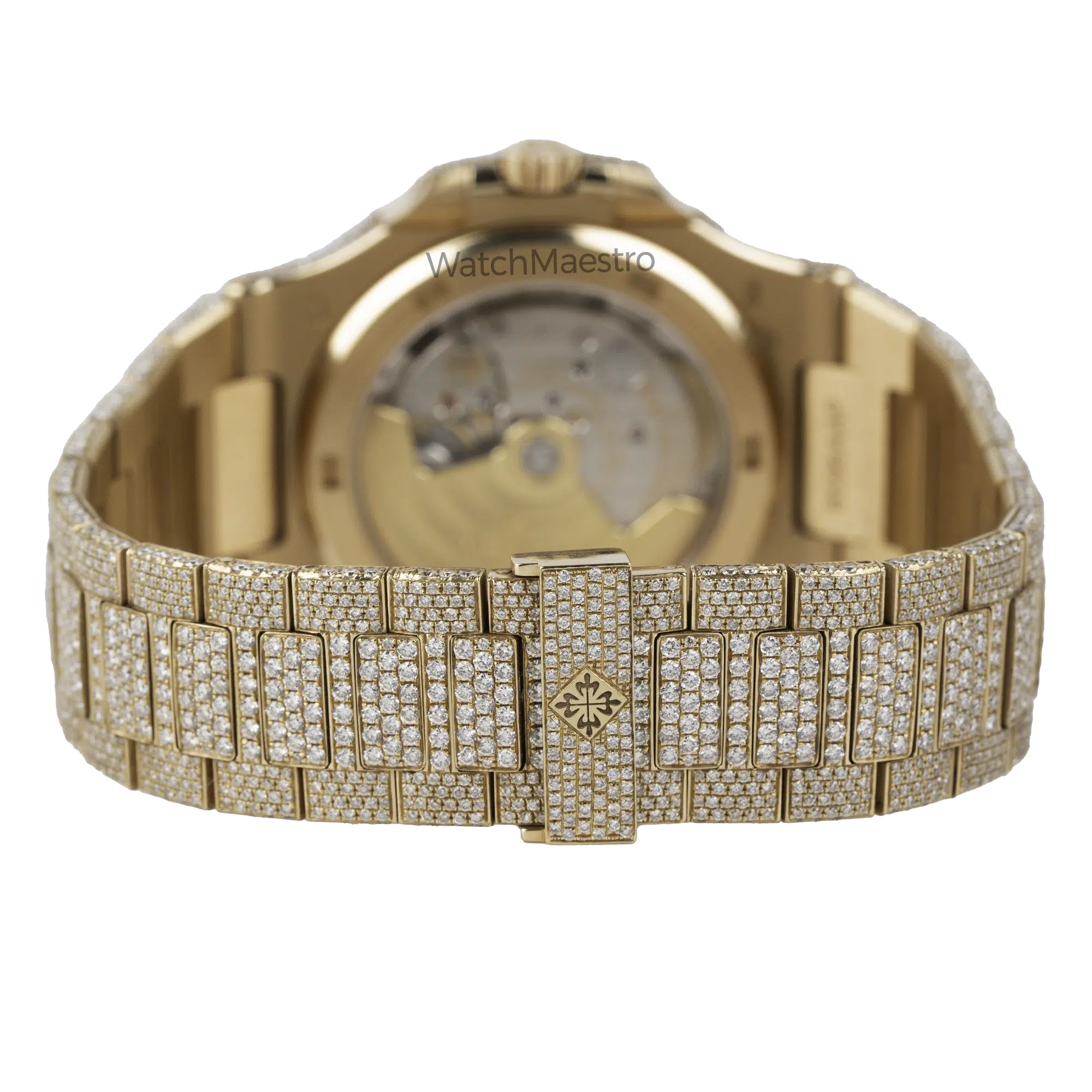 WatchMaestro brings you this special Patek Philippe Nautilus 5711R with a bespoke touch. Crafted entirely in Rose Gold, this Nautilus stands as a symbol of Patek Philippe’s legacy in horological excellence. What sets this particular piece apart is its aftermarket transformation. Fully iced out, this watch is definitely going to attract a lot of eyeballs to your wrist when you wear it with pride. Each facet of the watch, from the iconic octagonal bezel to the intricate links of the bracelet are fully iced creating a magnificent play of light and luxury.