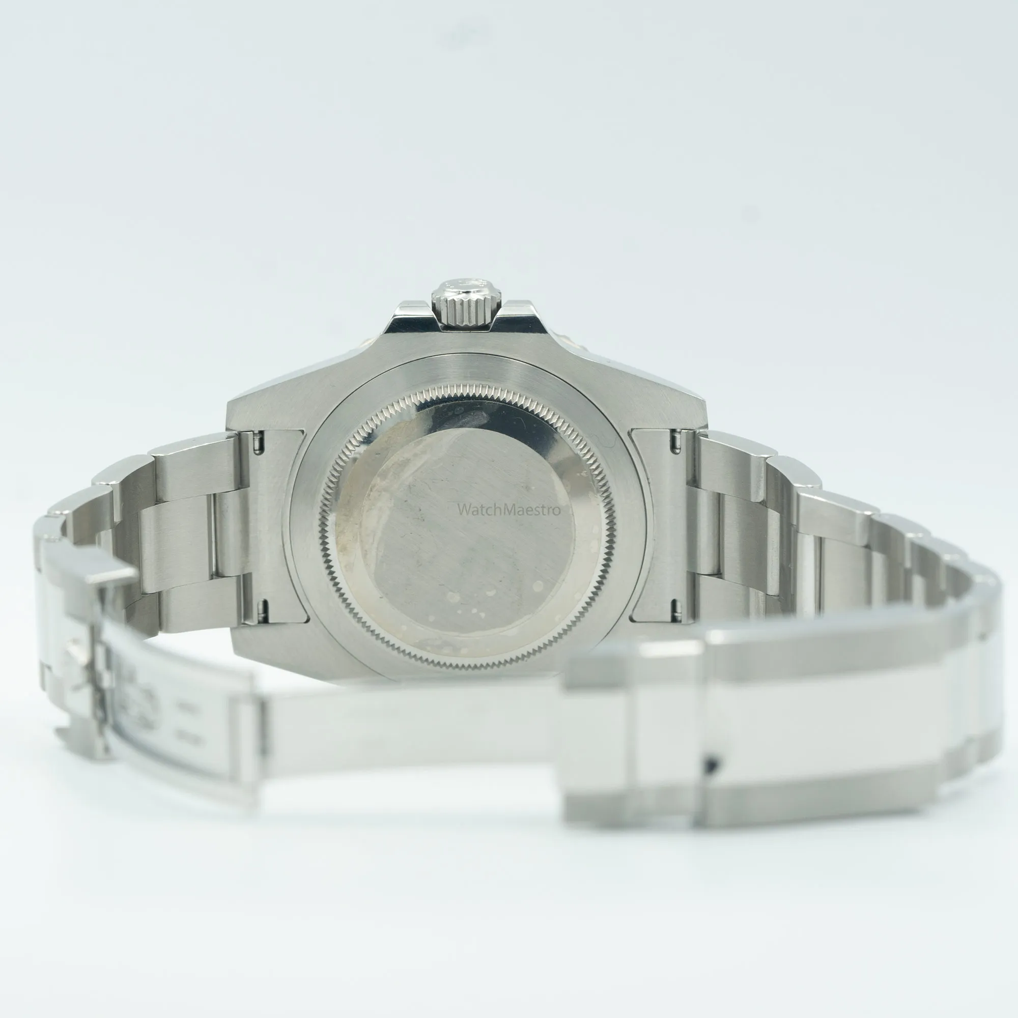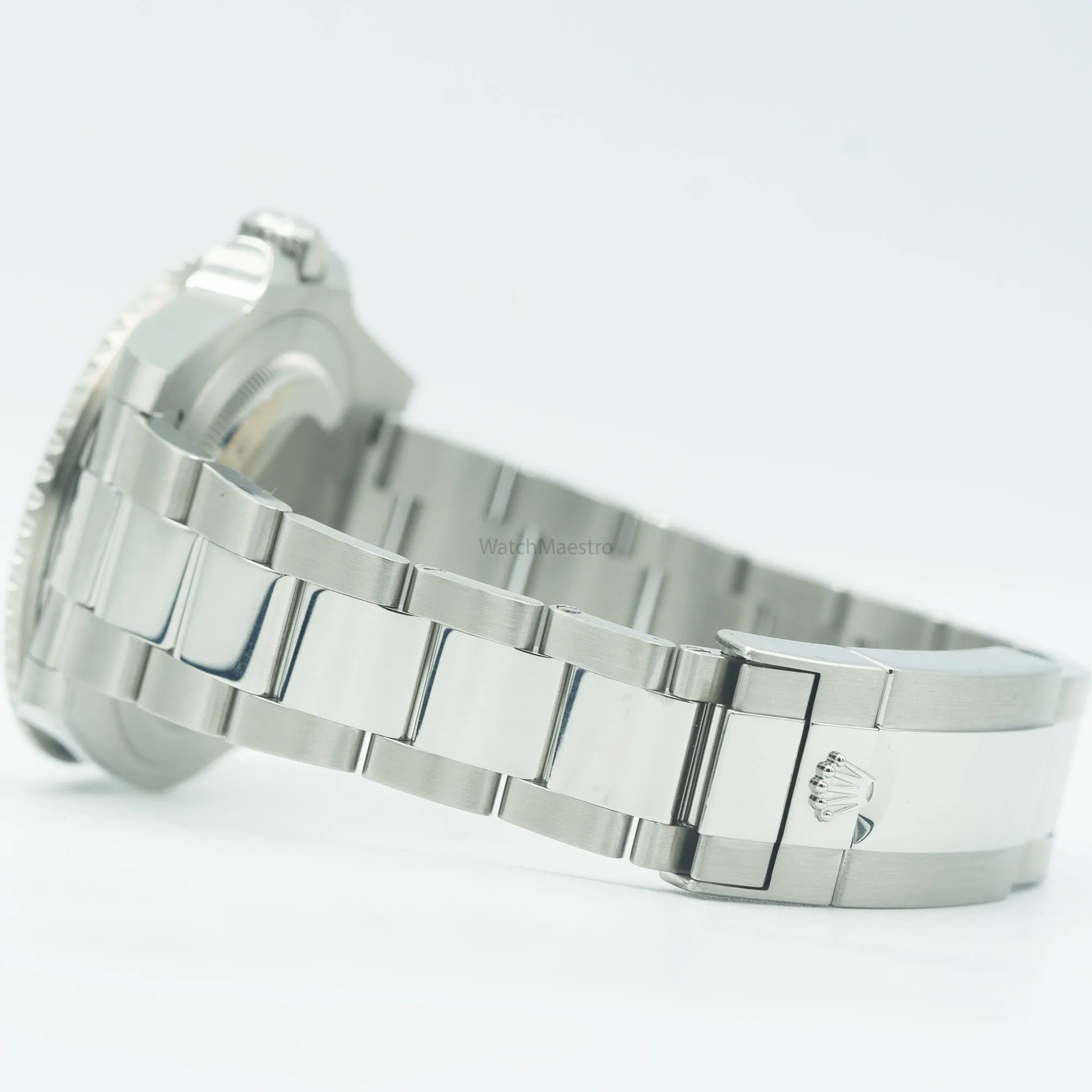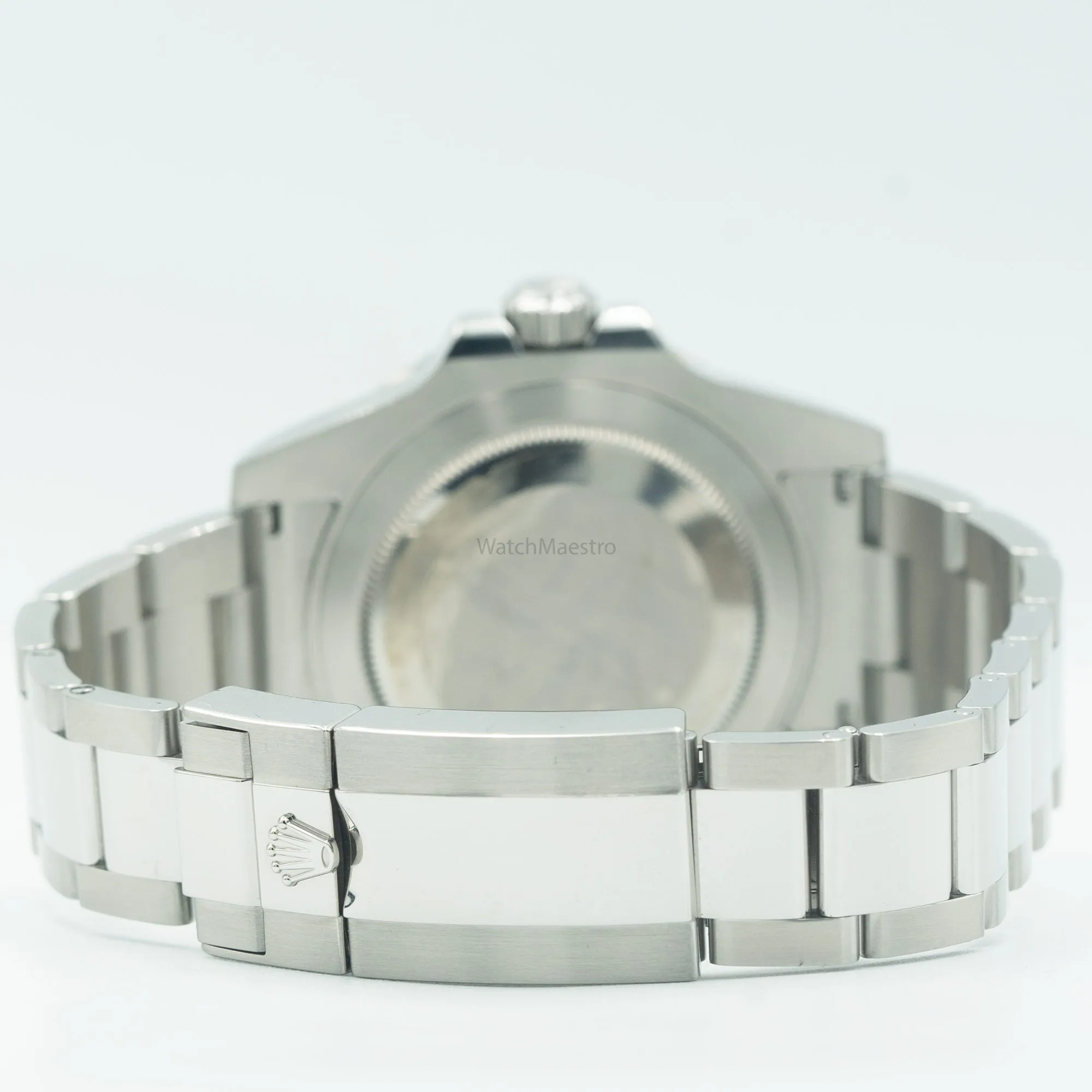 This is a pre-owned Rolex GMT Master II with an all-black ceramic bezel. It was purchased in 2013 and features a 40mm Black dial. The watch is in pristine condition. It is a discontinued piece making it a desirable watch among collectors and enthusiasts.