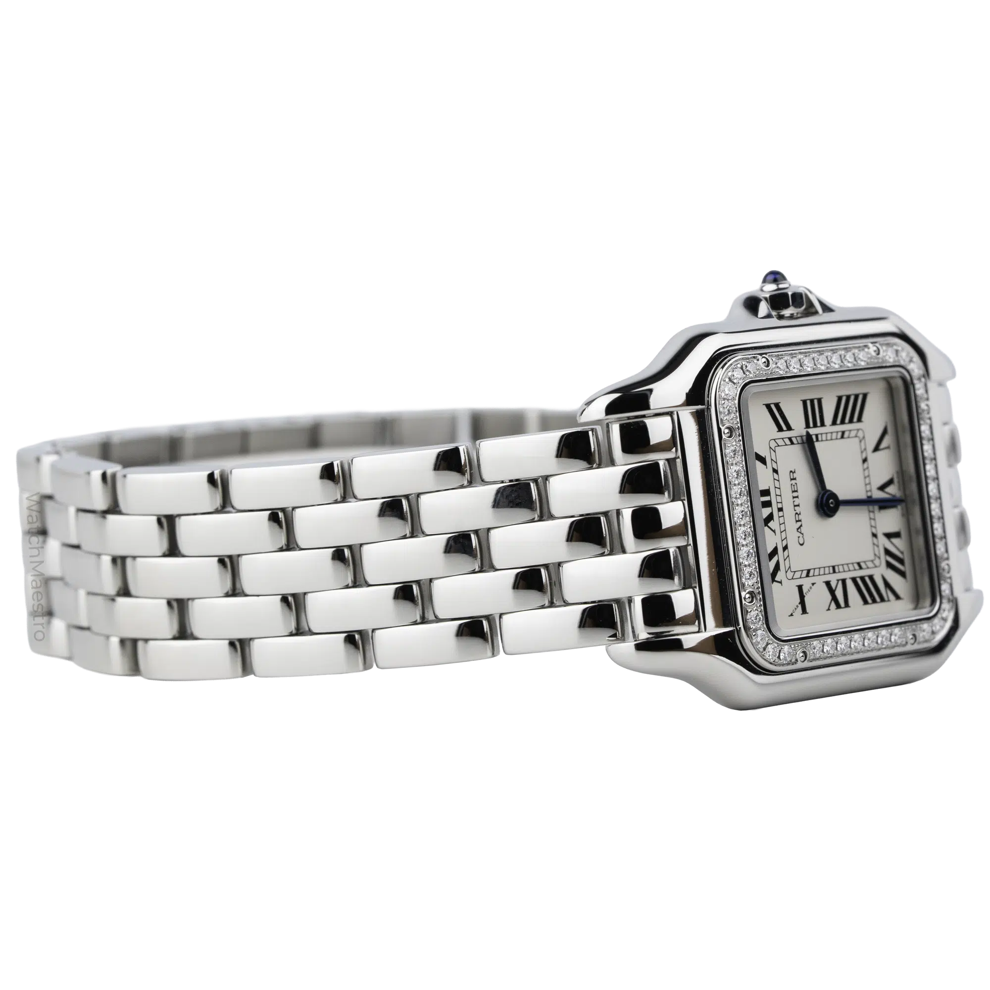If you want to keep it classy yet want your watch to stand out, this Cartier Panthère is perfect for you. With its stainless steel construction, the watch can withstand daily wear and tear. It also ensures that the watch doesn’t get too loud. What does attract attention is the factory diamond-set Bezel featuring brilliant-cut diamonds. The White Dial sets the stage for refined aesthetics, providing a perfect backdrop for the iconic Cartier Roman numerals. Acquired in 2022, this Cartier Panthère is pre-owned and it is presented with its original box and papers.