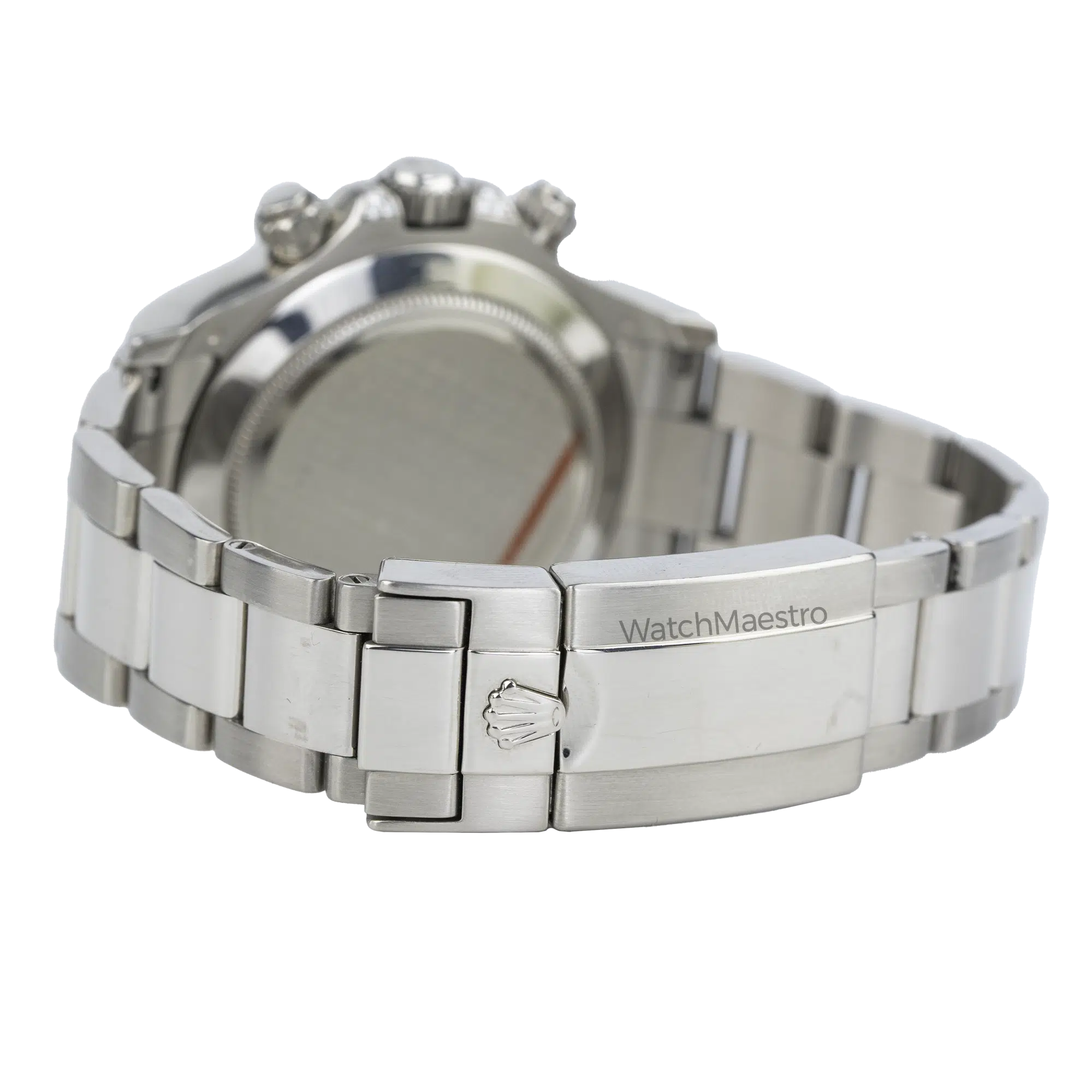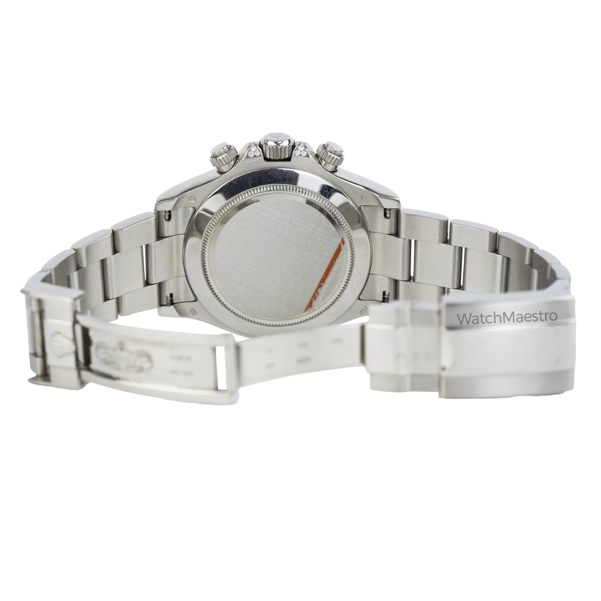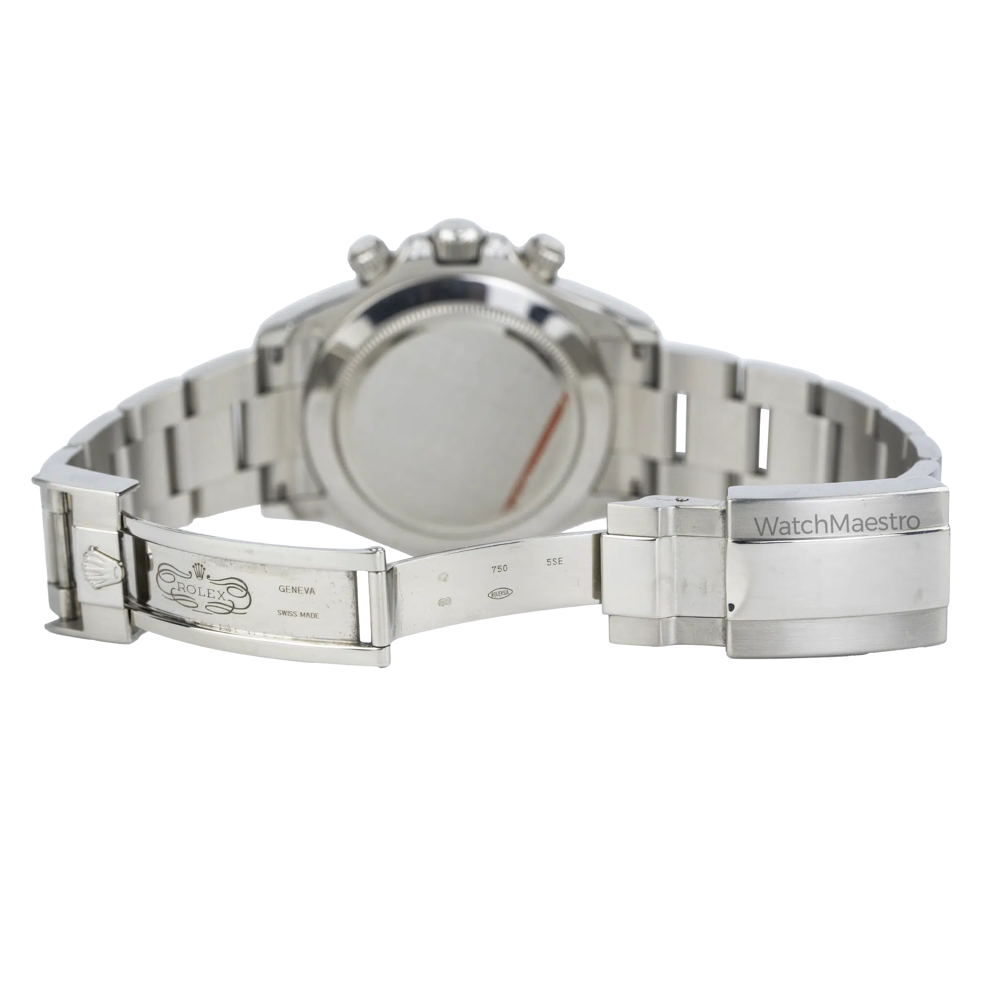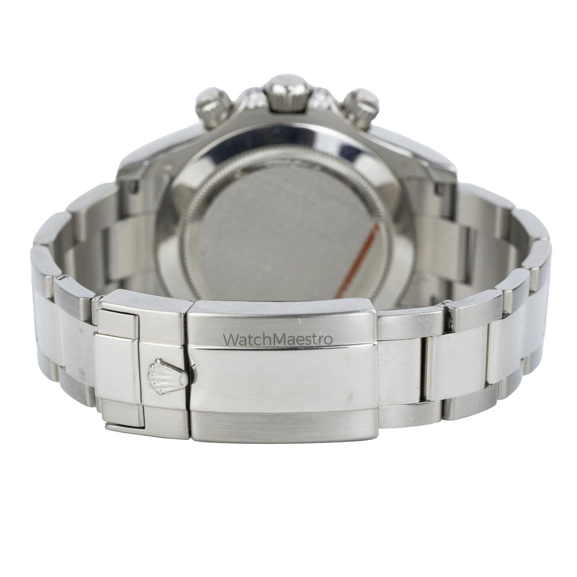 A true watch collector’s dream – the Rolex Rainbow Daytona White Gold. Adorned with an exceptionally rare factory-set Rainbow Bezel, this reference 116599RBOW is an off-catalog piece at Rolex, making it an extraordinarily rare find. It features 36 baguette-cut sapphires in a rainbow gradation and 56 diamonds spread around the case and the lugs of the watch. It even gets a 40mm Black dial with diamond-set hour markers. Purchased in 2013, the watch is still in a great condition and comes with its green Rolex warranty card. Connect with us on WhatsApp for more details and be part of the select few who can call this extraordinary piece their own.