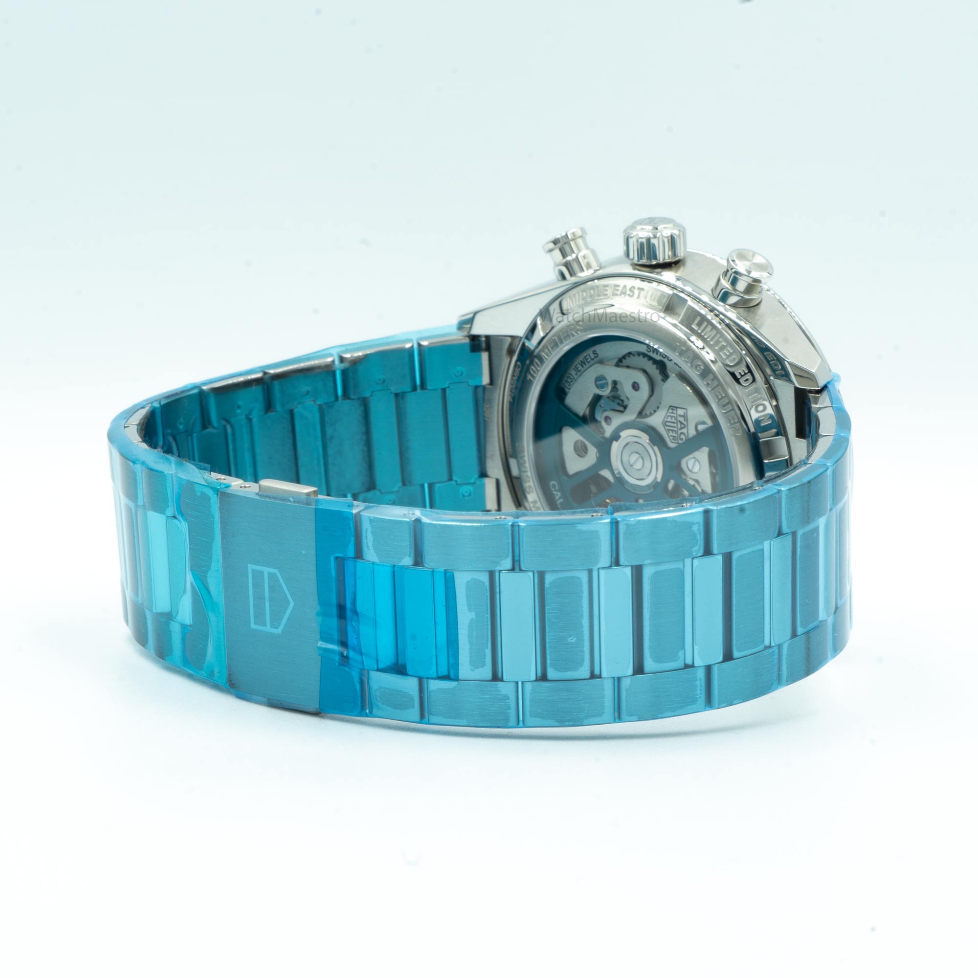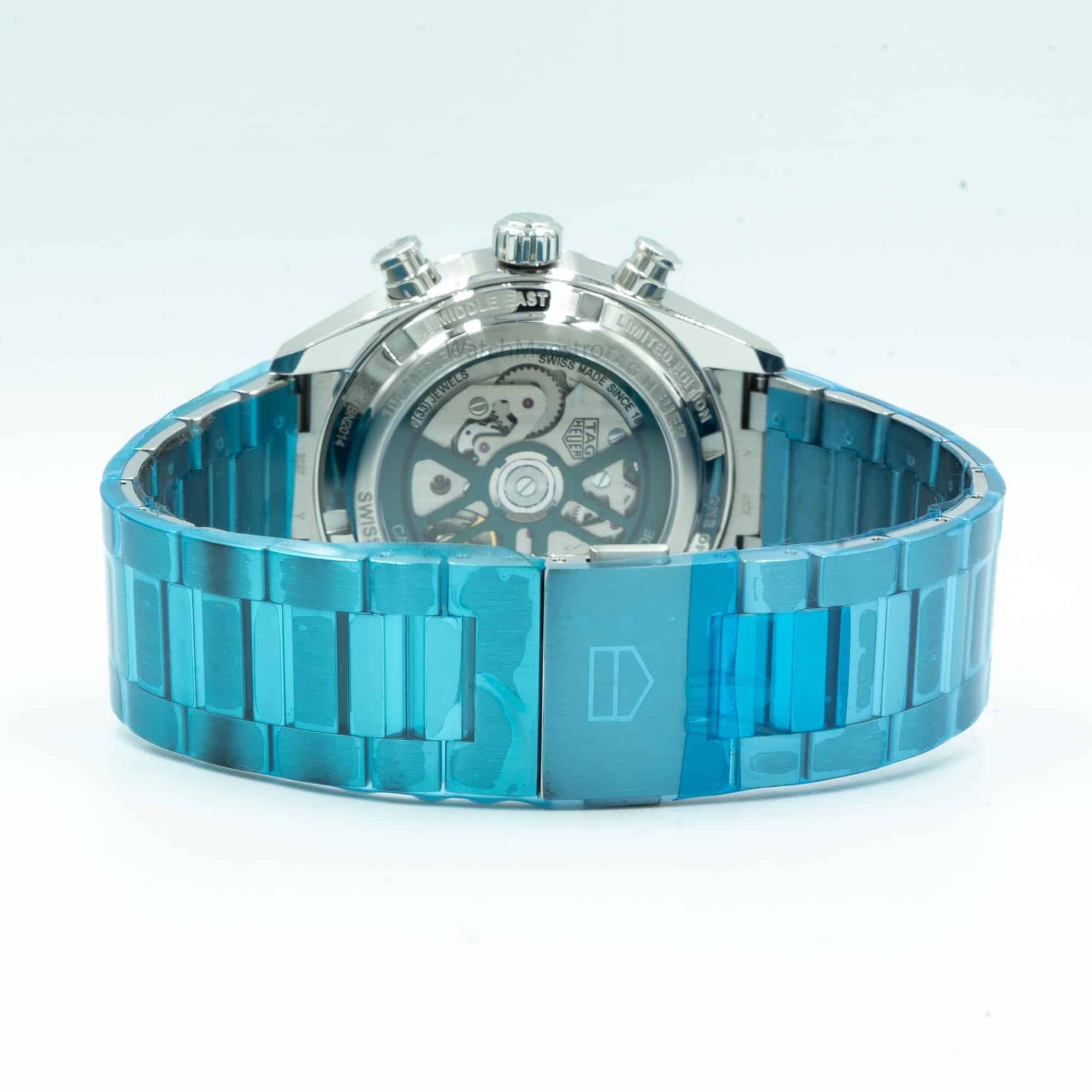 The Tag Heuer Carrera Middle East also has a sapphire crystal on the back that allows you to take a glance at the mechanism. The timepiece offers a power reserve of up to 80 hours.