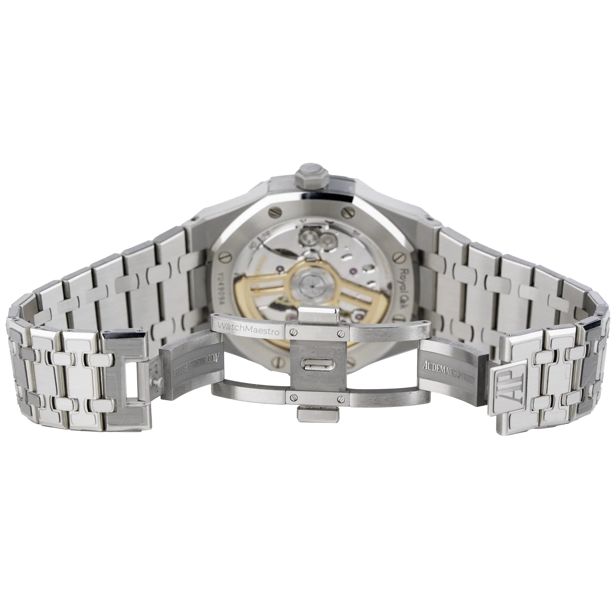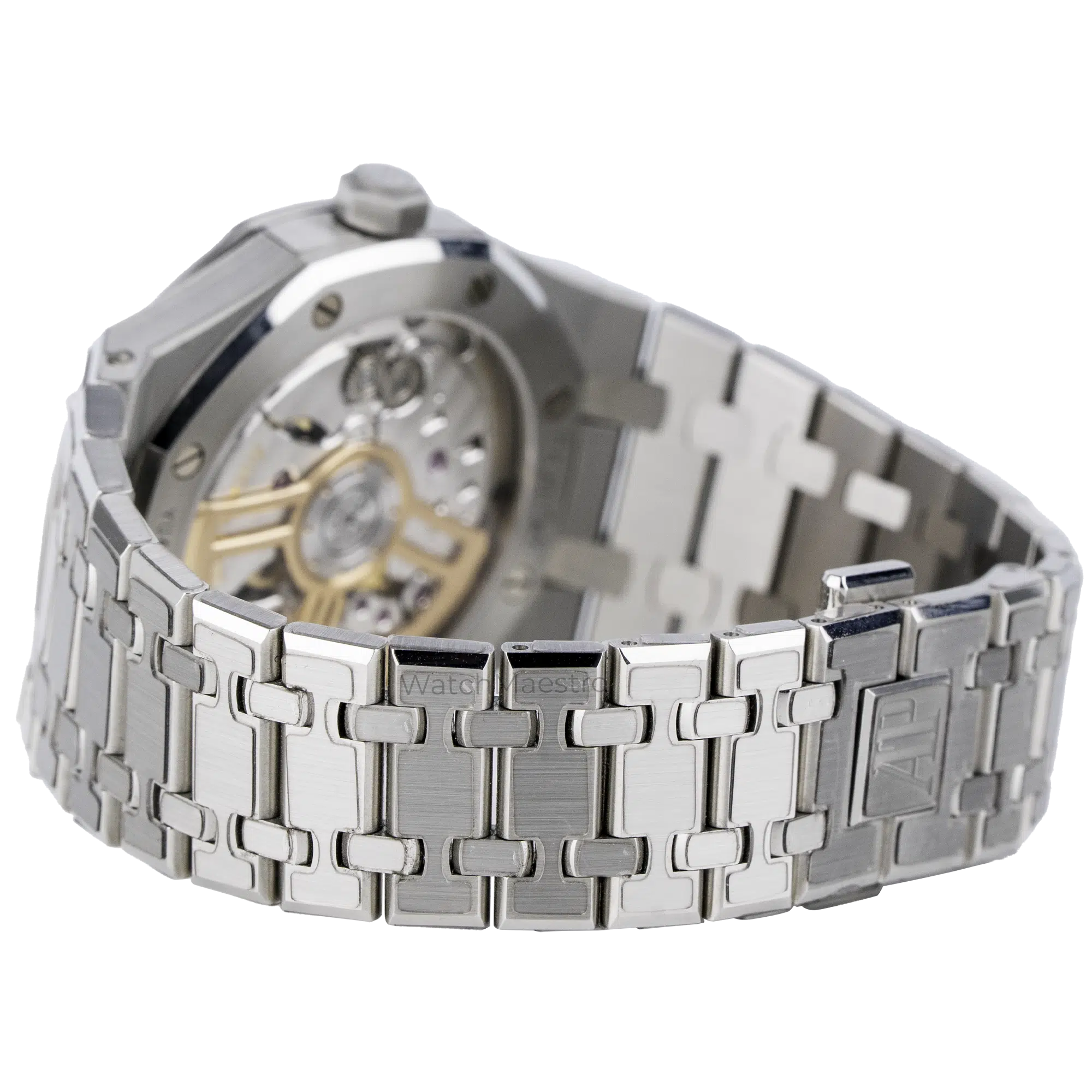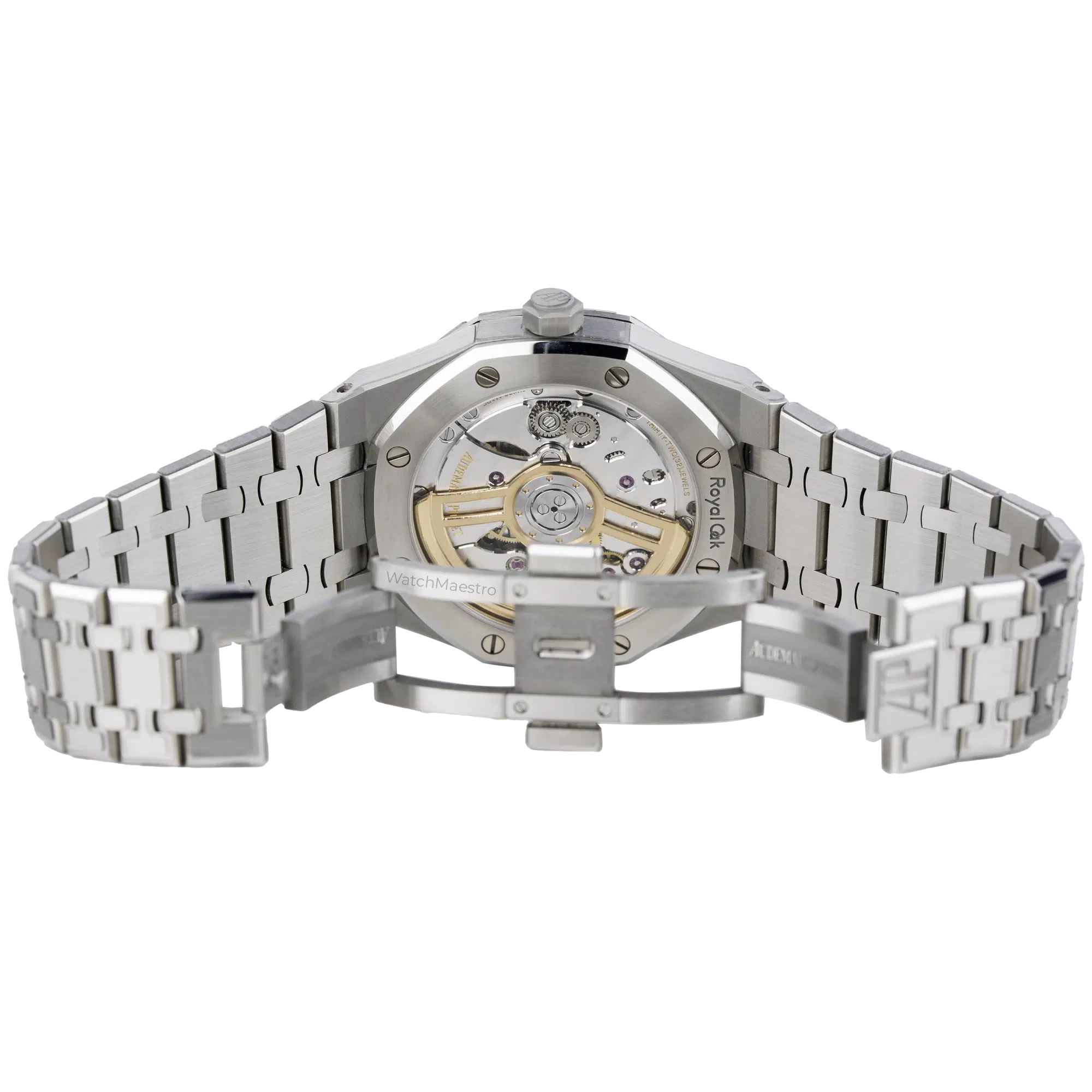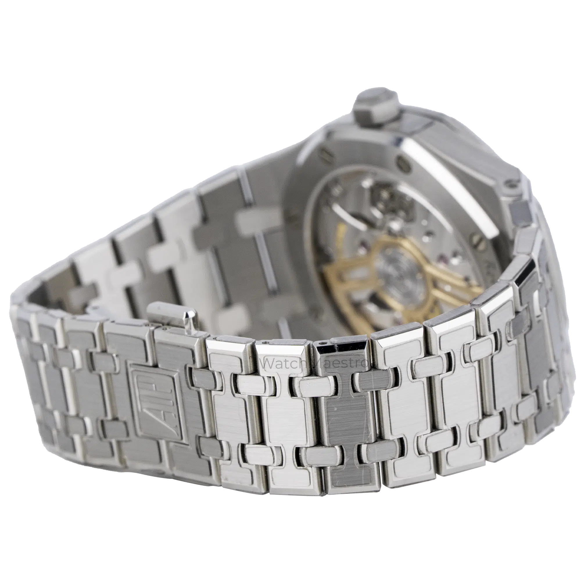 WatchMaestro has yet again managed to get hold of everyone’s favorite Audemars Piguet Royal Oak 41mm with a White Dial. The watch is pre-owned and comes complete with box and papers. Purchased in 2023, the watch is still under the AP warranty coverage. It features a White dial with “Grande Tapisserie” pattern. The stainless steel case and the elegant-looking bracelet are still in impeccable shape. It also features an open case back, which means you can take it off your wrist every now and then just to appreciate the industry-leading craftsmanship that went behind creating such an amazing Selfwinding movement.