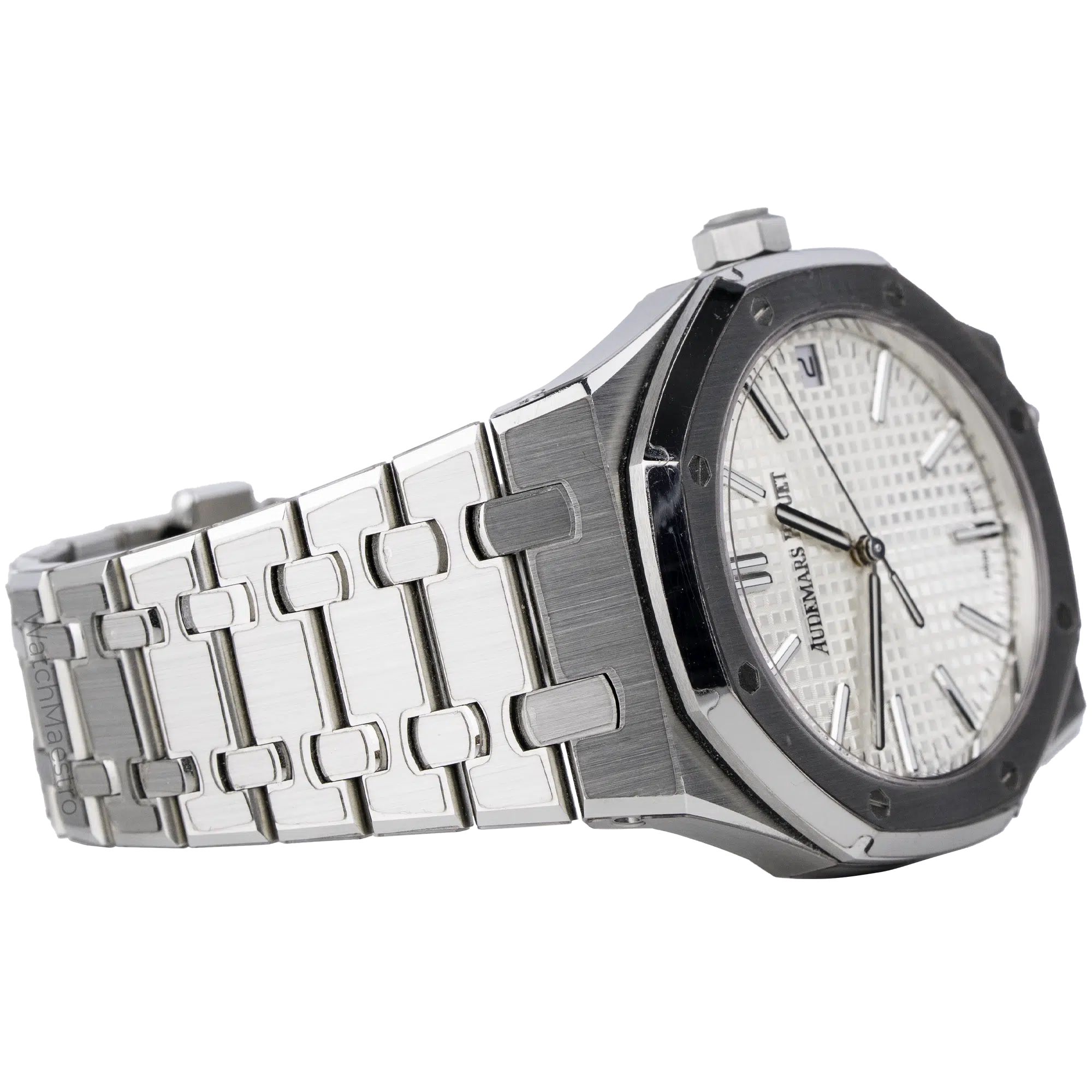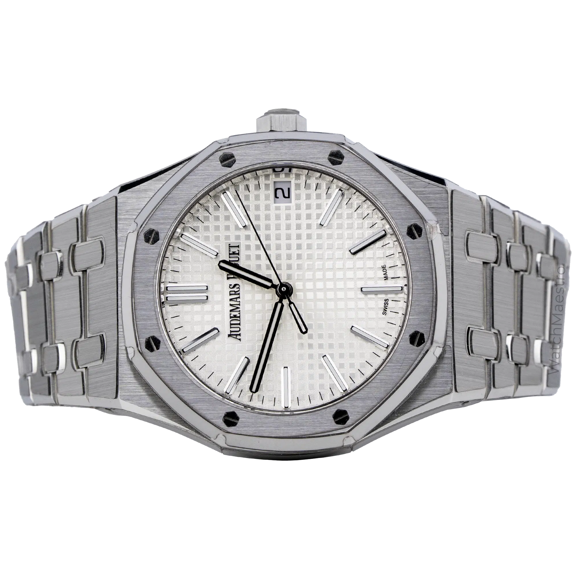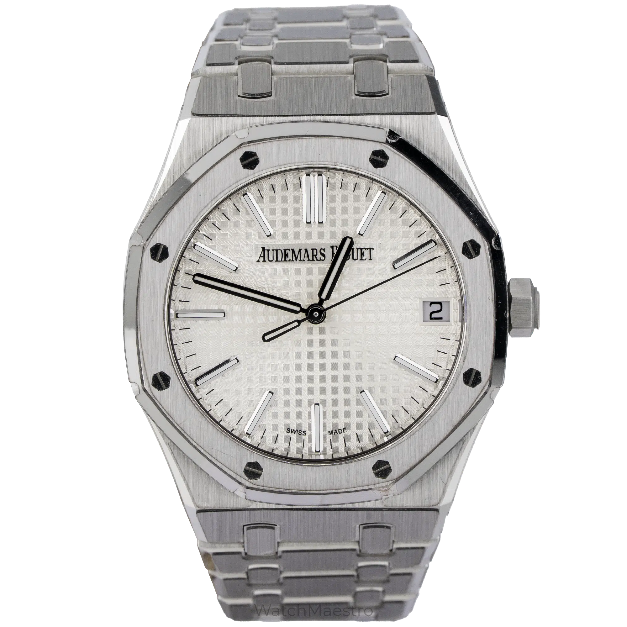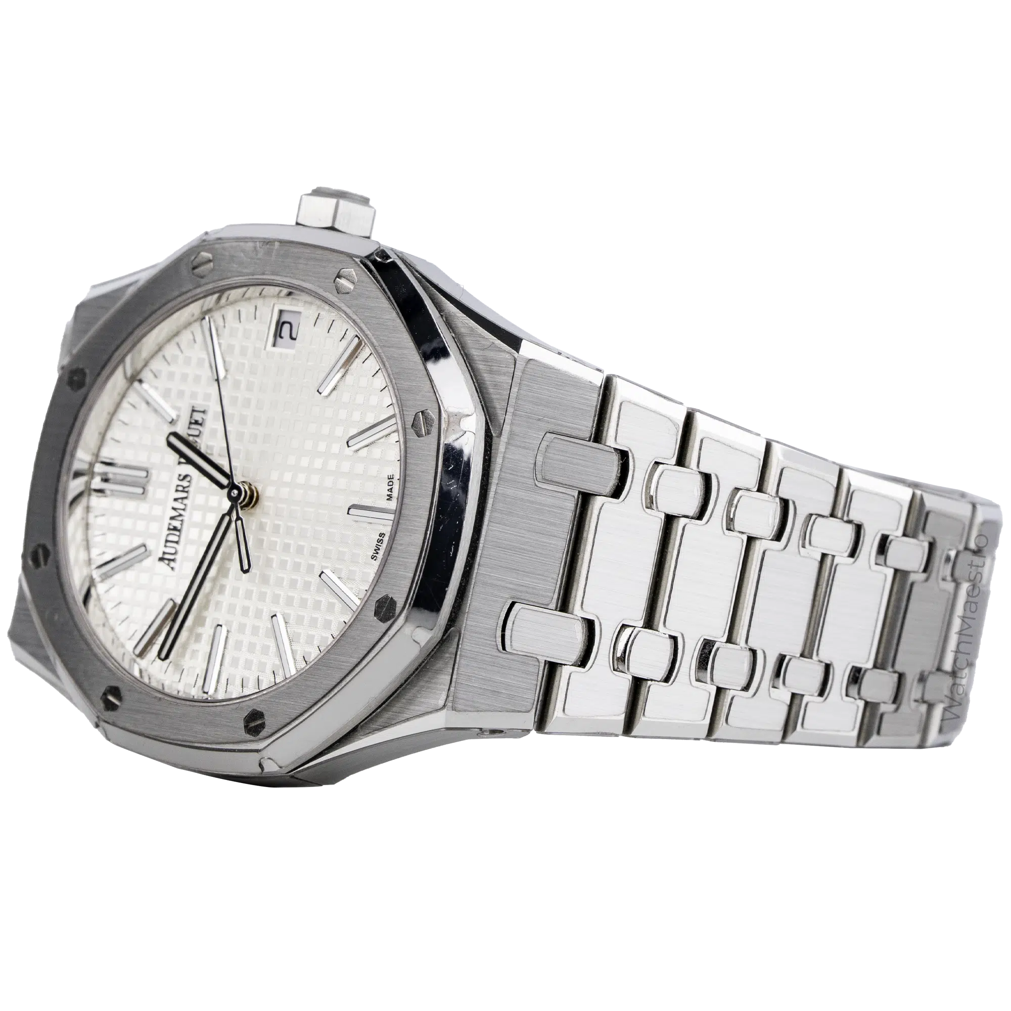 WatchMaestro has yet again managed to get hold of everyone’s favorite Audemars Piguet Royal Oak 41mm with a White Dial. The watch is pre-owned and comes complete with box and papers. Purchased in 2023, the watch is still under the AP warranty coverage. It features a White dial with “Grande Tapisserie” pattern. The stainless steel case and the elegant-looking bracelet are still in impeccable shape. It also features an open case back, which means you can take it off your wrist every now and then just to appreciate the industry-leading craftsmanship that went behind creating such an amazing Selfwinding movement.