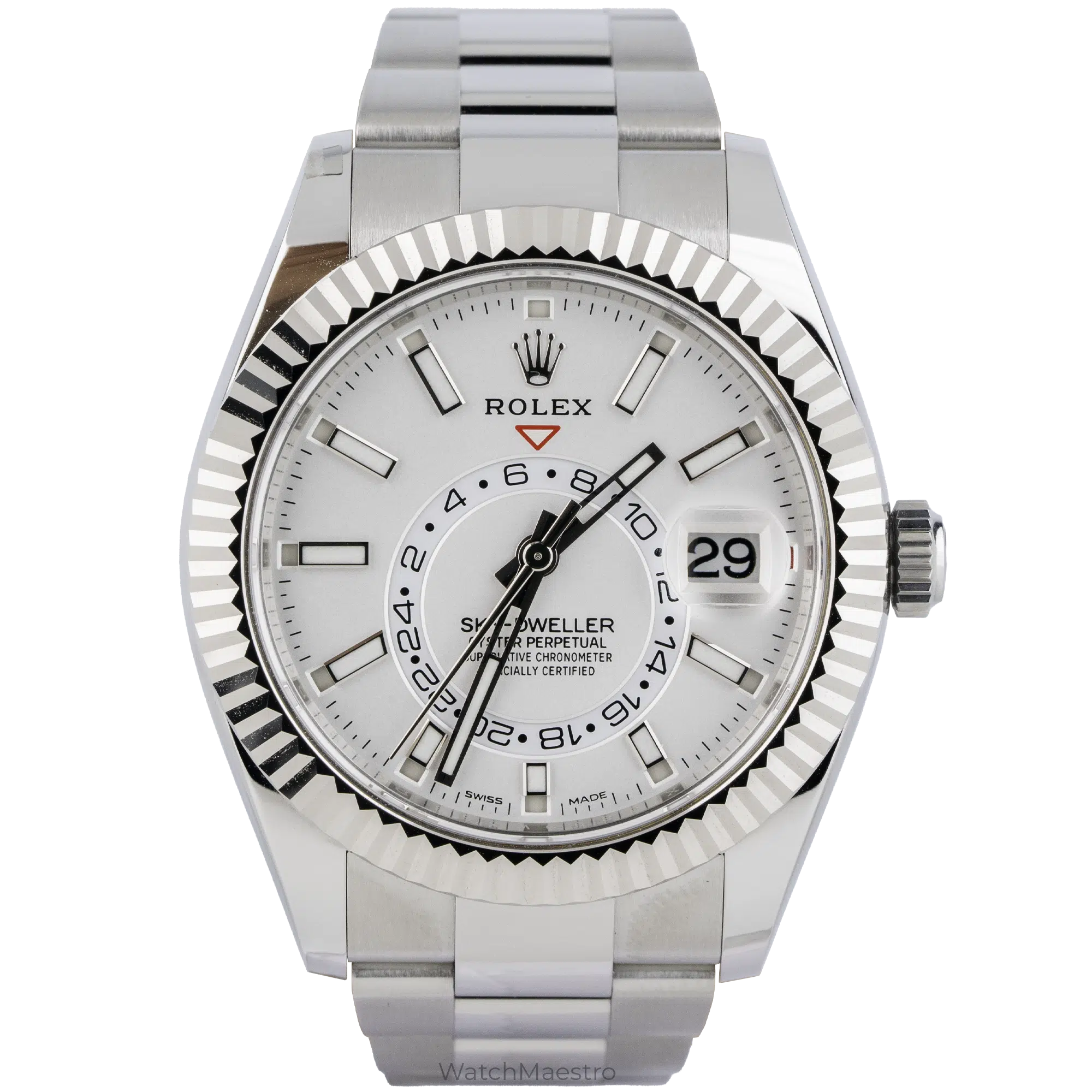 The Sky-Dweller, with the amount of practicality on offer, has been designed for the global traveler. The watch offers a second-time zone and an annual calendar complication. The Rolex Sky-Dweller in stainless steel is more than a timepiece. It symbolizes success and it is a companion for those who appreciate the finer things in life, blending practicality with unmatched craftsmanship.