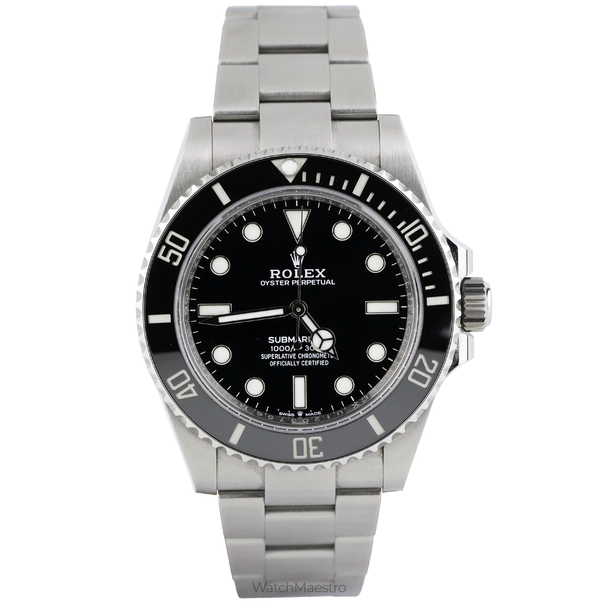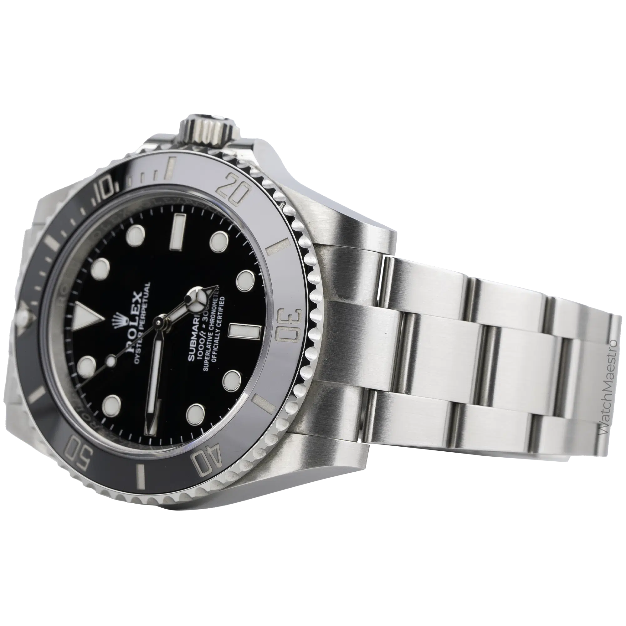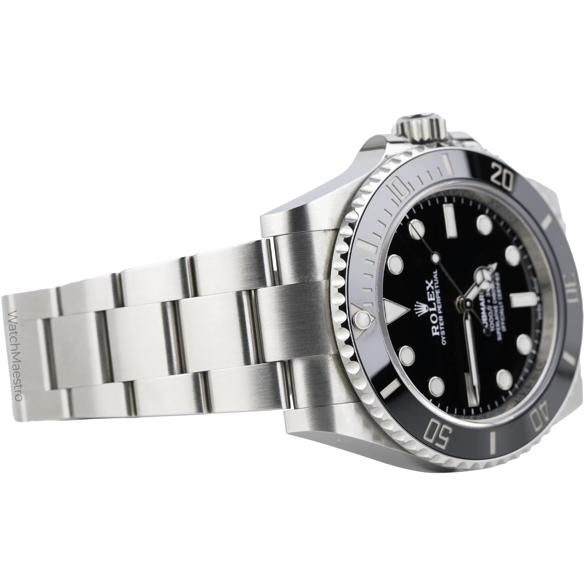 Rolex Submariner No Date reference 124060 is powered by the Calibre 3230 movement offering a power reserve of up to approximately 70 hours. The watch is rated to be waterproof for up to 300 meters. It features a unidirectional rotatable bezel and a matte-finish stainless steel Oyster bracelet.