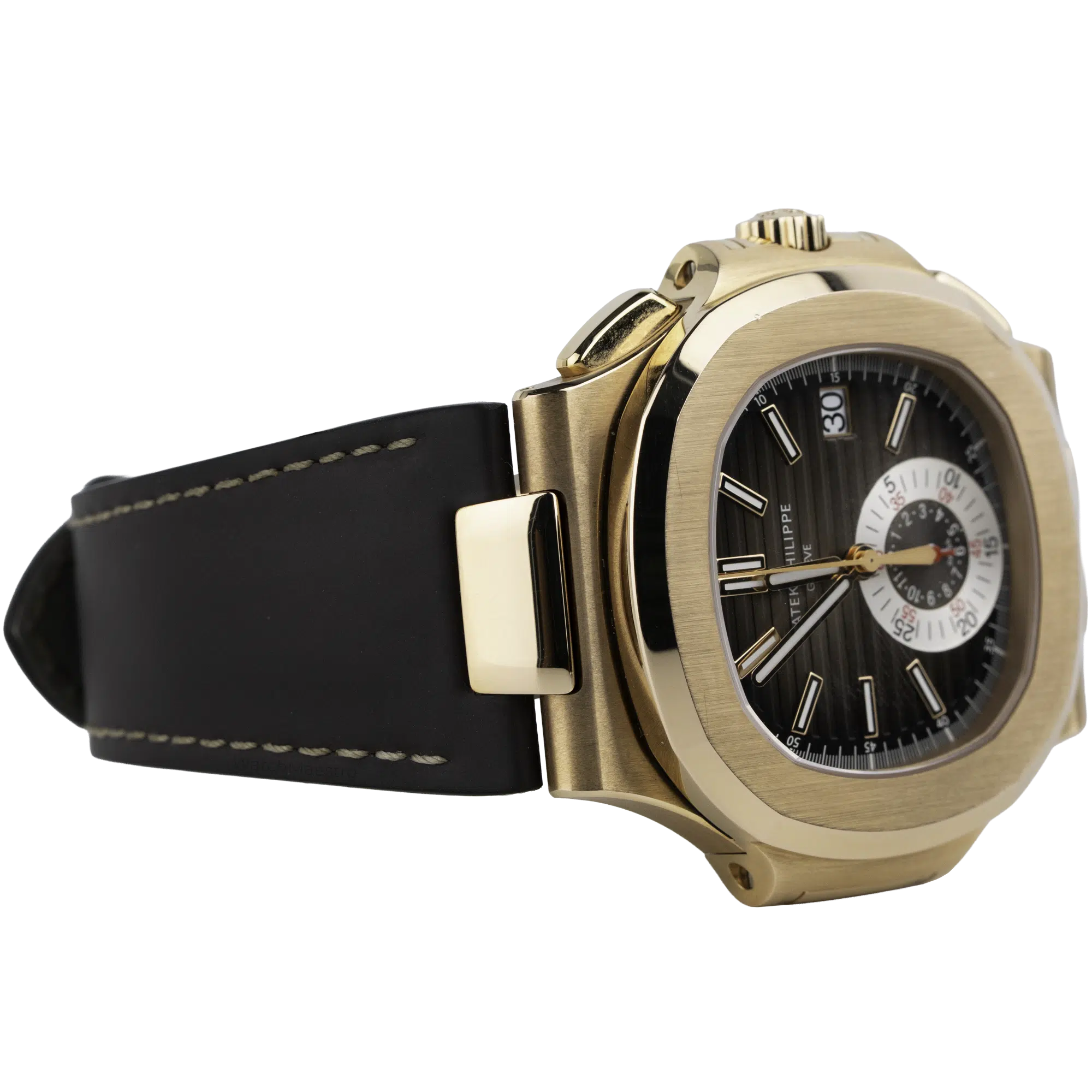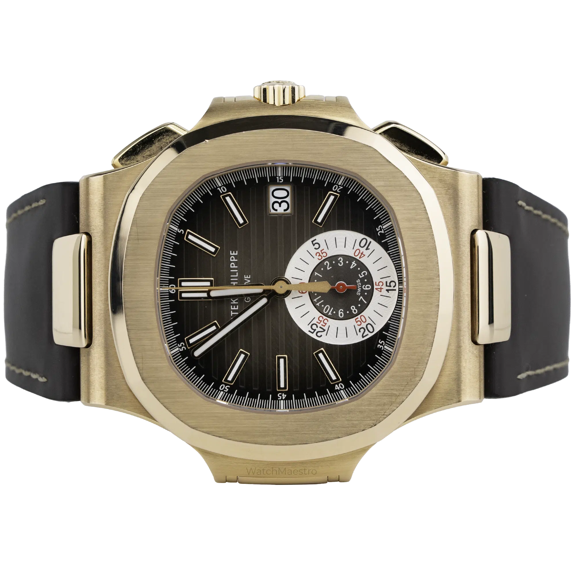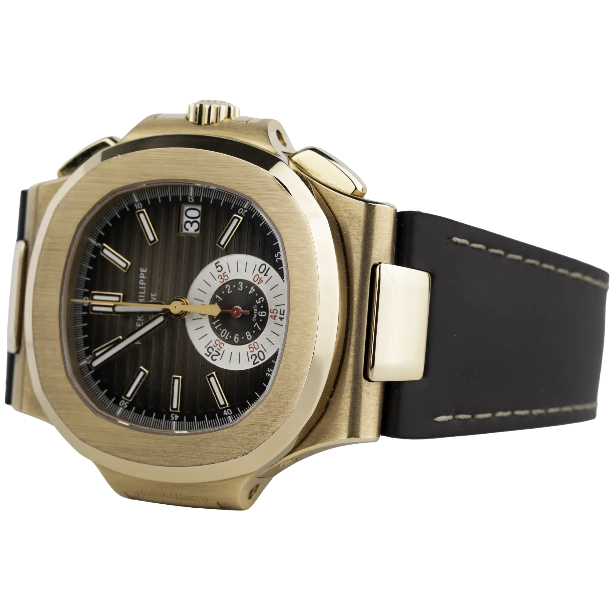Embrace a luxury lifestyle with the Patek Philippe Nautilus 5980R on your wrist. This discontinued watch is pre-owned yet in a great condition. The 40.5mm masterpiece features a subtle Brown Dial encased within a Rose Gold Case, which sits on a very comfortable Leather Strap. This timepiece epitomizes the Nautilus collection’s signature blend of sportiness and elegance, making it a coveted accessory for any occasion. Purchased in 2019, this Patek Philippe Nautilus arrives with its original box and papers, ensuring authenticity and offering that extra piece of mind.