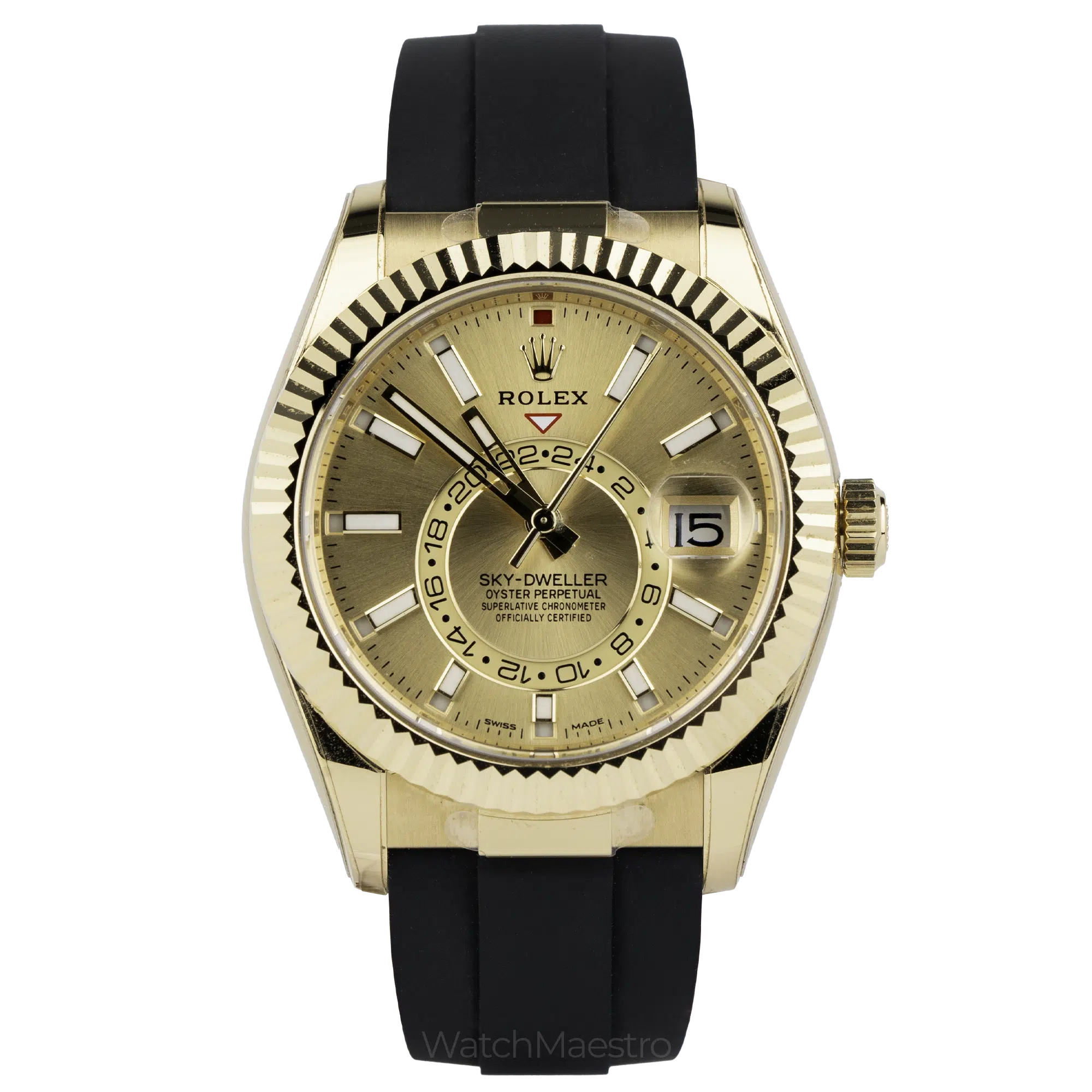 Rolex Sky-Dweller Yellow Gold Oysterflex with Champagne Dial