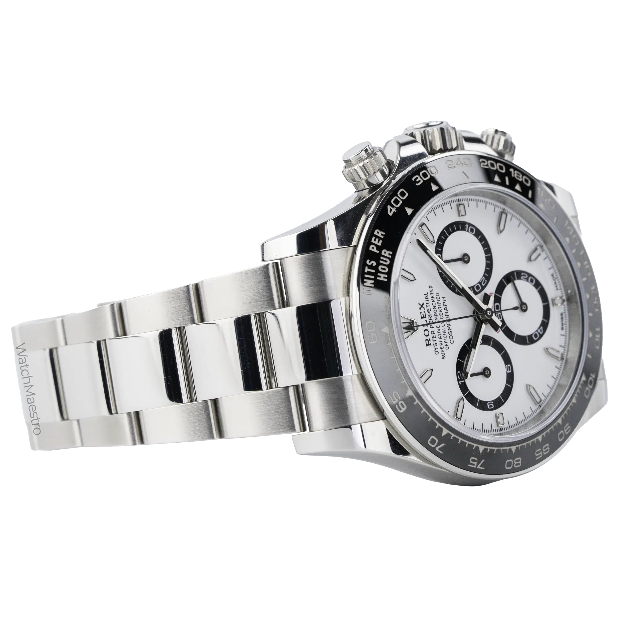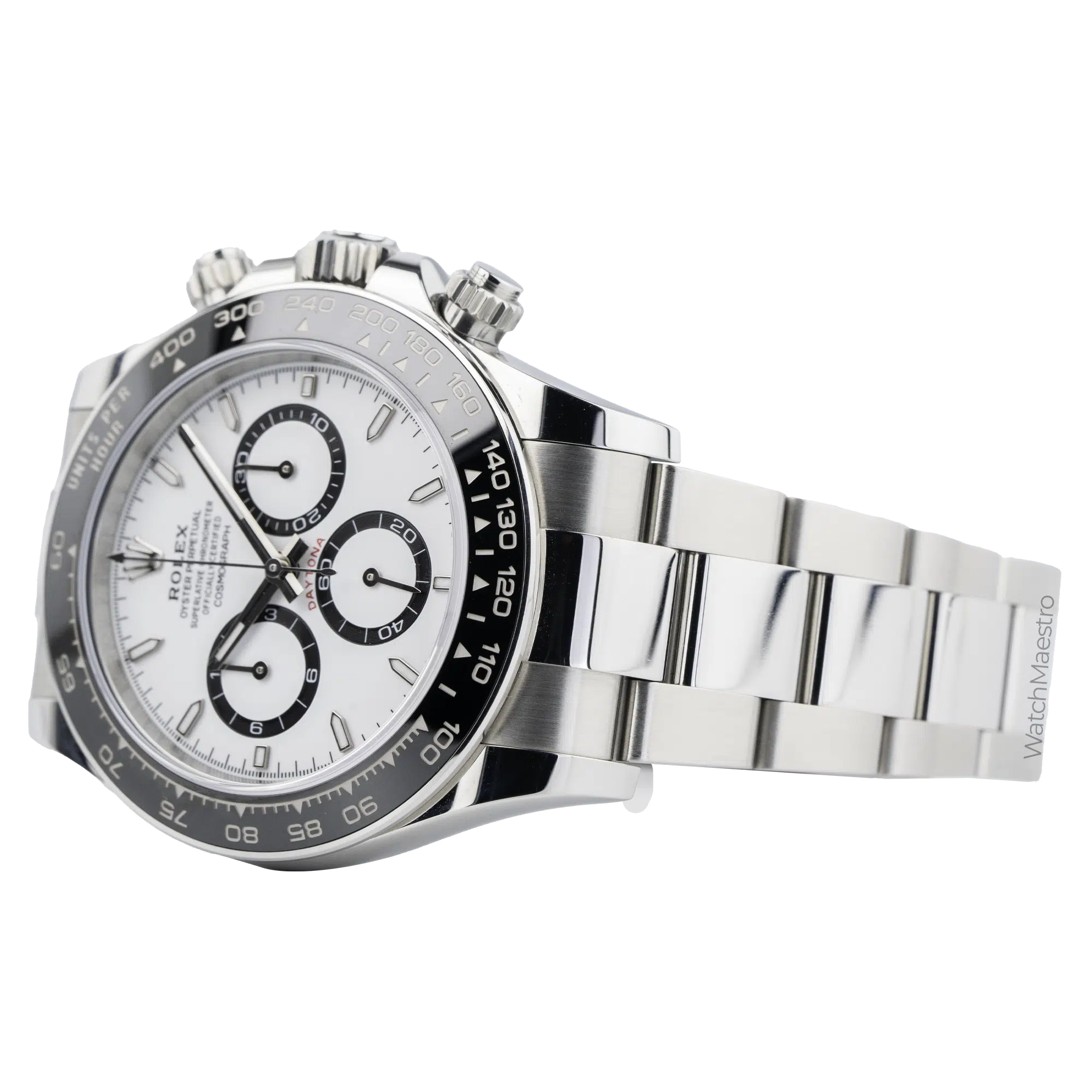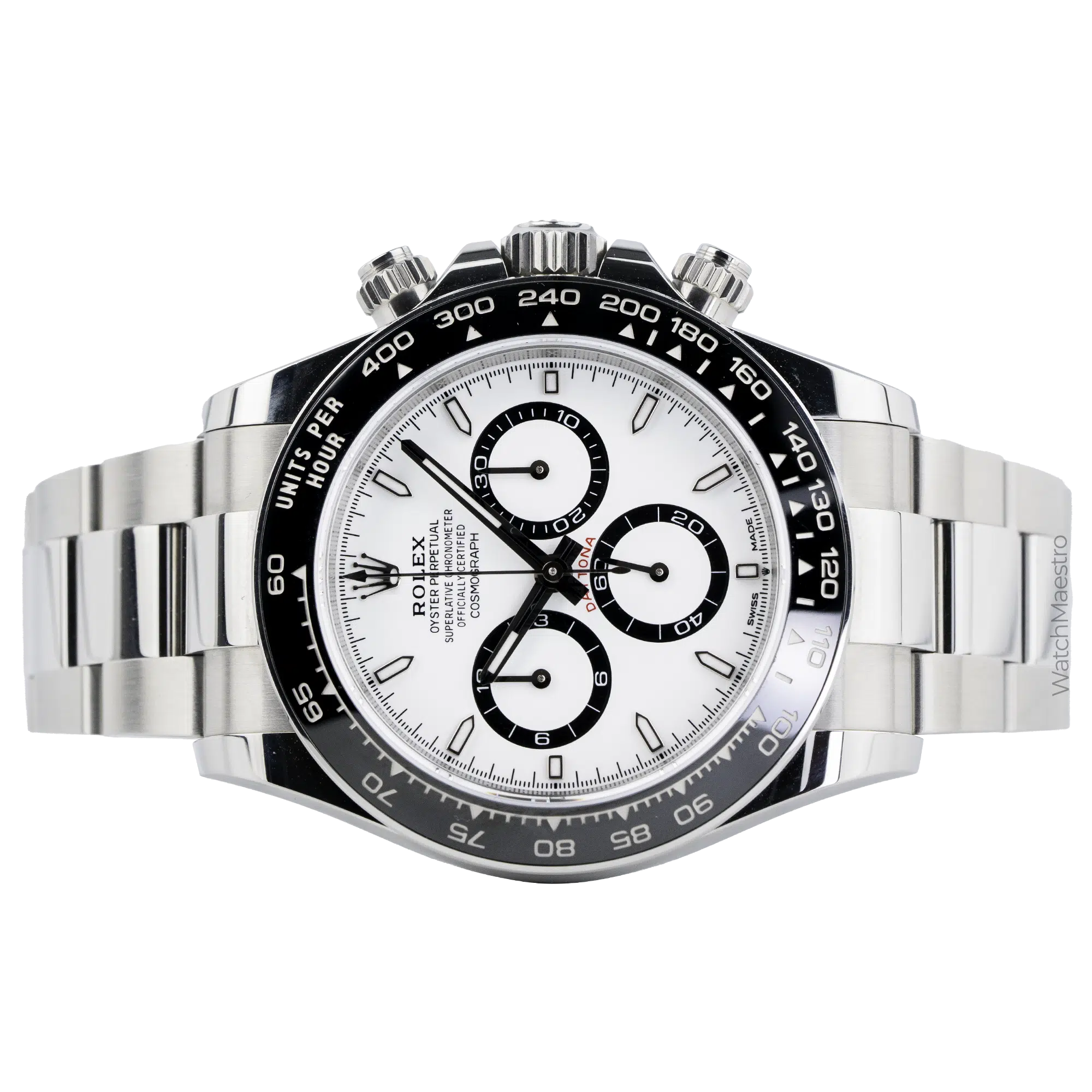 Queued up for 7 years just to get your hands on that Steel Daytona? Get yourself a Rolex Daytona Panda today. This one in particular is was purchased in 2023, comes complete with box and papers and it is still in a like-new condition. Sheltered under the 5-year Rolex warranty, this timepiece features a White Dial with Black outlining on the sub-dials resembling the facial markings of a panda, hence the nickname. This classic configuration not only enhances readability but also adds a timeless and sporty aesthetic to the Rolex Daytona. This is a Rolex watch that you can enjoy wearing every day both with casual outfits as well as business attire.