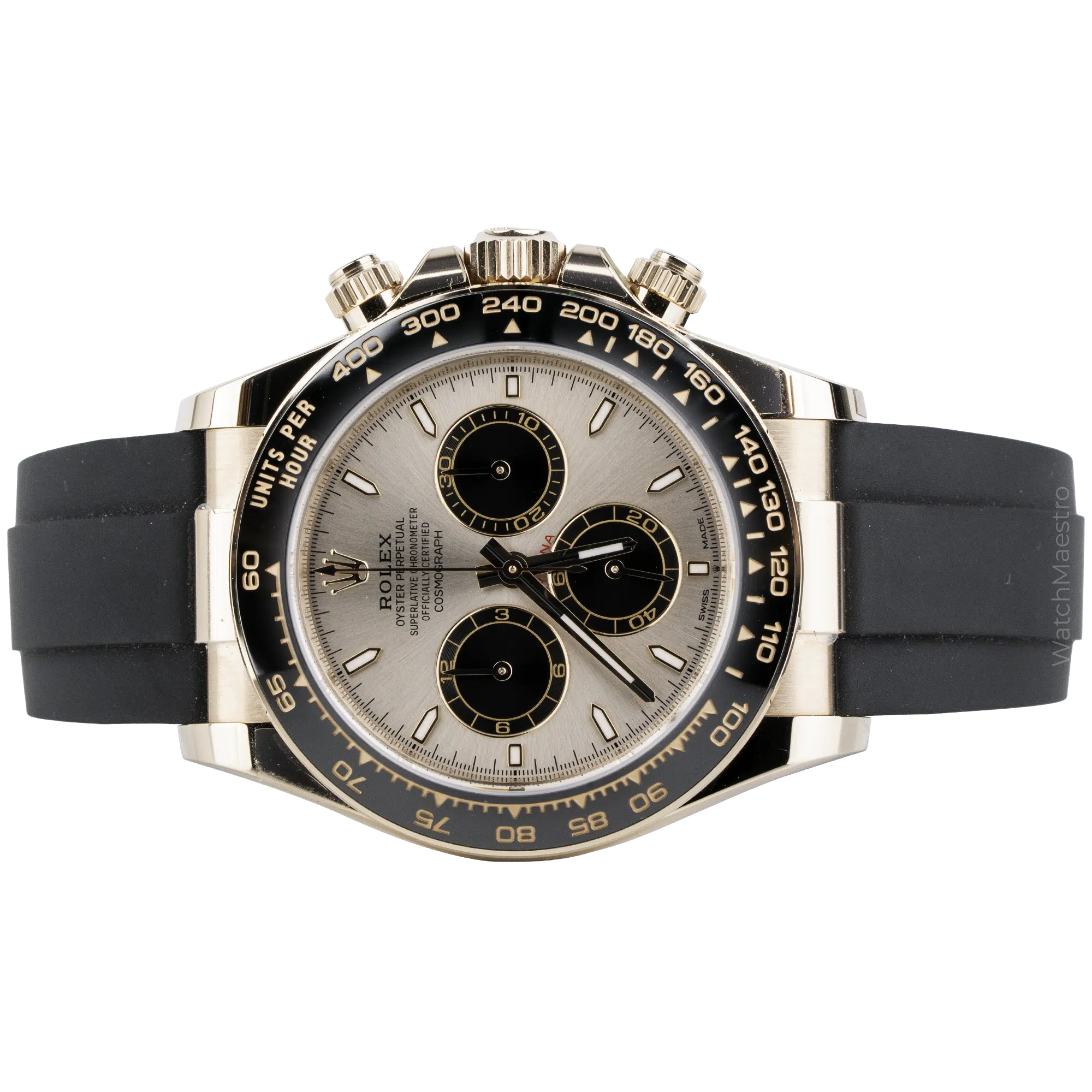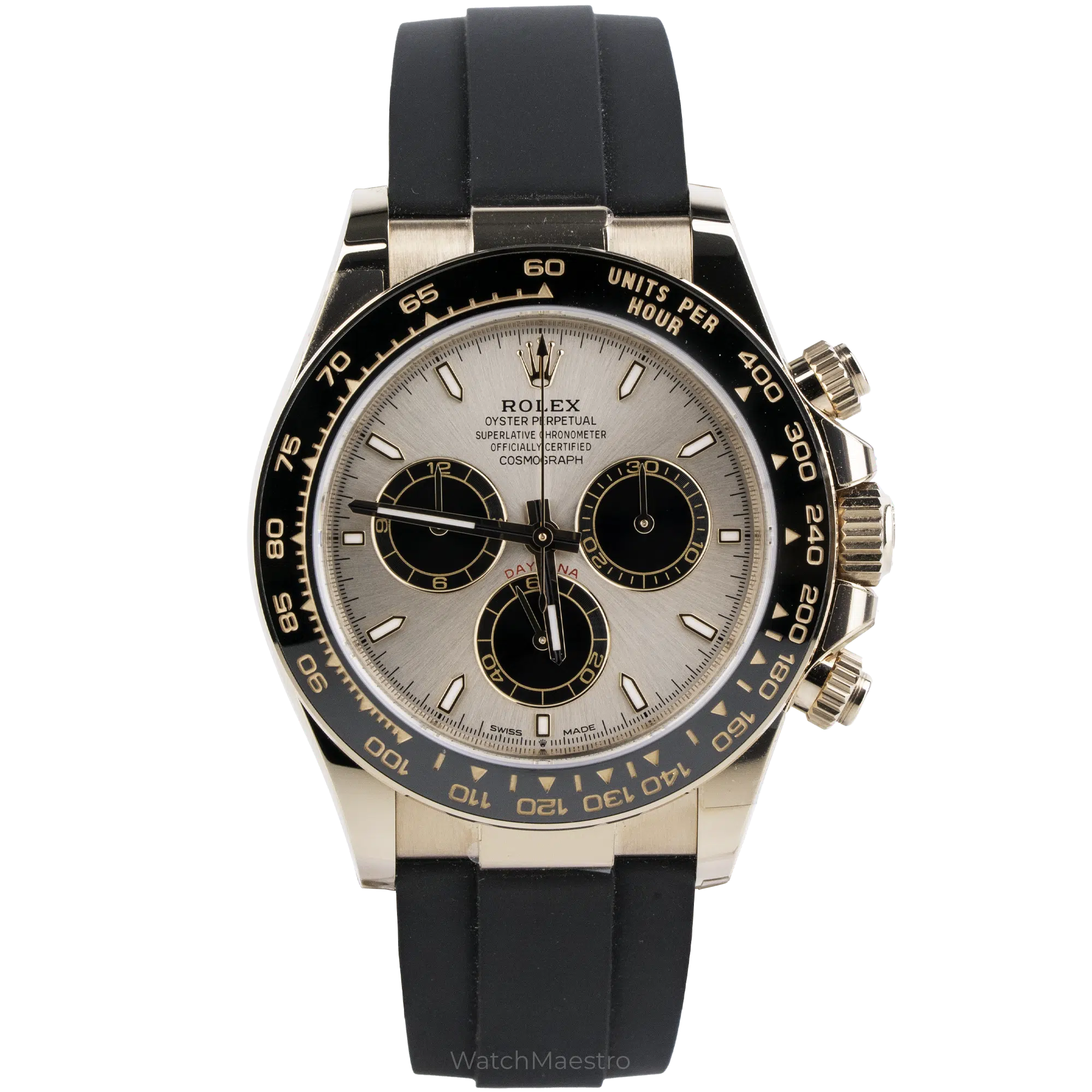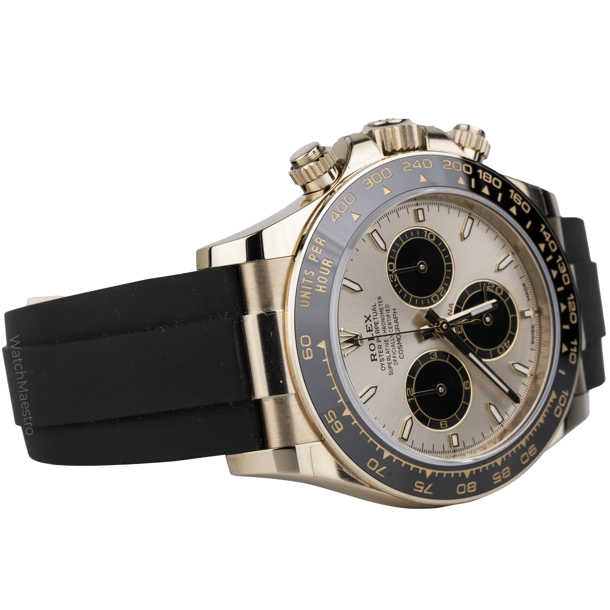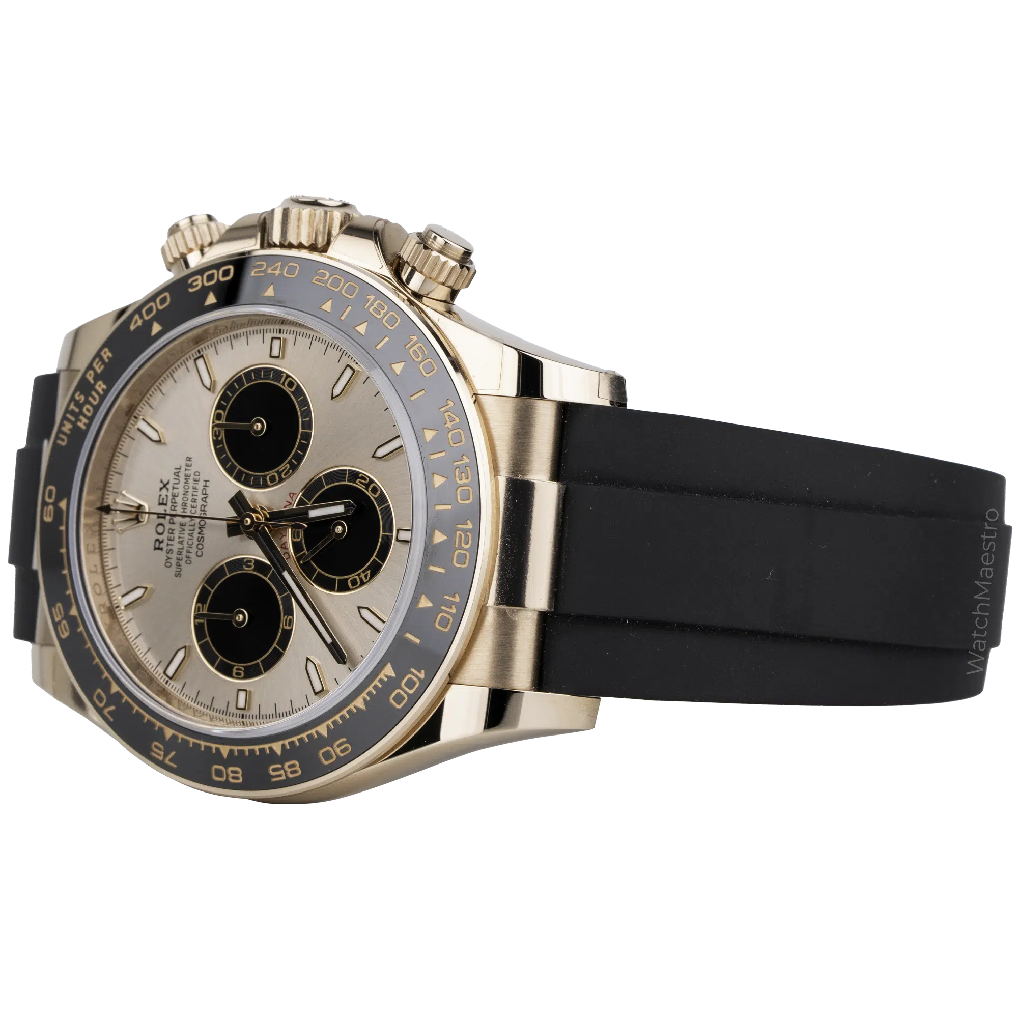 Whether gracing your wrist on special occasions or serving as a distinguished daily companion, the Rolex Daytona in Rose Gold with its unique black and Sundust dial configuration is a perfect addition to your collection.
